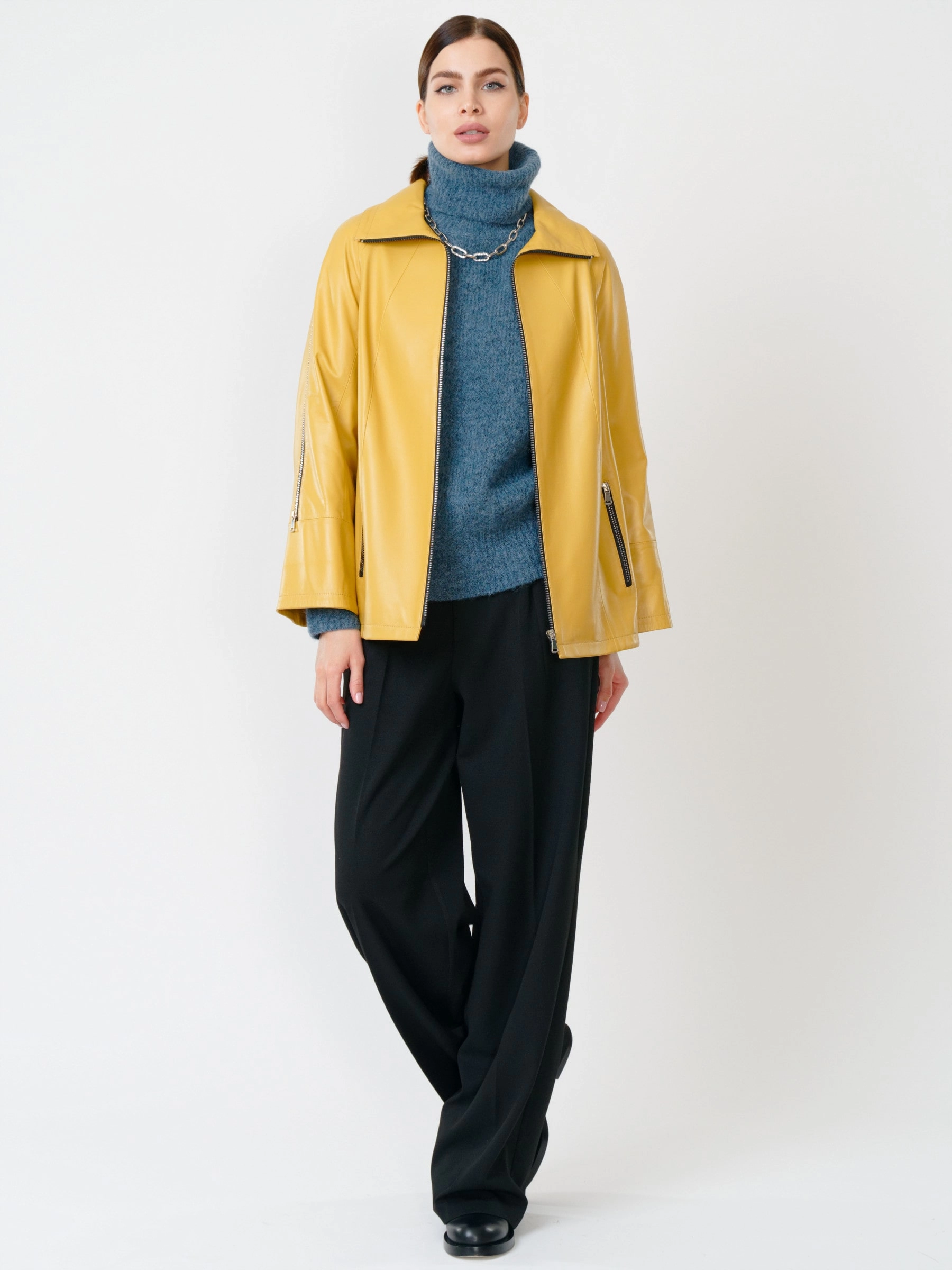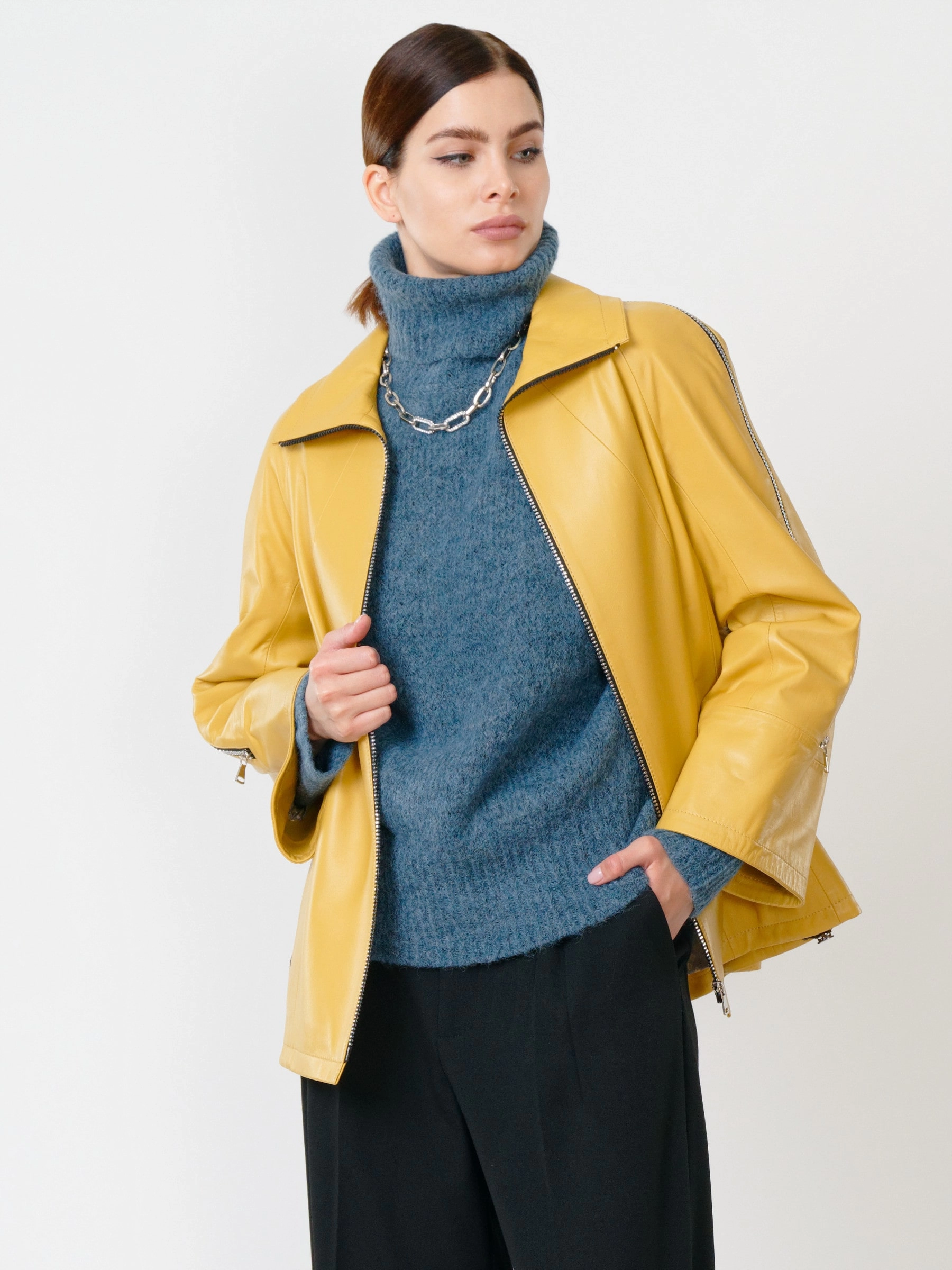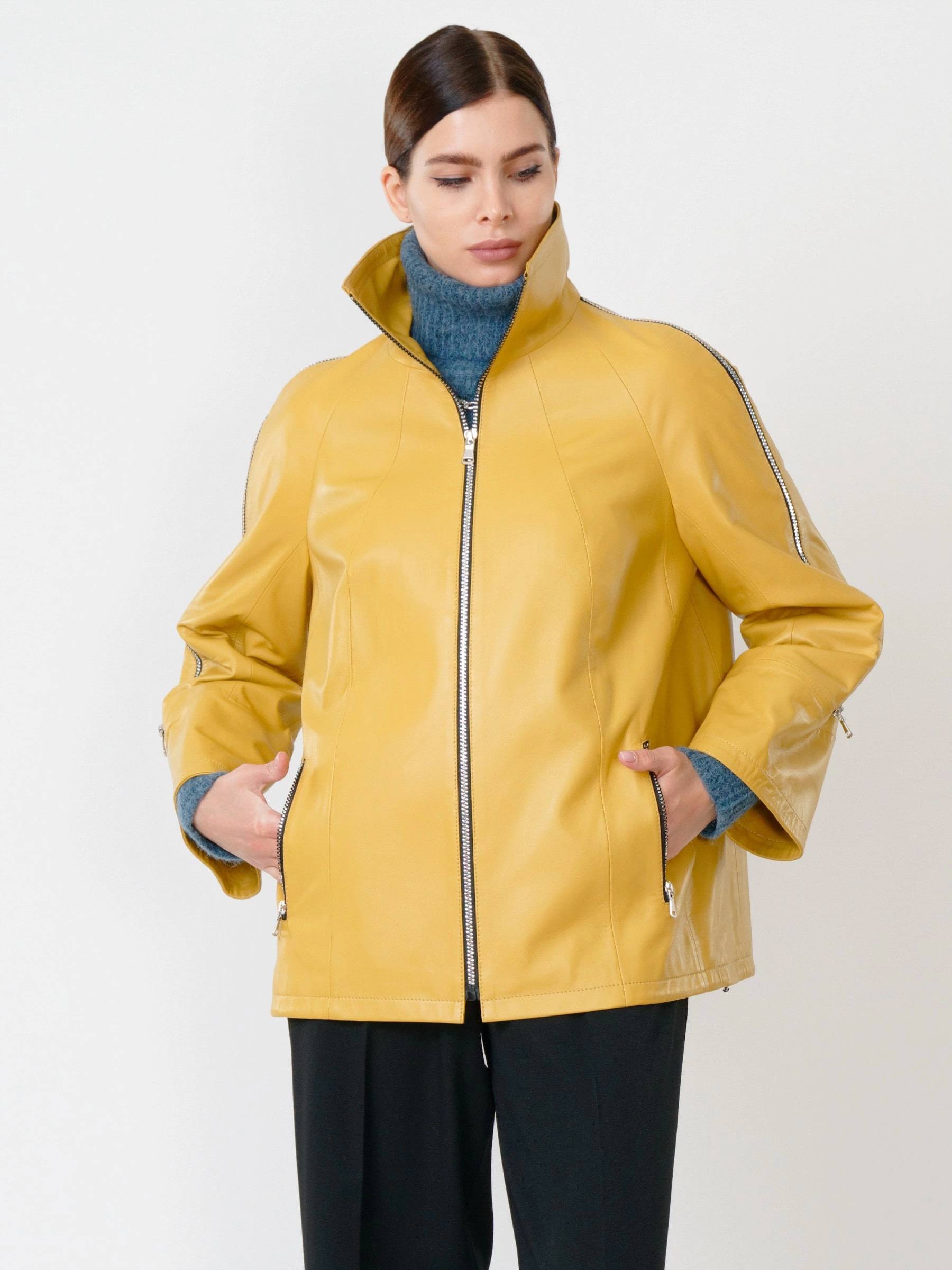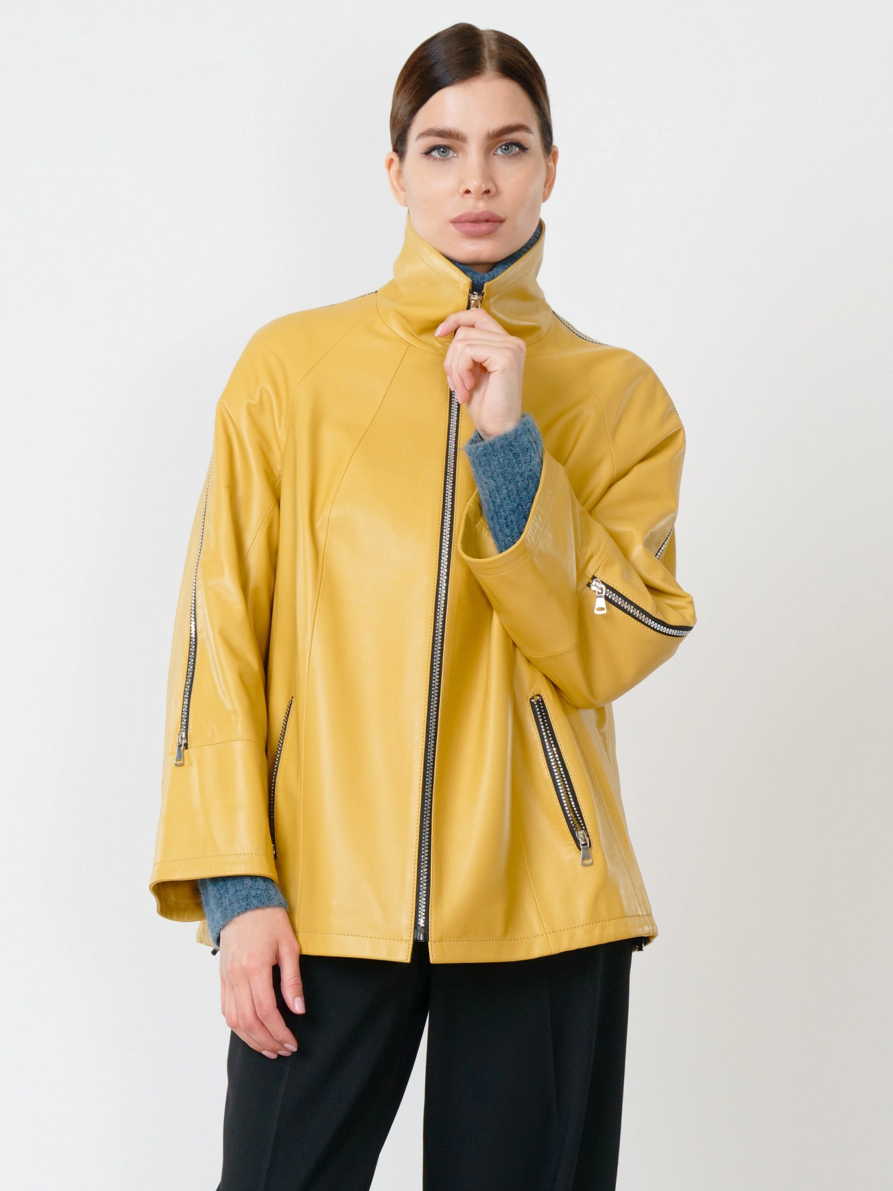Товар кожаная женская куртка оверсайз 385, желтая, размер 52, артикул 90570 выполнен из натуральной кожи с застежкой молния. Рассчитан на сезон: демисезон. Длина изделия 65 см, силуэт свободный.