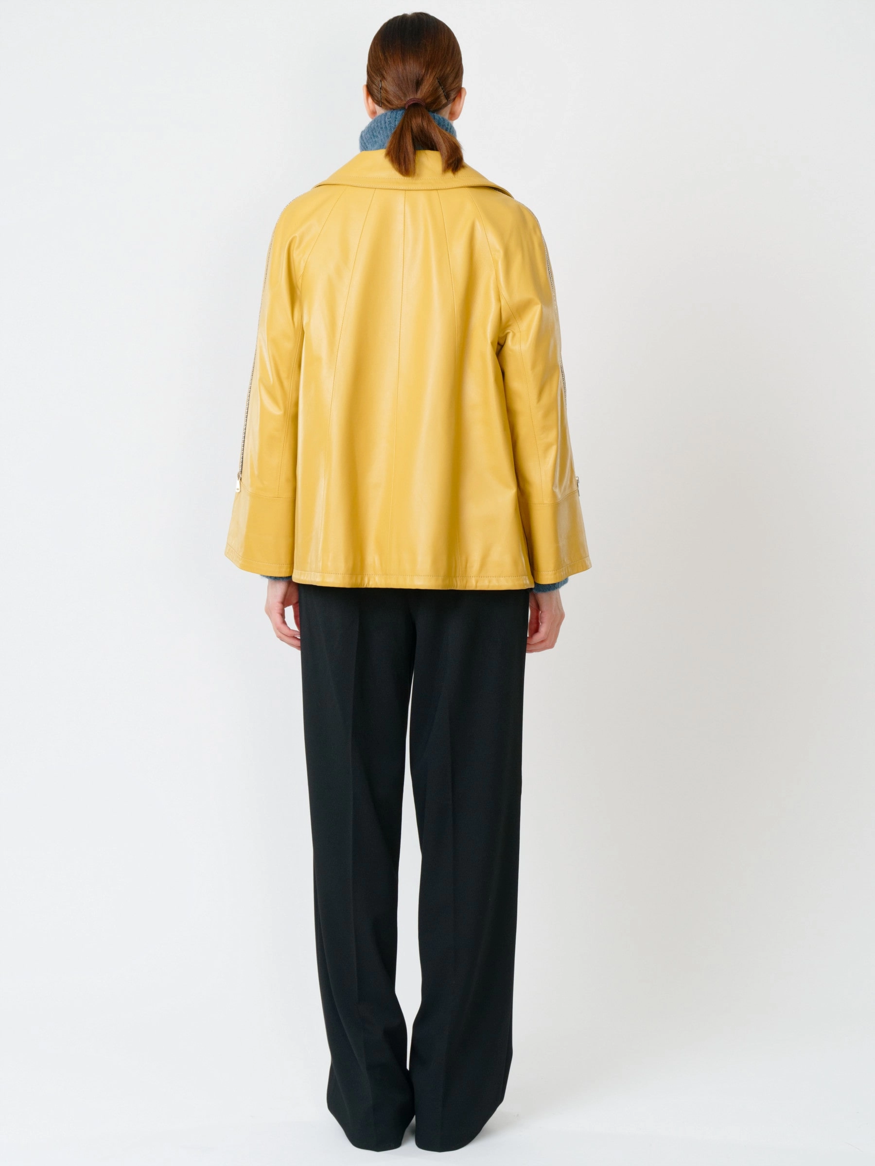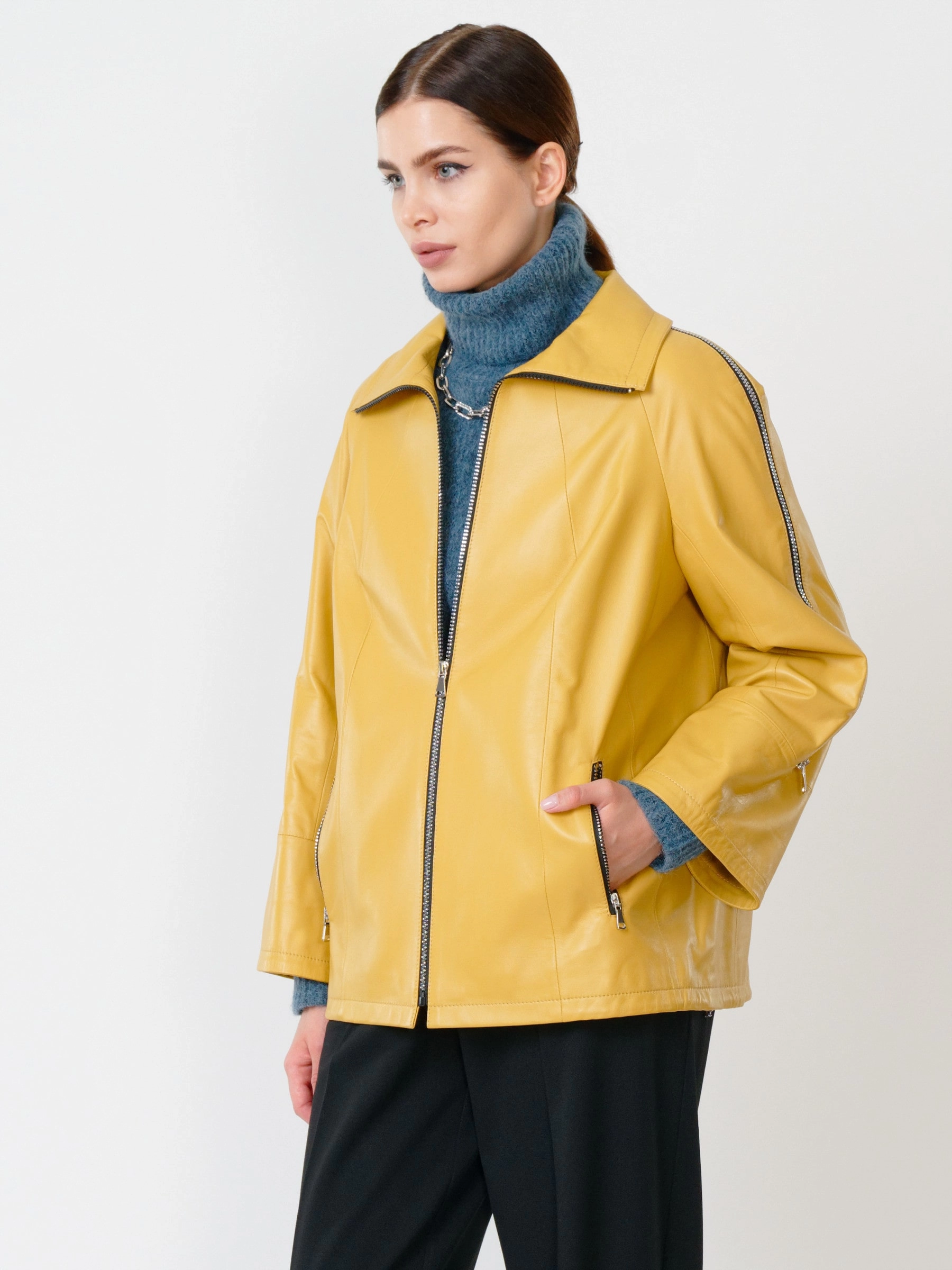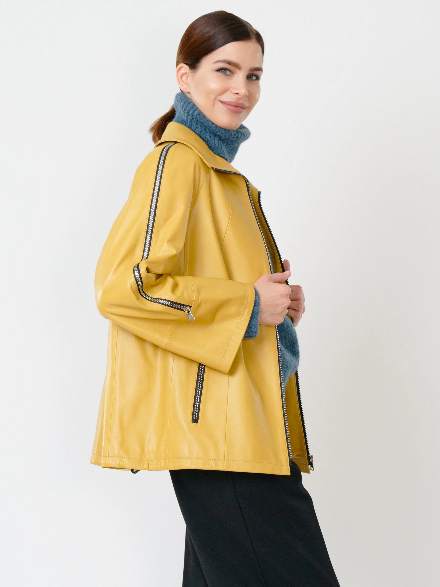 Кожаная женская куртка оверсайз 385, желтая, размер 52, артикул 90570