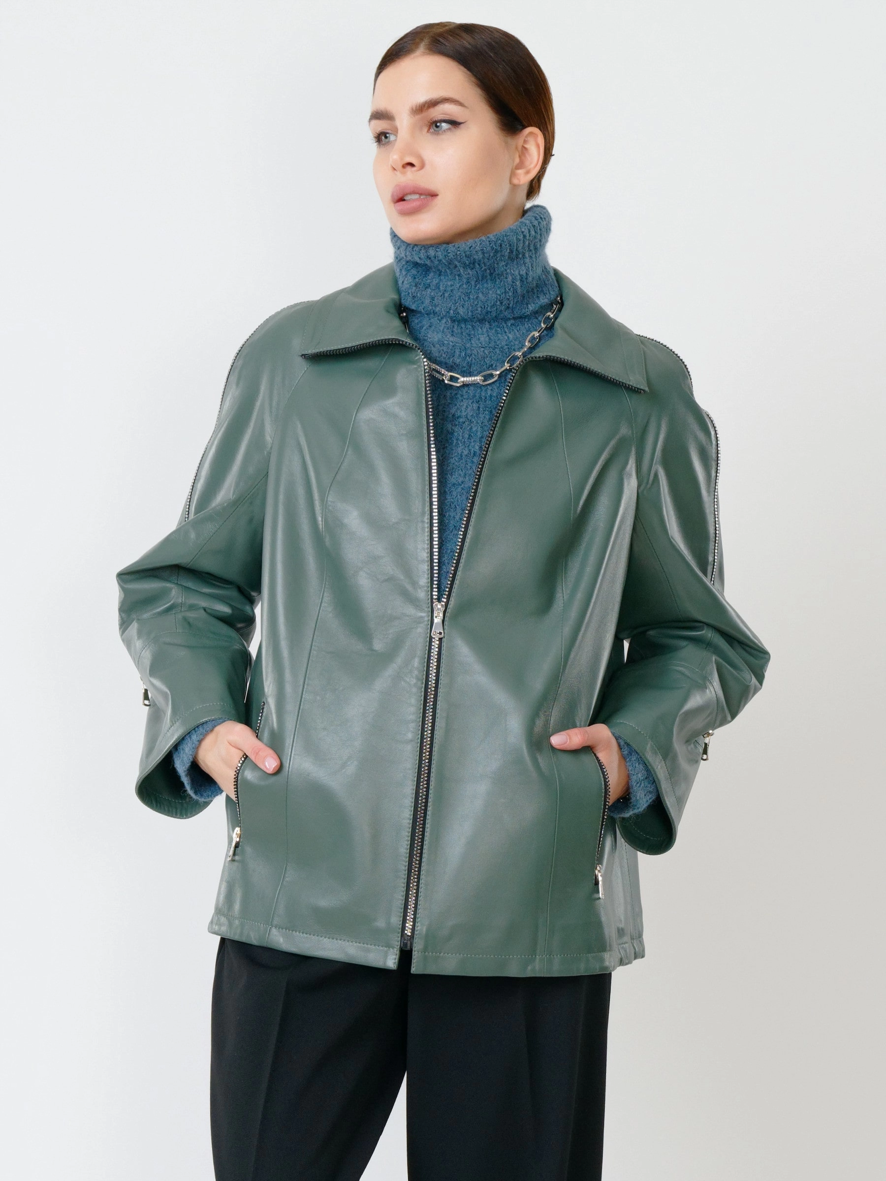 Товар кожаная женская куртка оверсайз 385, оливковая, размер 50, артикул 90860 выполнен из натуральной кожи с застежкой молния. Рассчитан на сезон: демисезон. Длина изделия 65 см, силуэт свободный.