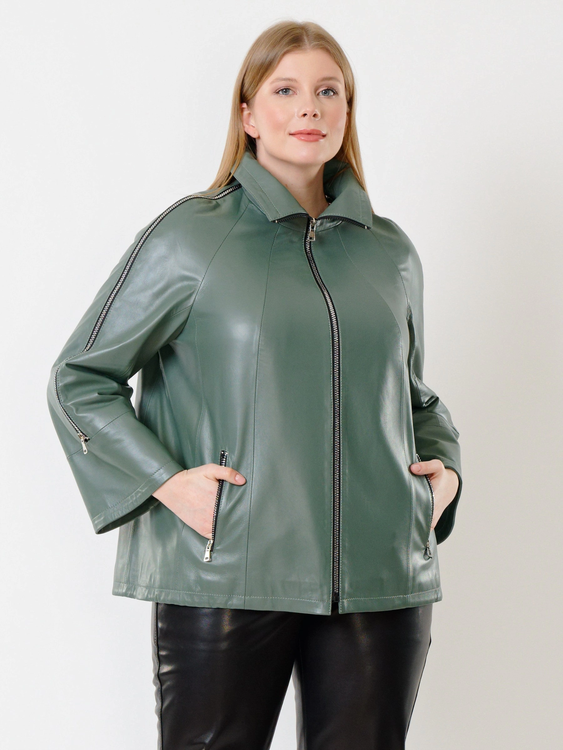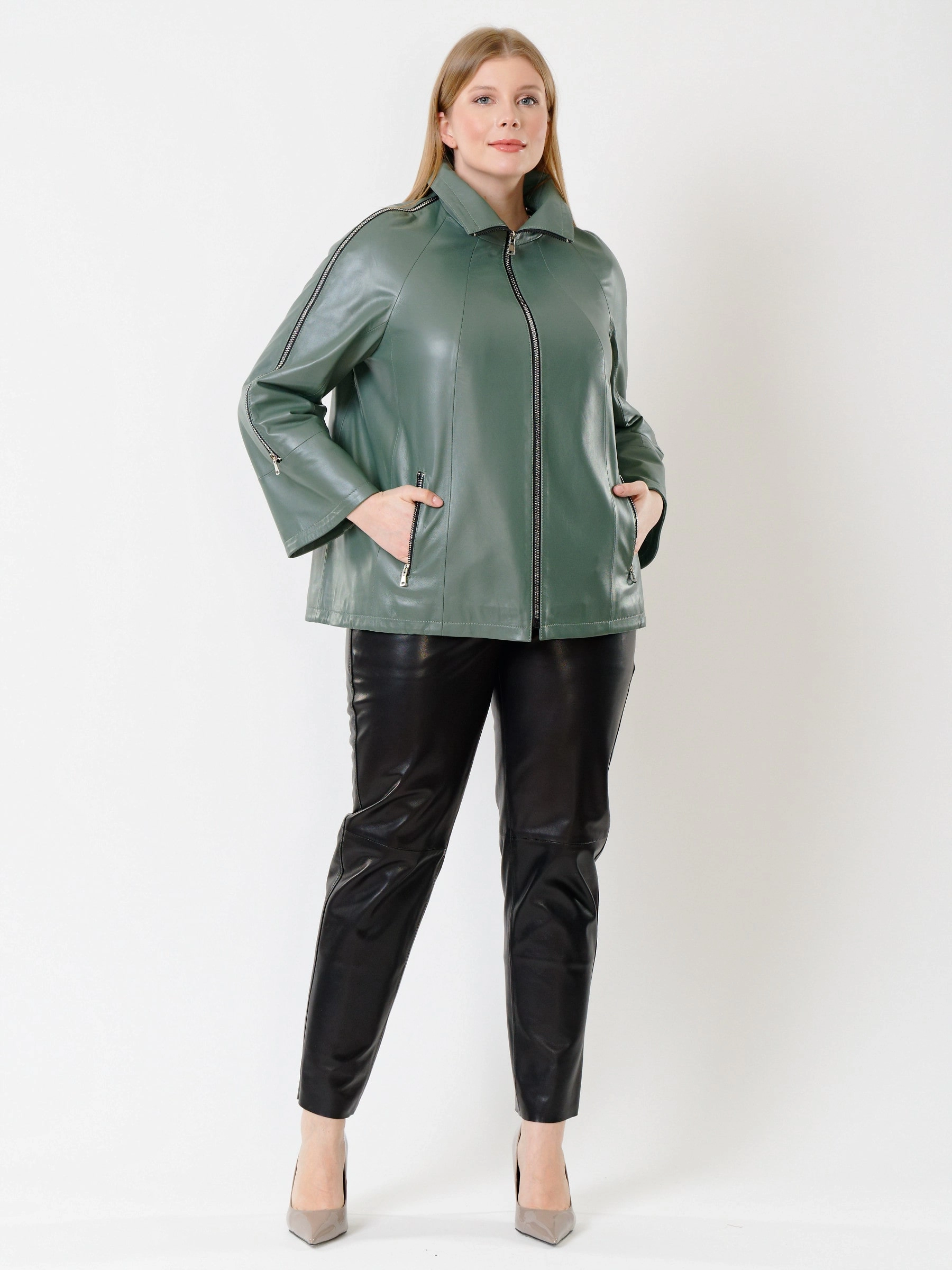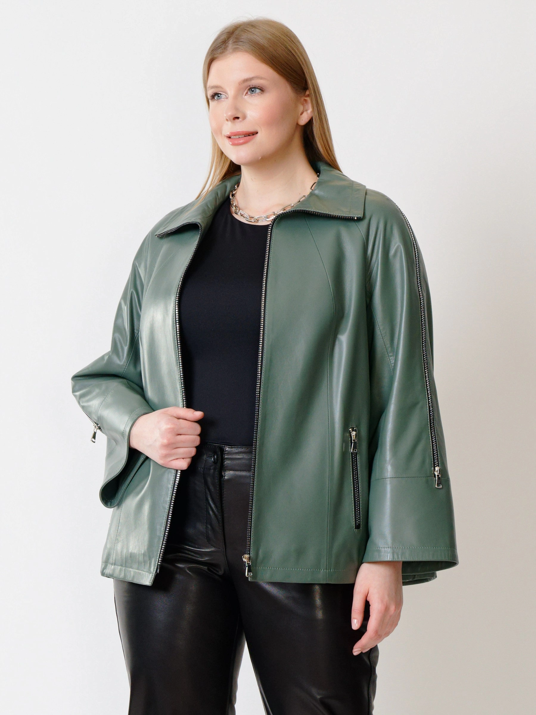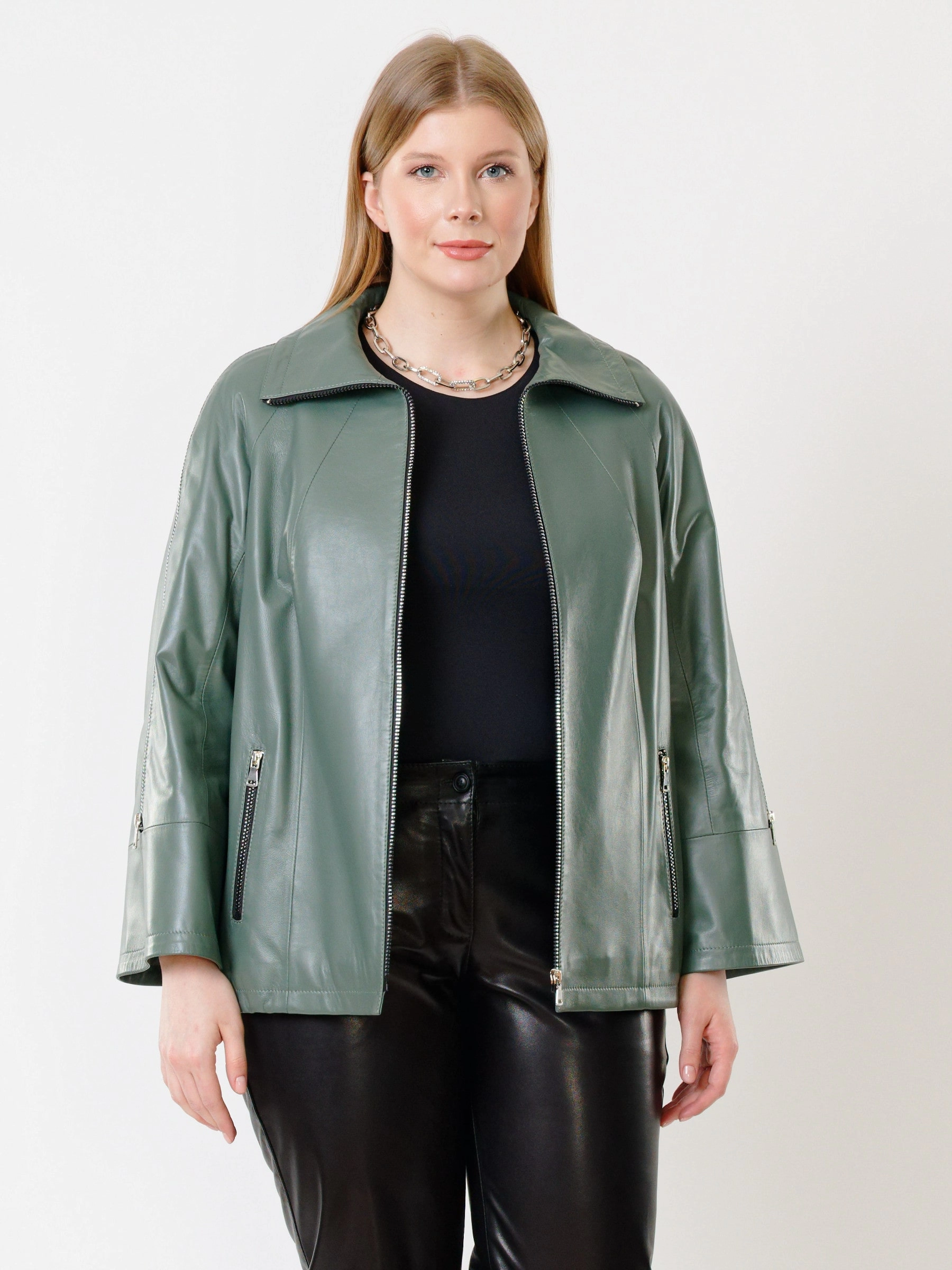Товар кожаная женская куртка оверсайз 385, оливковая, размер 50, артикул 91321 выполнен из натуральной кожи с застежкой молния. Рассчитан на сезон: демисезон. Длина изделия 65 см, силуэт свободный.