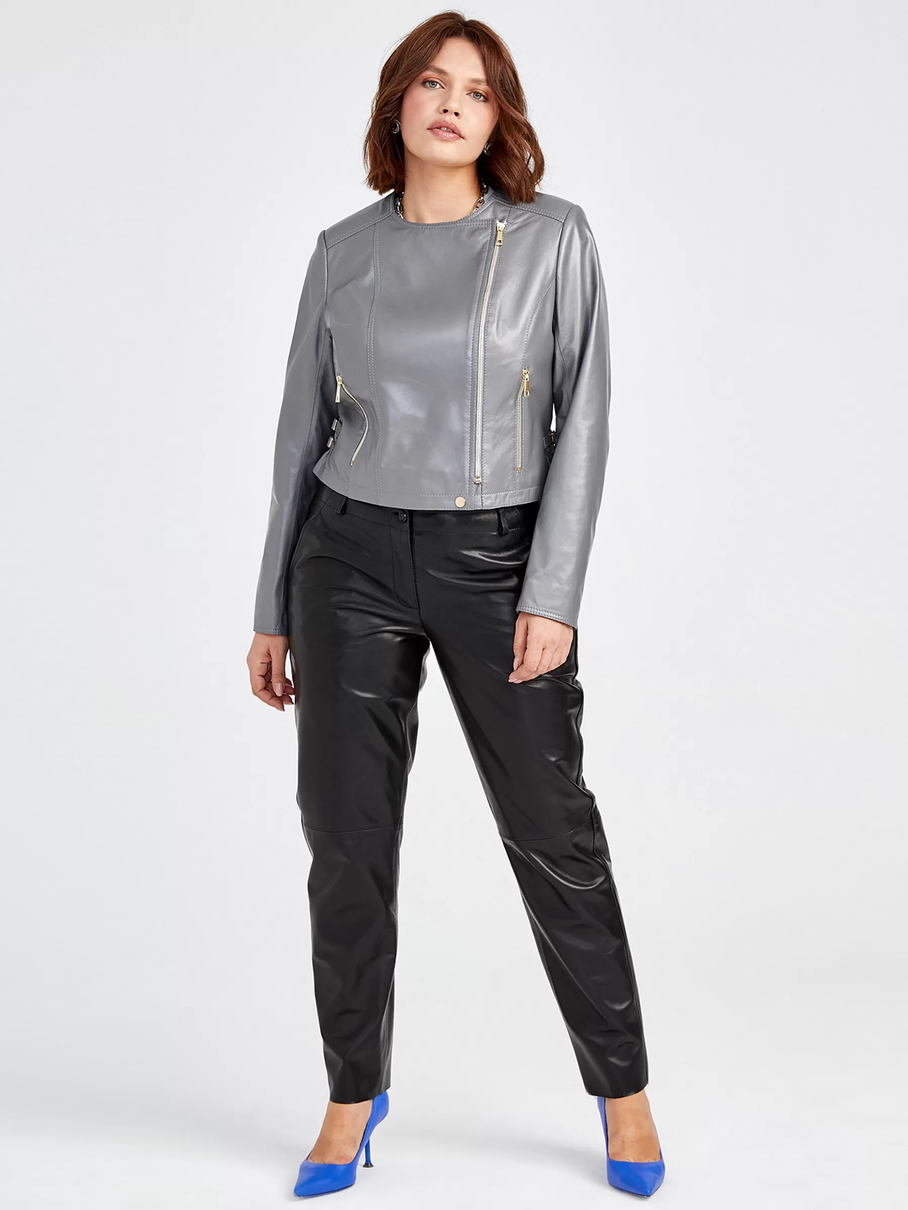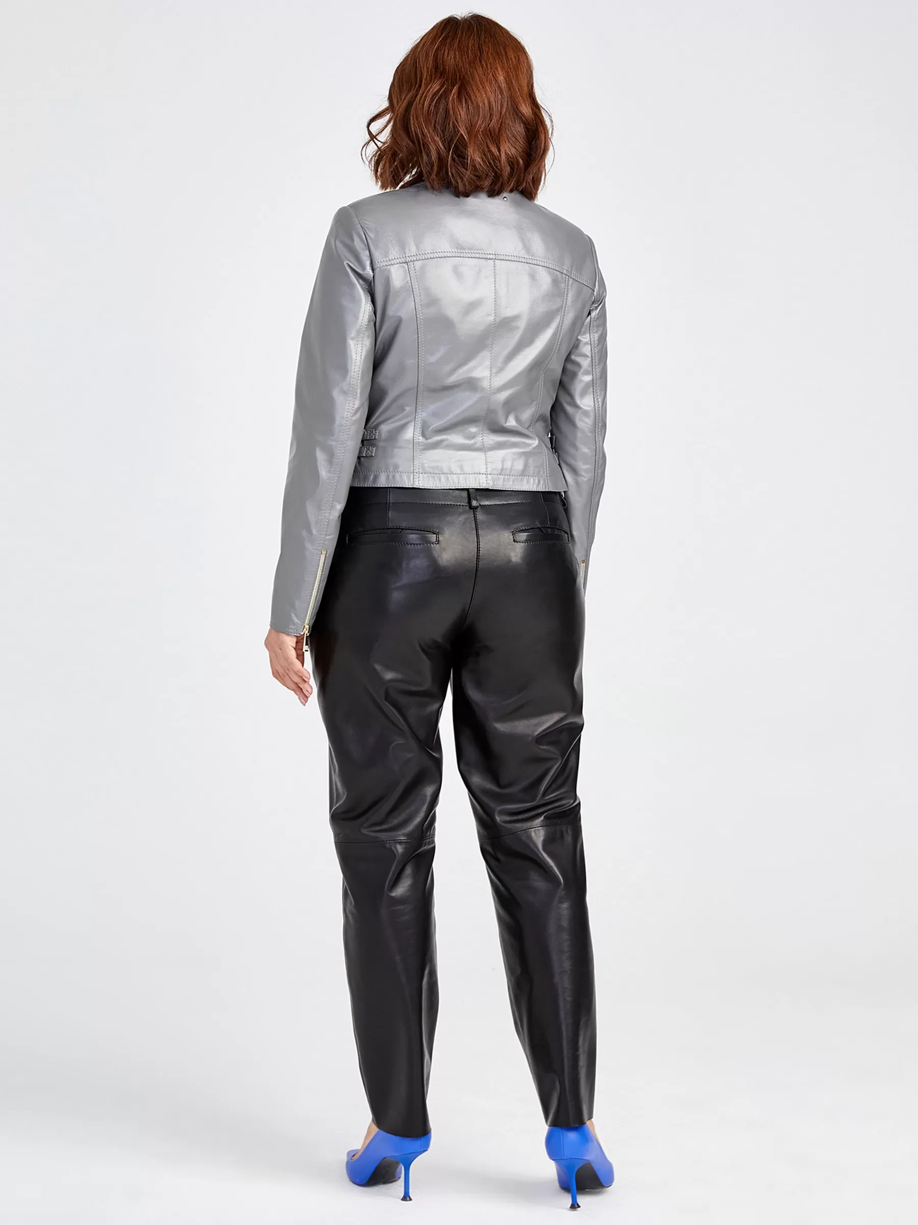 Кожаная женская куртка косуха 389, серая, размер 42, артикул 91550