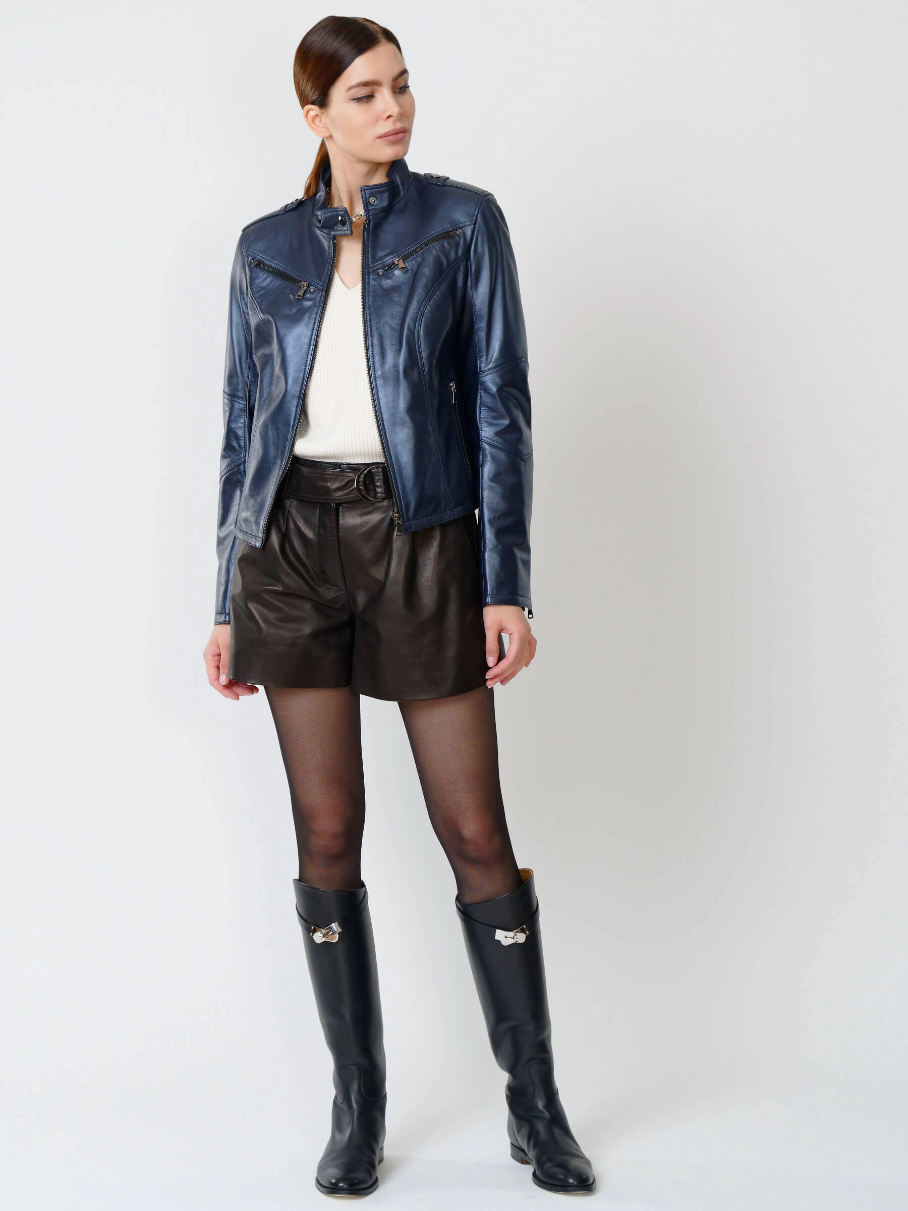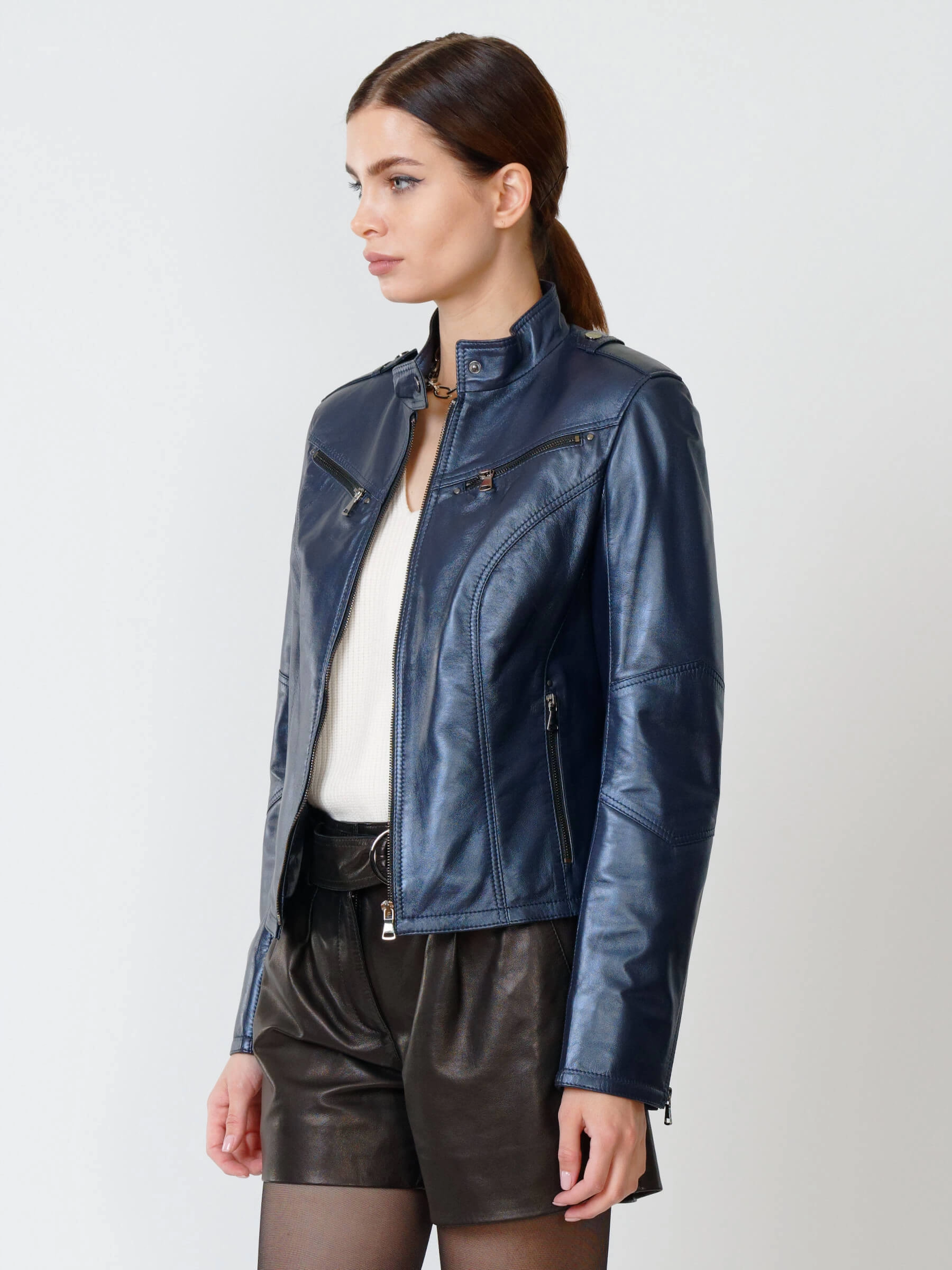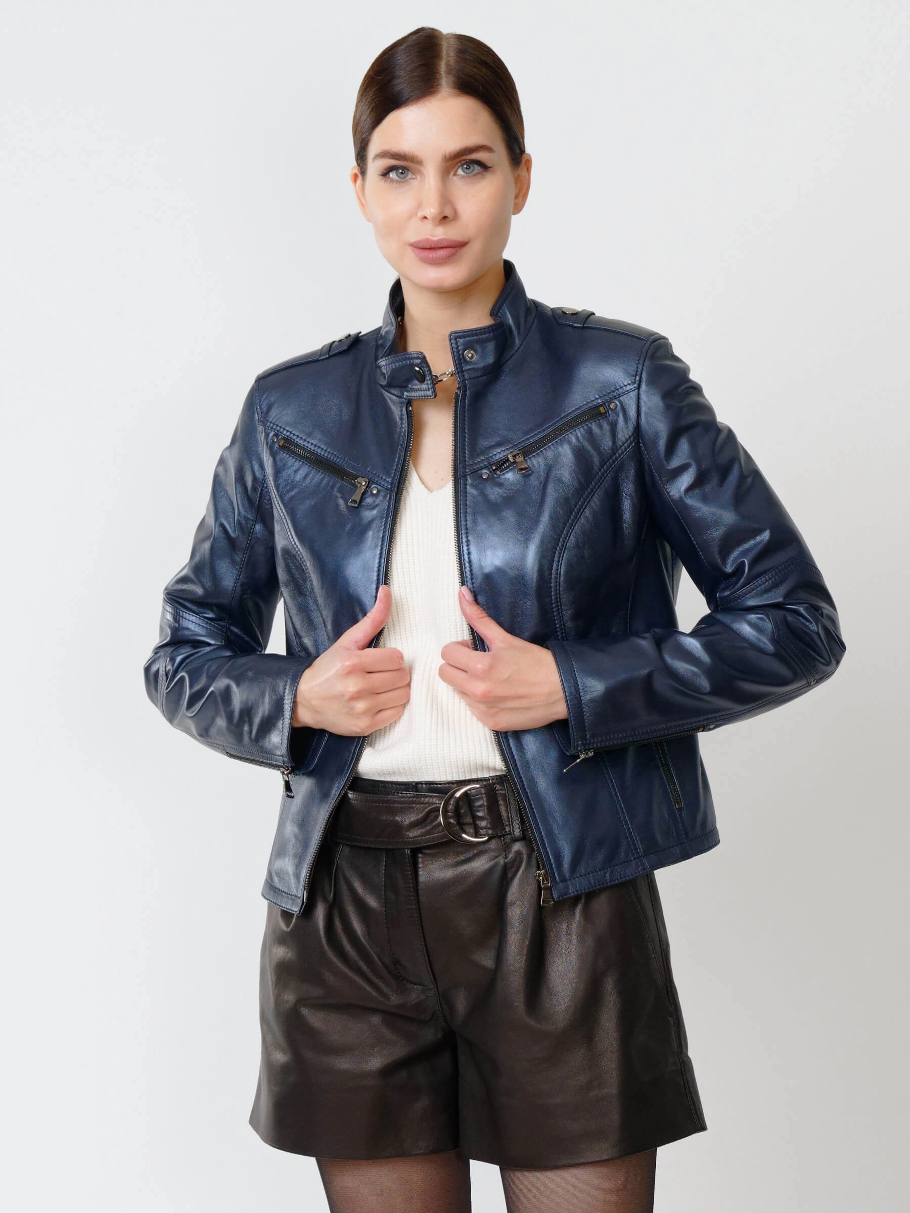 Стильная приталенная кожаная куртка на молнии для повседневной носки. Лаконичный дизайн премиум-класса с воротником-стойкой на кнопке подчеркивает фигуру. Модель функциональна: оснащена вместительными боковыми и нагрудными карманами на молниях. Благодаря идеальной посадке и универсальности эта куртка станет главным элементом гардероба. Сочетайте её с джинсами для дерзкого образа или с платьем для стильного контраста.