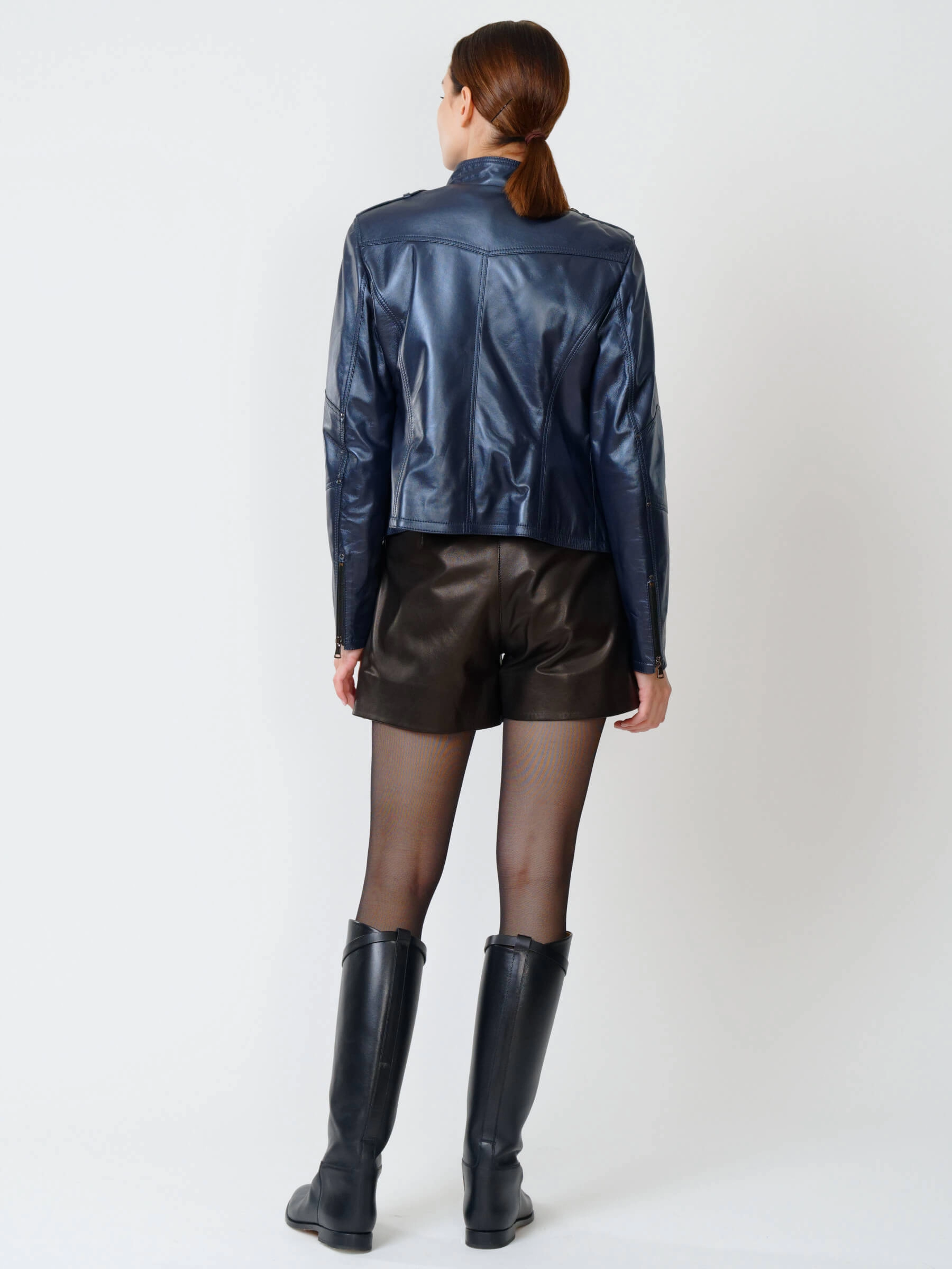 Кожаная куртка женская 399, синий перламутр, размер 46, артикул 90932
