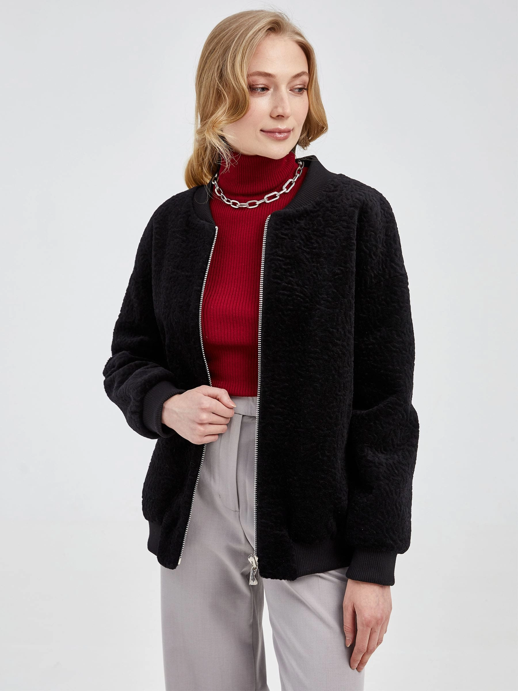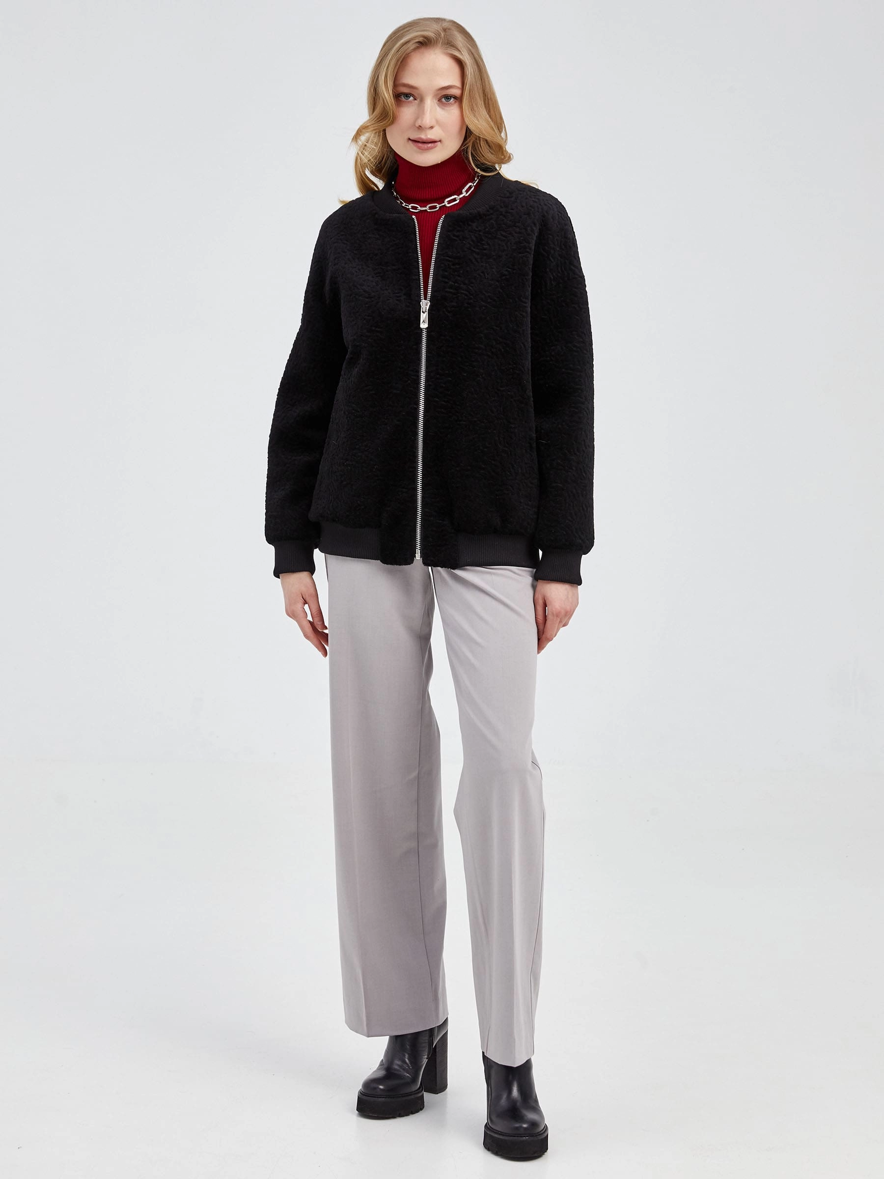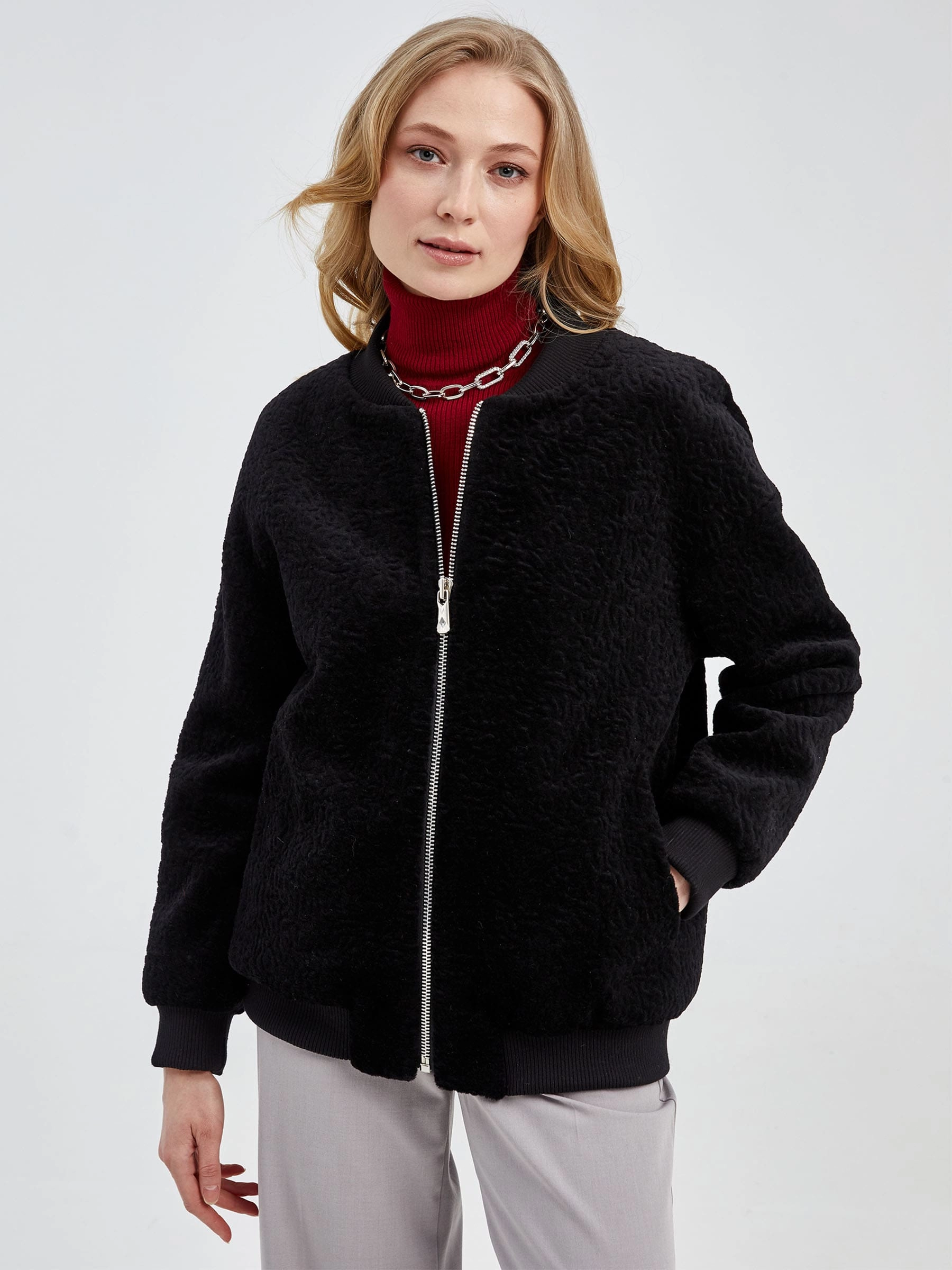 Текстильная куртка бомбер из шерсти женская 838sf, черная, размер 44, артикул 25230