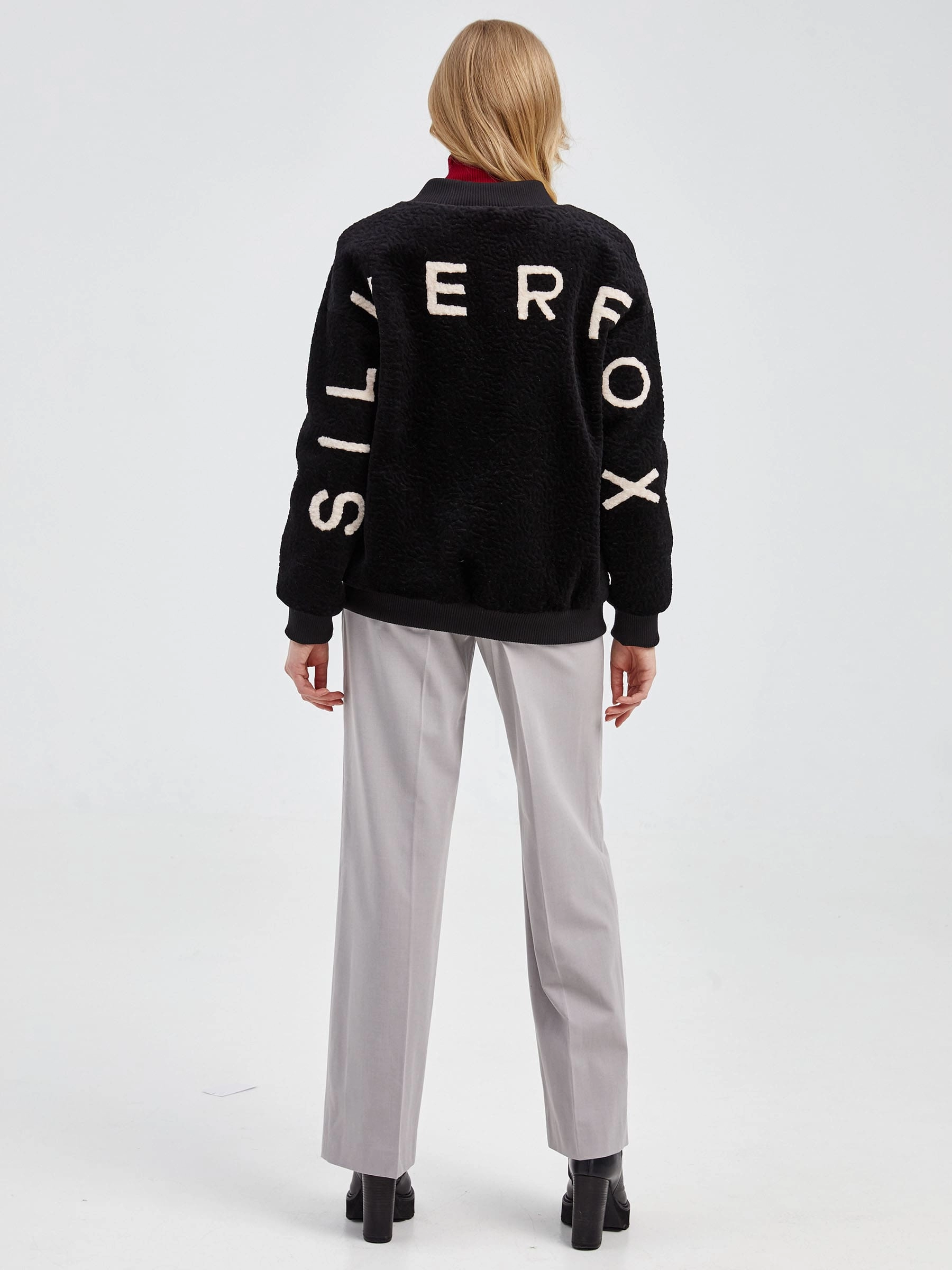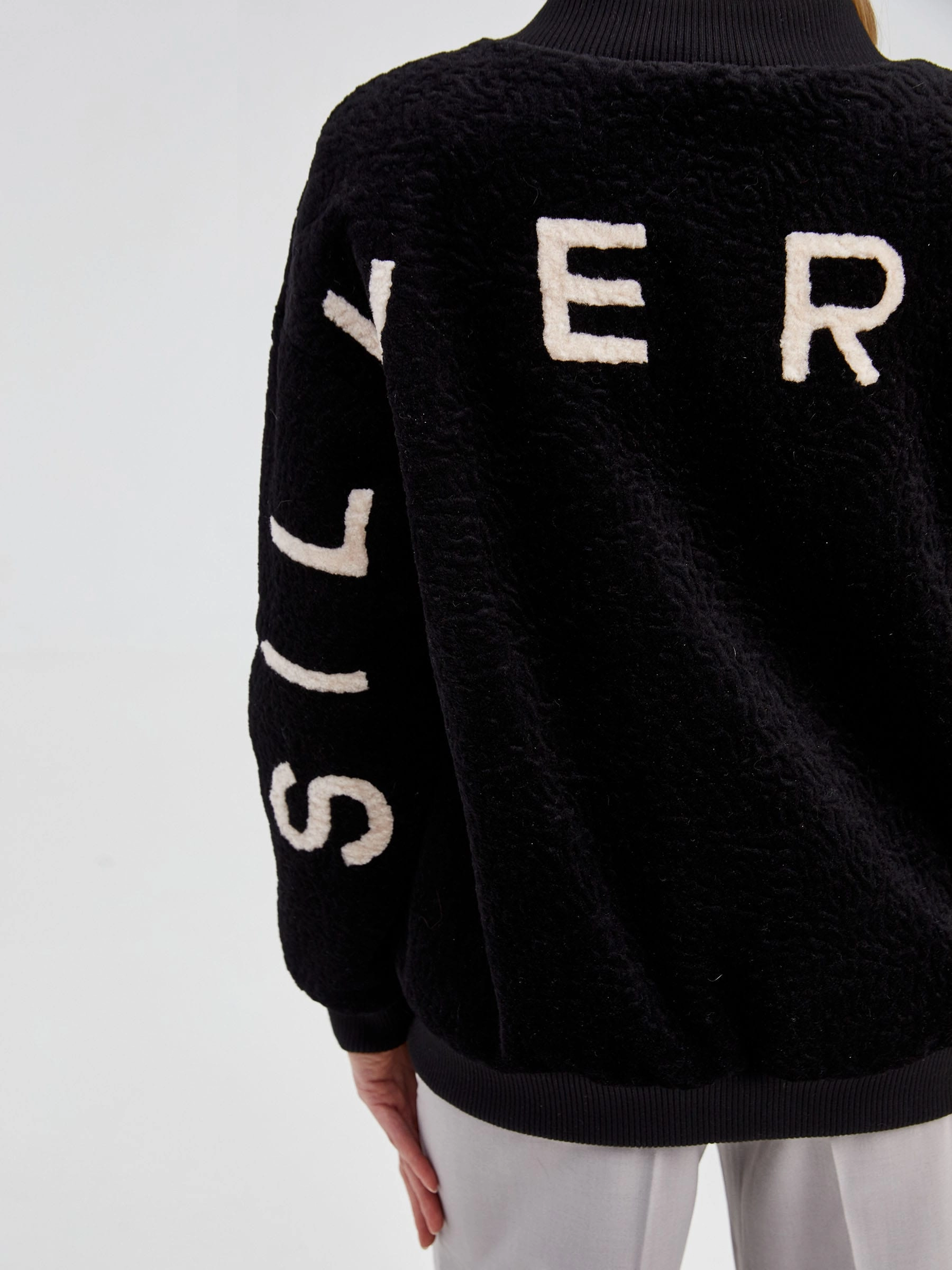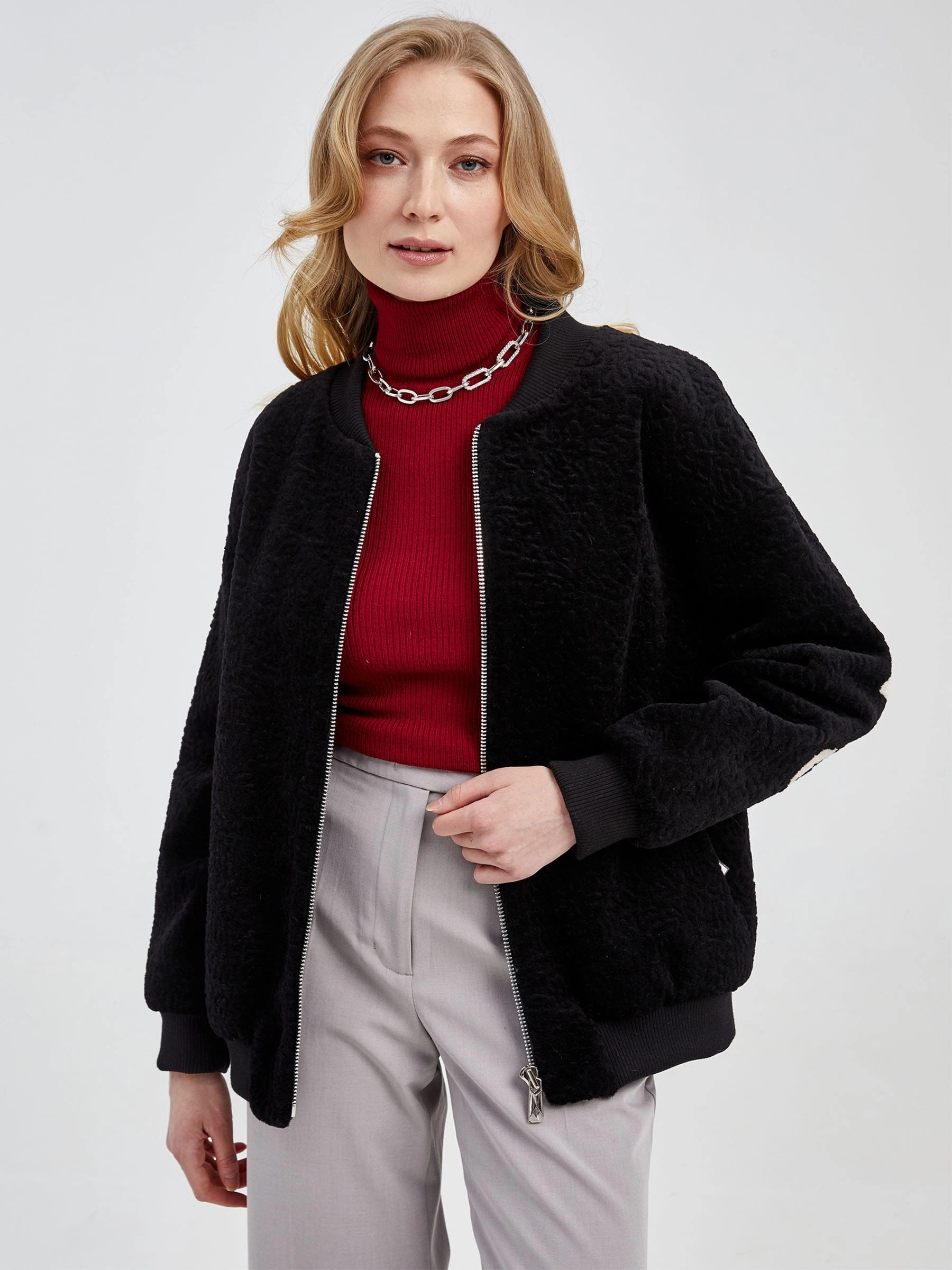 Текстильная куртка бомбер из шерсти женская 838sf, черная, размер 44, артикул 25230