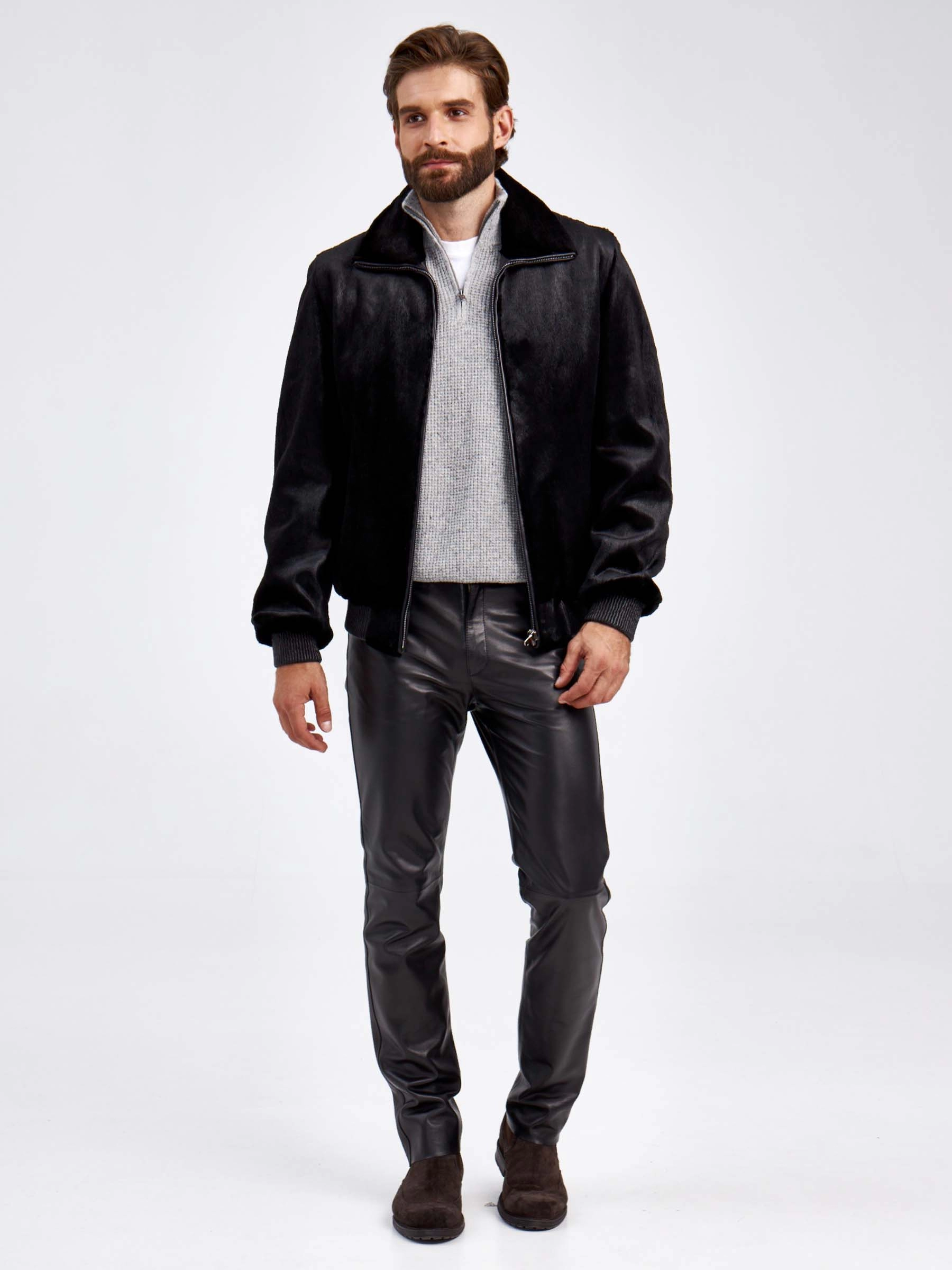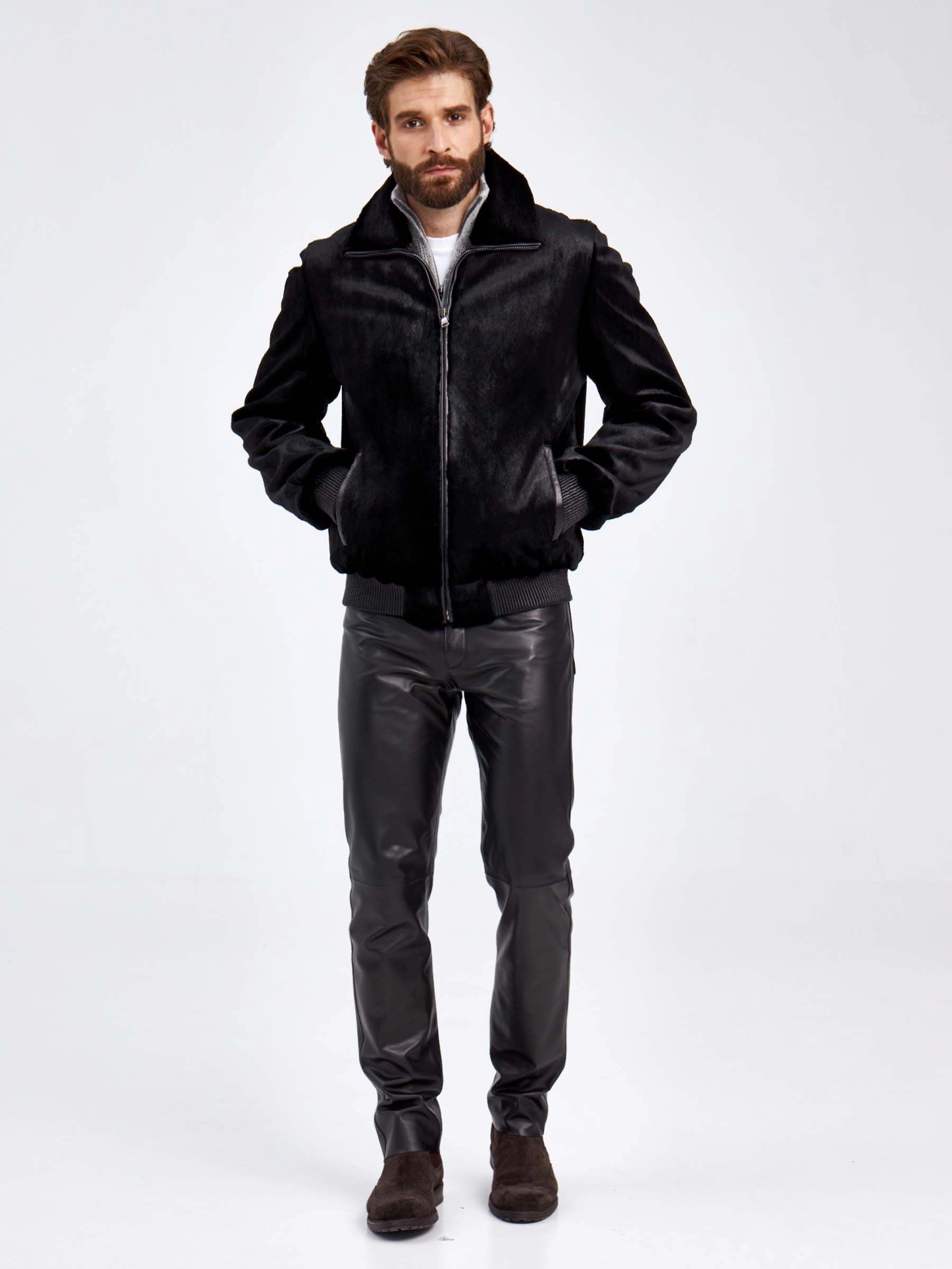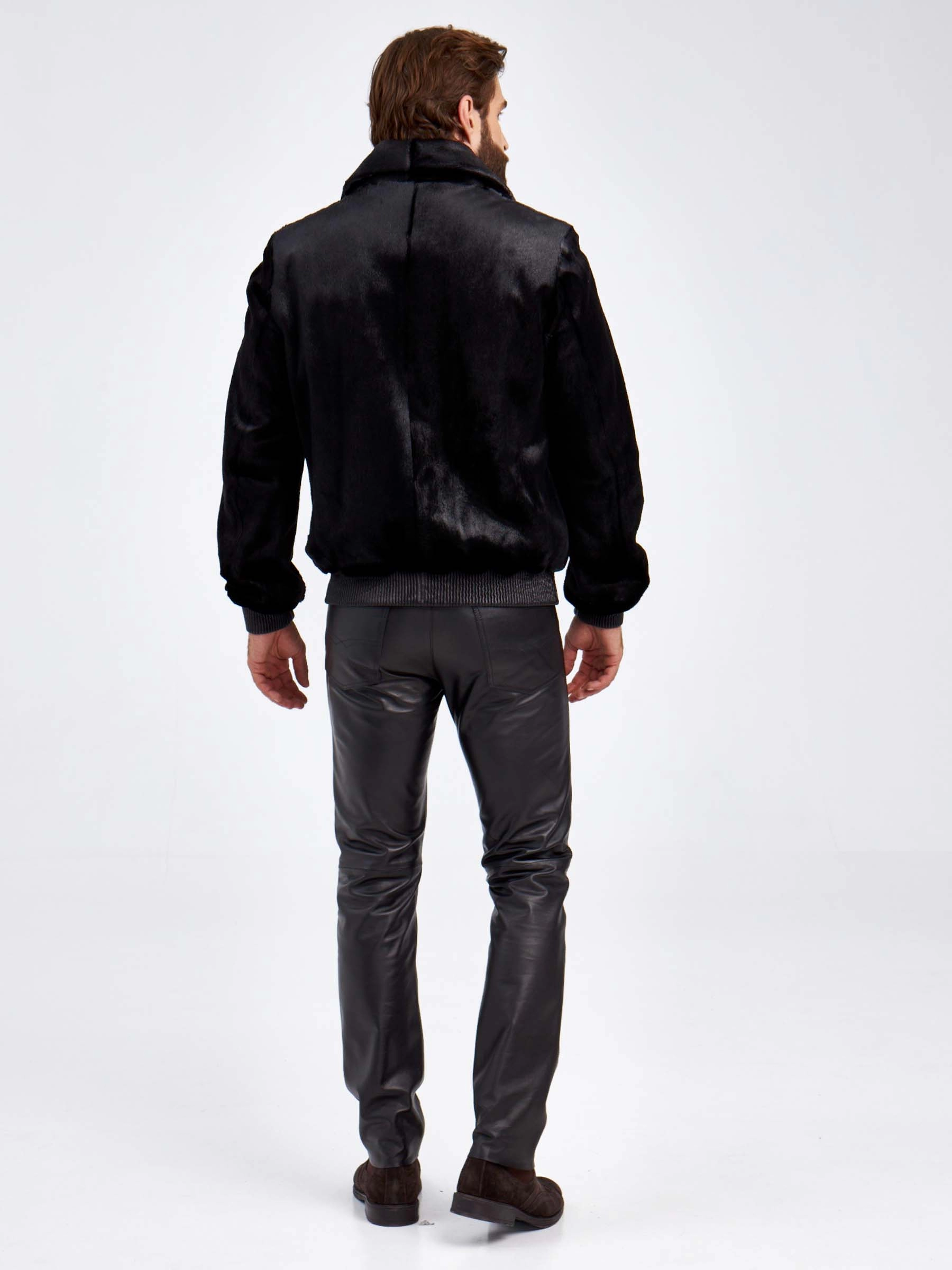 Мужская меховая куртка бомбер из канадской нерпы VE-7910, черная, размер 48, артикул 29470