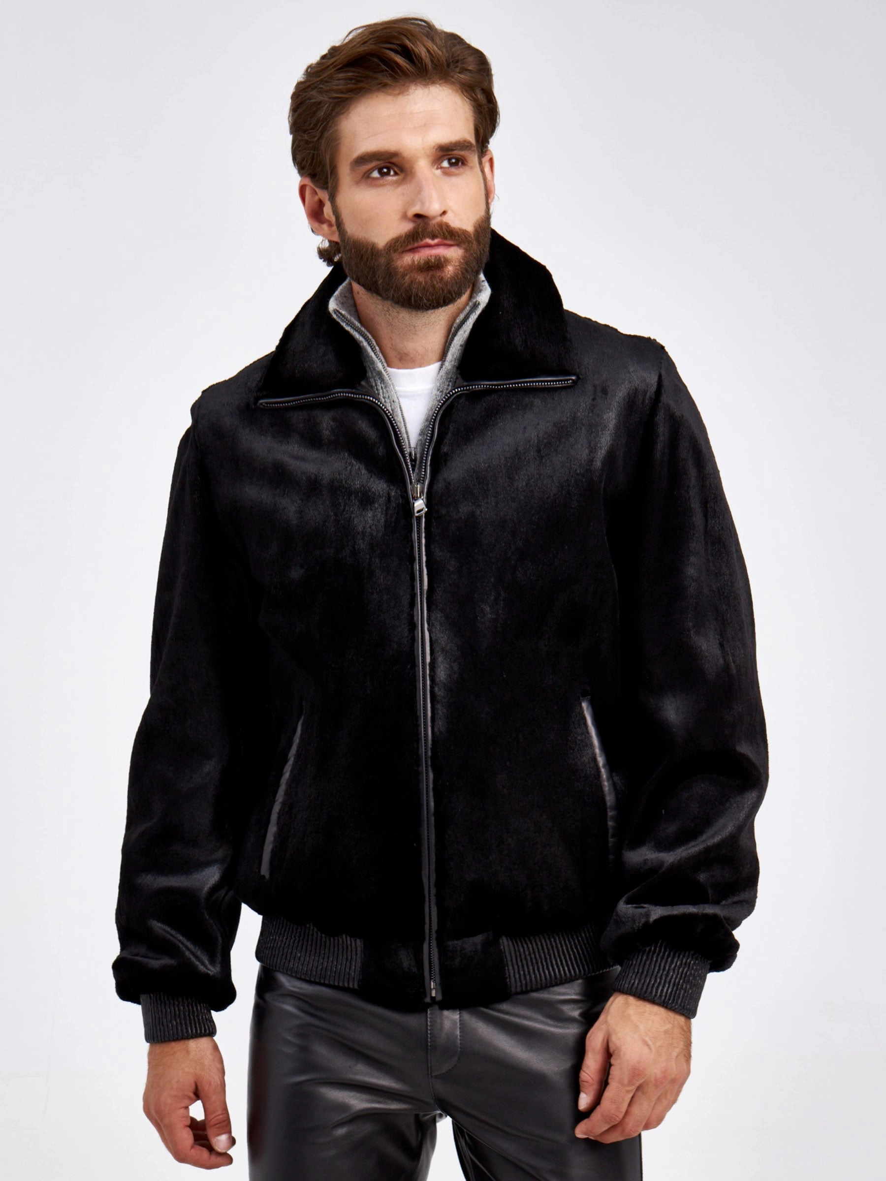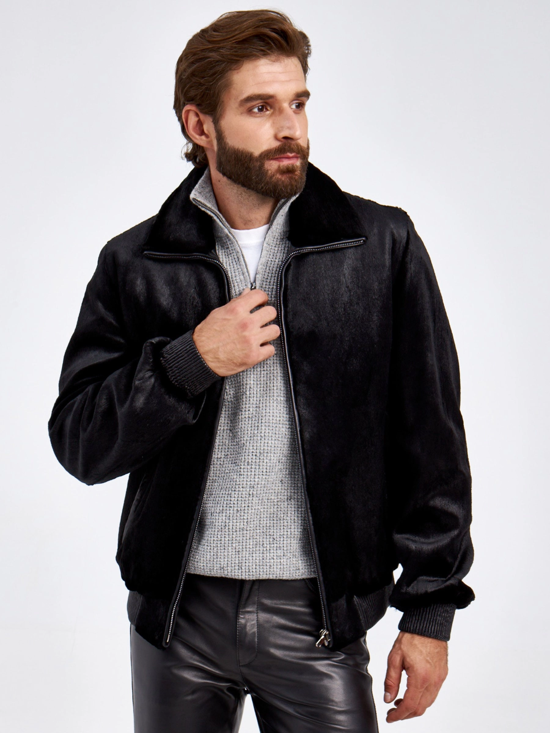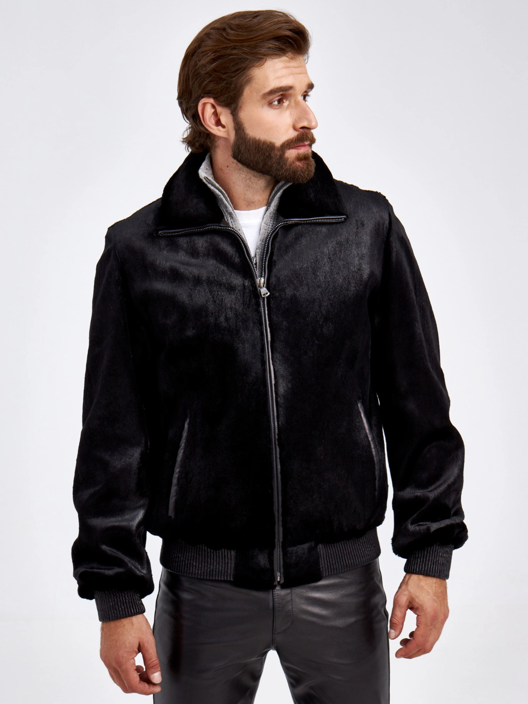 Мужская куртка из канадской нерпы. Ее мех настолько нежный и мягкий- словно бархат. Мех куртки вшит особым образом: ворсом в верх, для того, чтобы при интенсивной носке - заломы были менее заметны. Отложной меховой воротник легко трансформируется в стойку. Застежка- молния. Манжеты и пояс выполнили из плотной кожаной резинке. Все лаконично и дорого. За комфортную посадку отвечает свободный силуэт модели.
