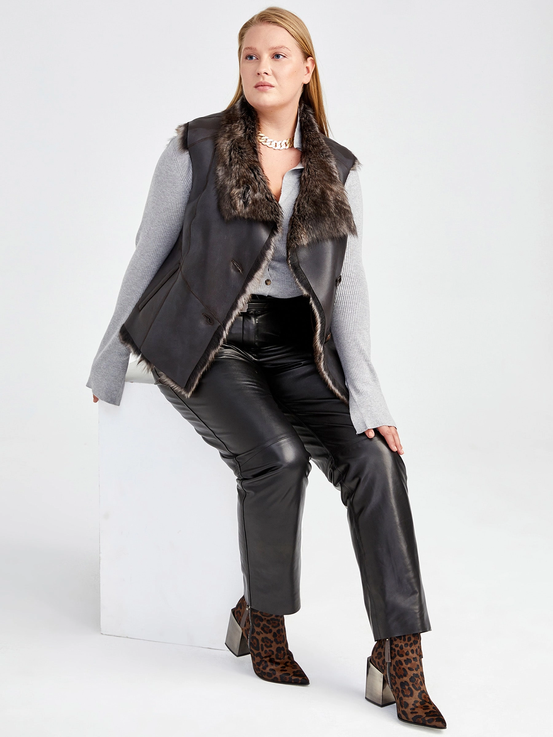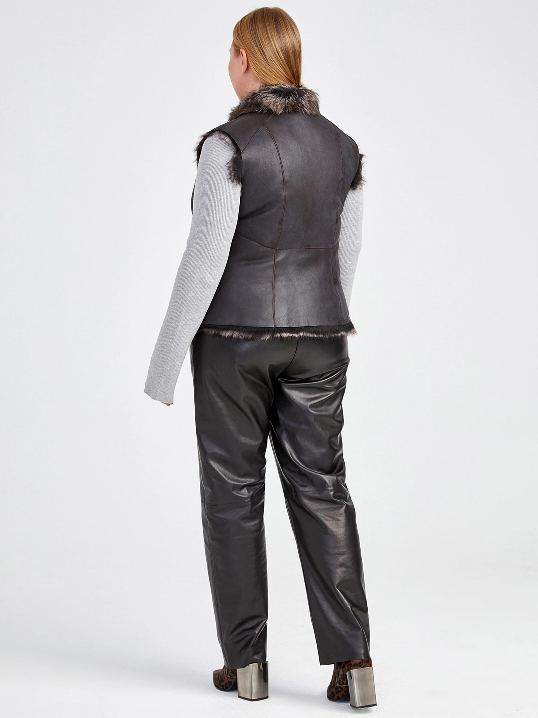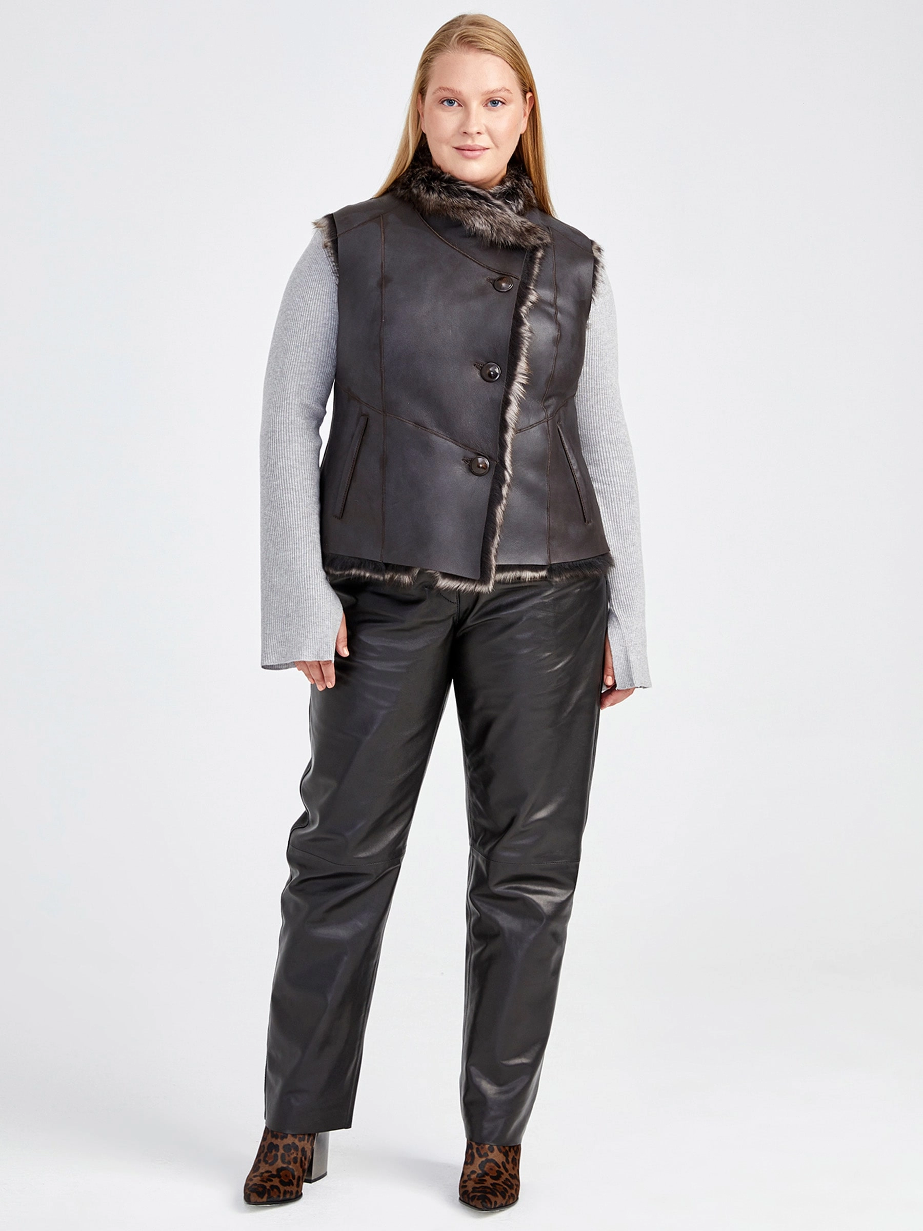Меховой жилет из тосканы женский 06, коричневый, размер 44, артикул 62230