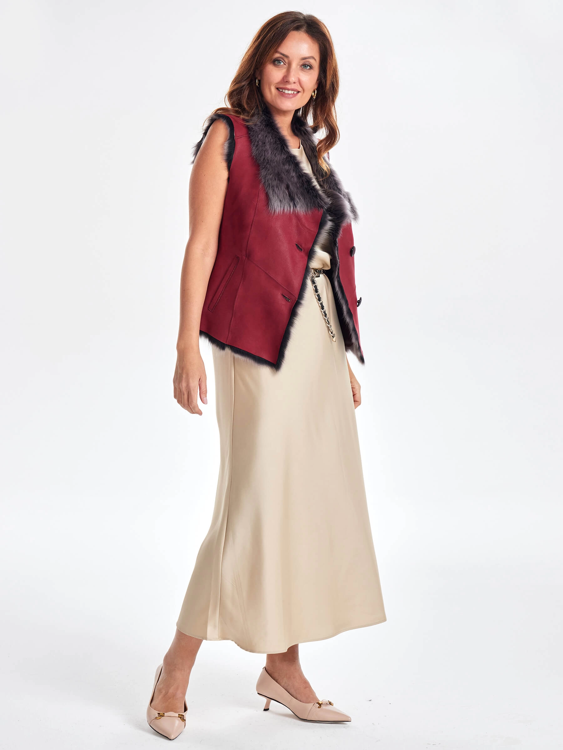 Представляем вам меховой жилет из тосканы премиум-класса — идеальный выбор для современных женщин, ценящих комфорт, тепло и безупречный стиль. Выполненный из тосканской овчины премиального качества, этот жилет отличается невероятной мягкостью, легкостью и благородной фактурой. Полуприлегающий силуэт и отсутствие рукавов обеспечивают полную свободу движений, а отложной воротник добавляет элегантности. Модель застегивается на удобные пуговицы и представлена в универсальной длине от 51 до 74 см, позволяя подобрать идеальный вариант под любой рост и тип фигуры. Этот жилет станет отличным выбором для тех, кто много времени проводит за рулем, — он дарит тепло и уют, не сковывая движений. Совет стилиста: носите этот жилет поверх тонкого кашемирового свитера с узкими джинсами и высокими сапогами для создания уютного повседневного образа, либо набросьте на легкое трикотажное платье-миди, добавив пояс, чтобы подчеркнуть силуэт и обыграть фактуру тосканы как главный акцент вашего аутфита.