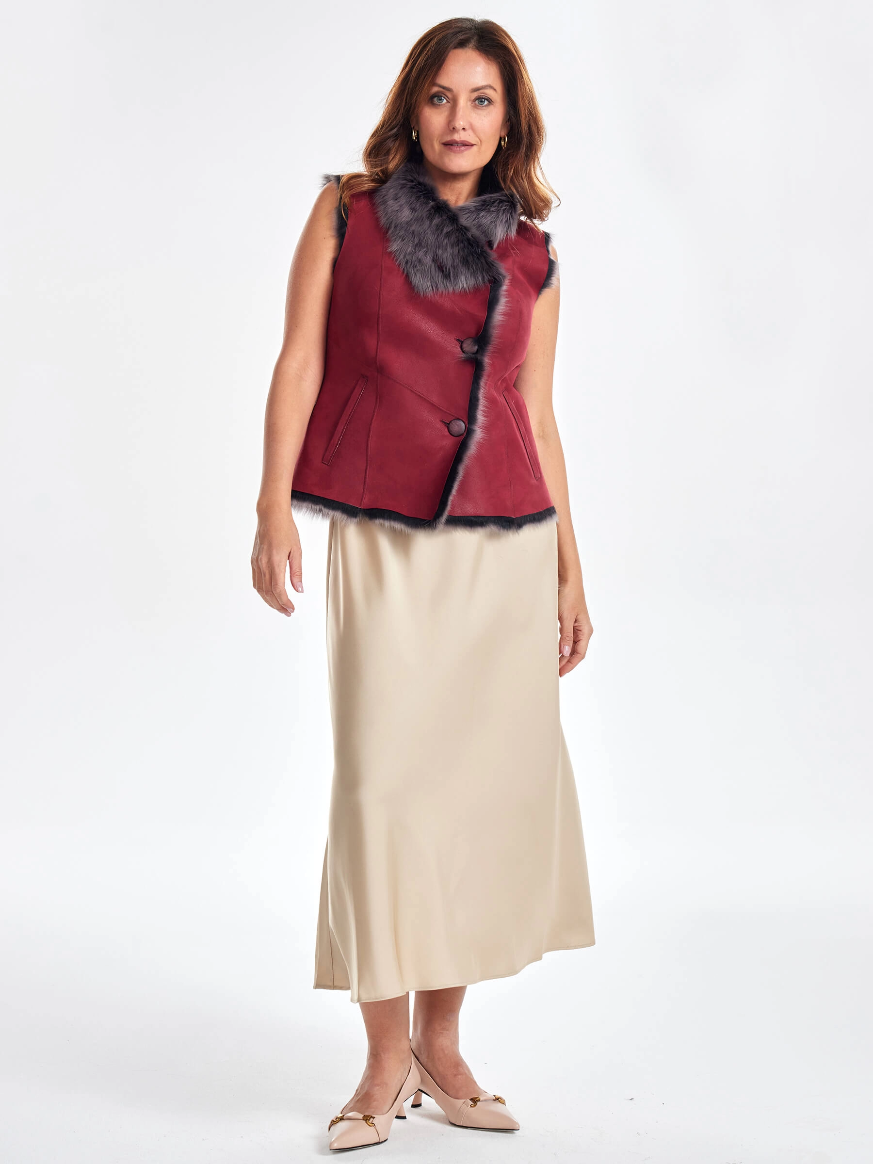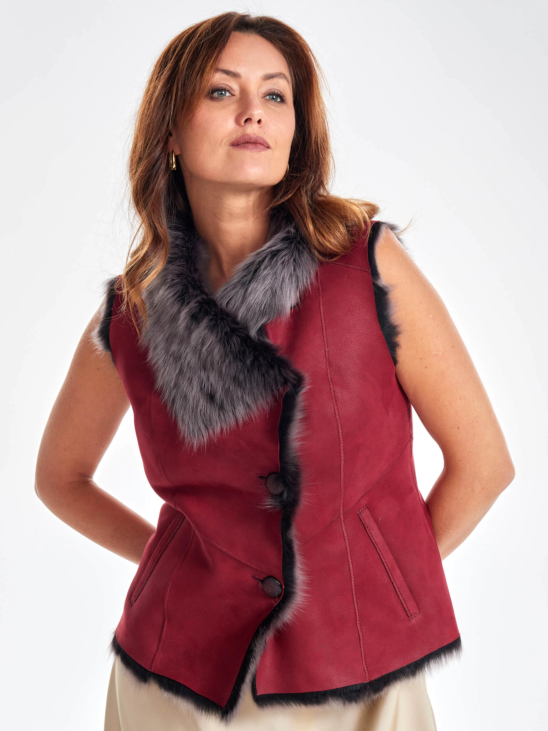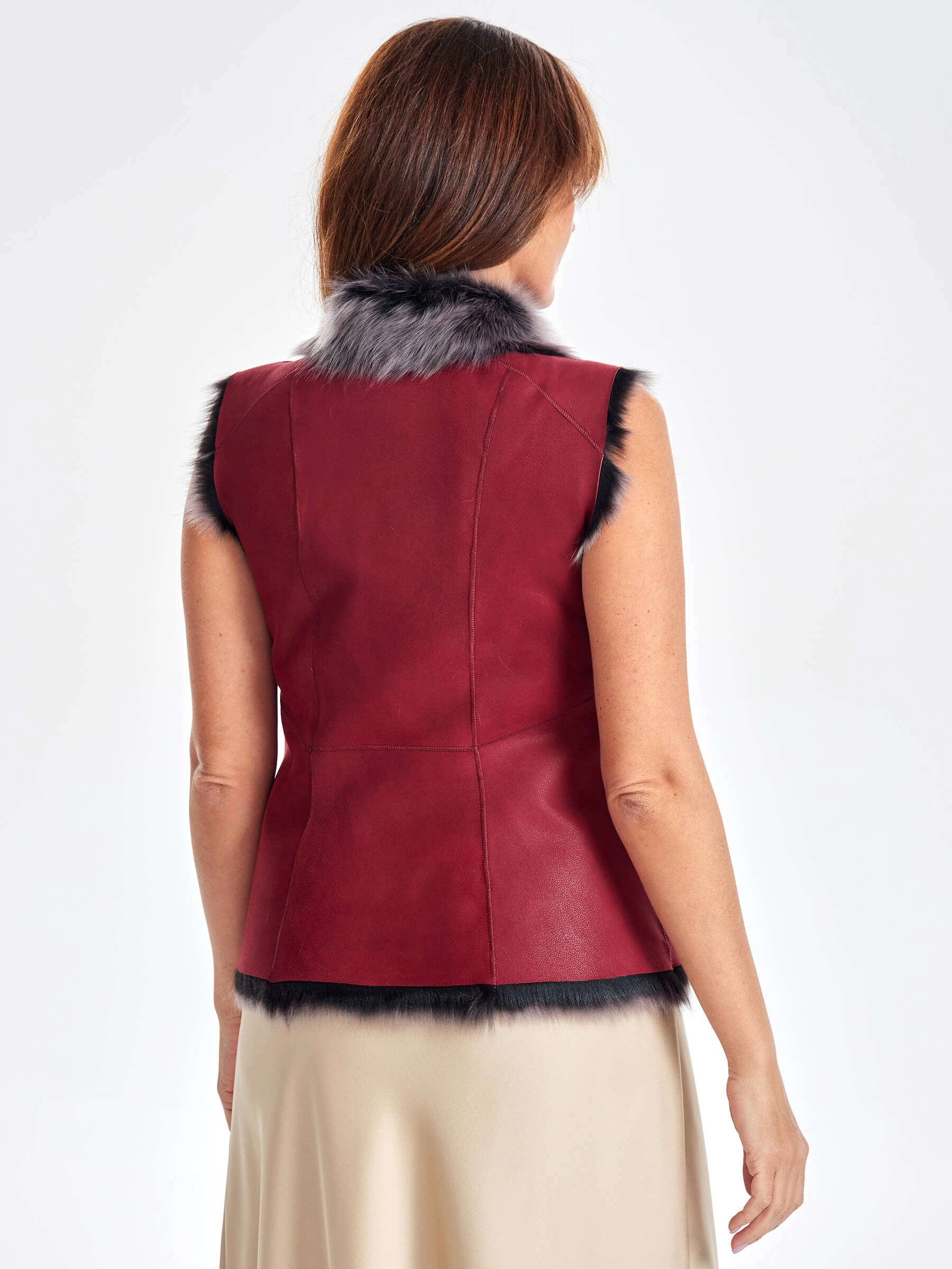 Меховой жилет из тосканы премиум класса для женщин 06, красный, размер 46, артикул 62430