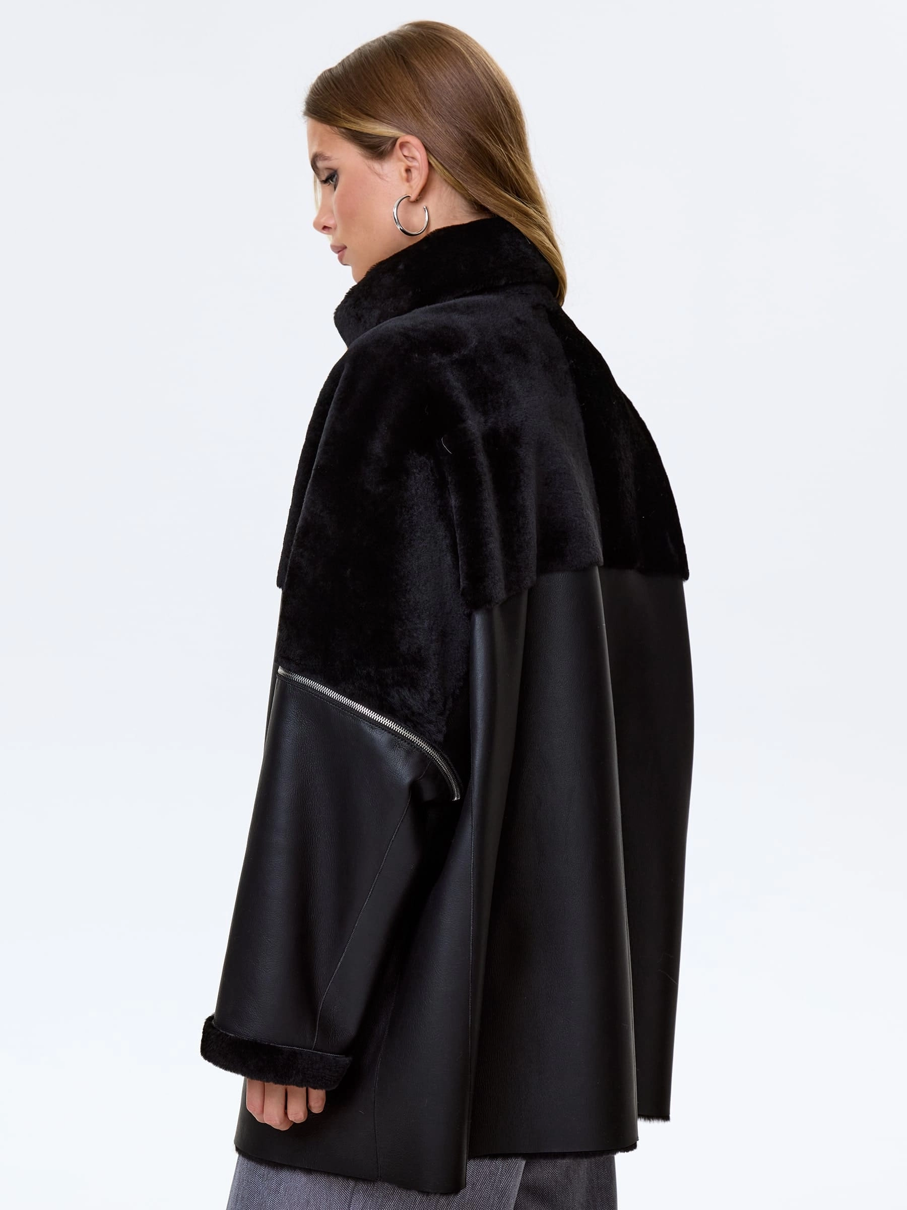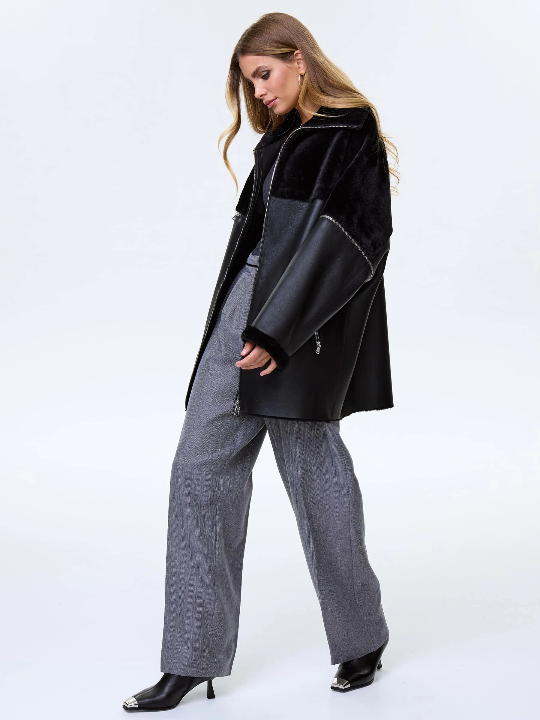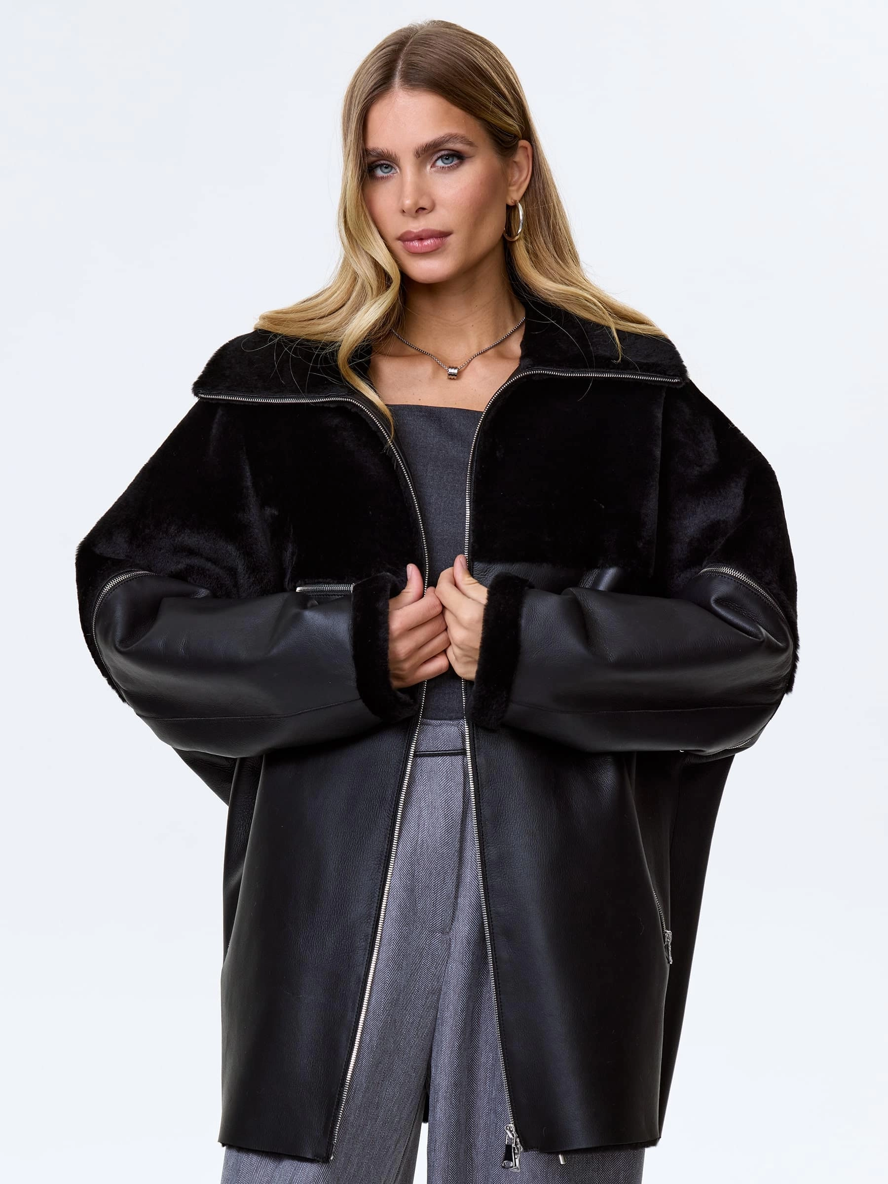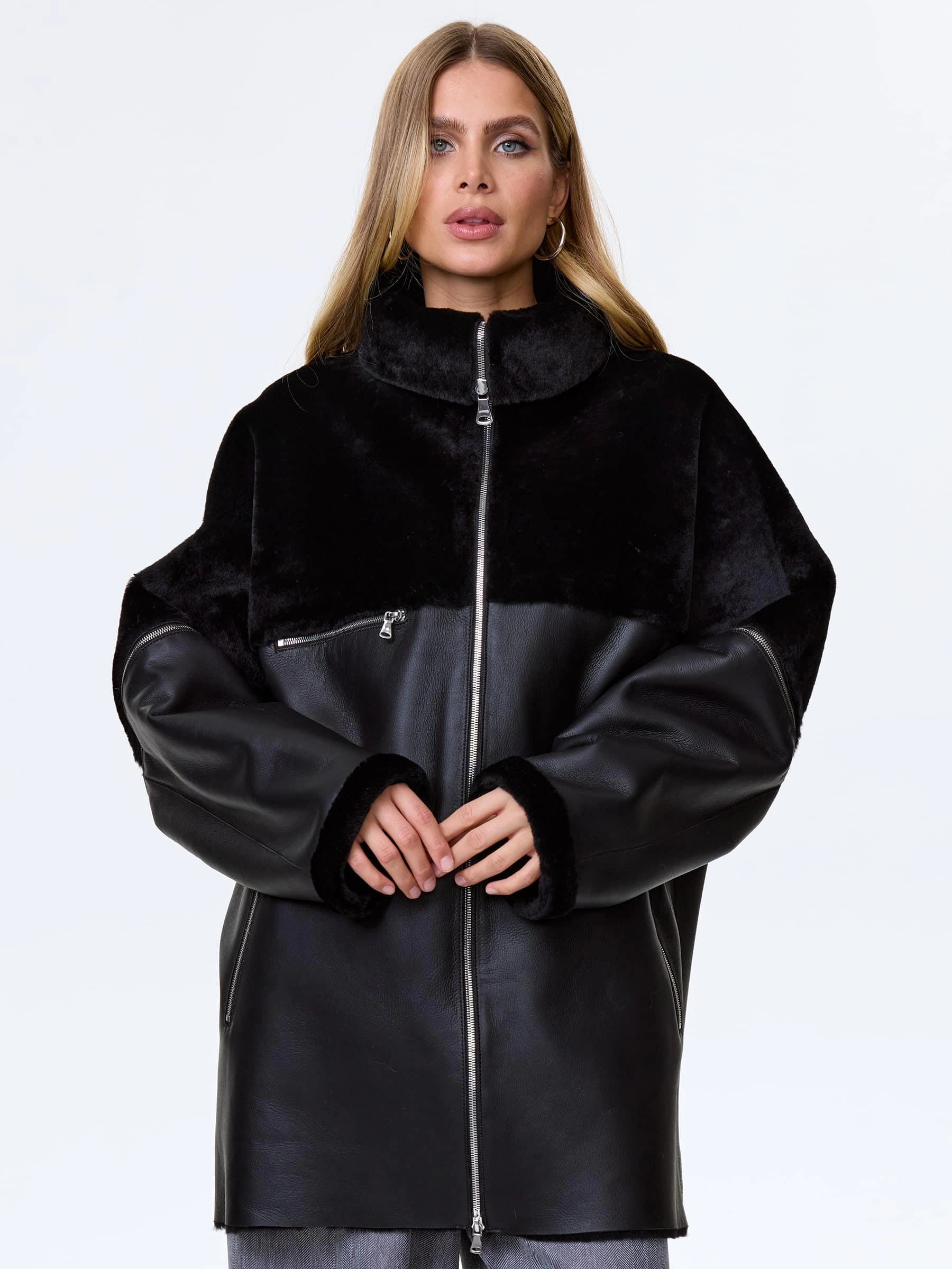 Товар молодежная дубленка оверсайз для женщин премиум класса 2051, черная, размер 48, артикул 64160 выполнен из овчина "мерино" с застежкой молния. Рассчитан на сезон: осень-зима. Длина изделия 80 см, силуэт свободный.