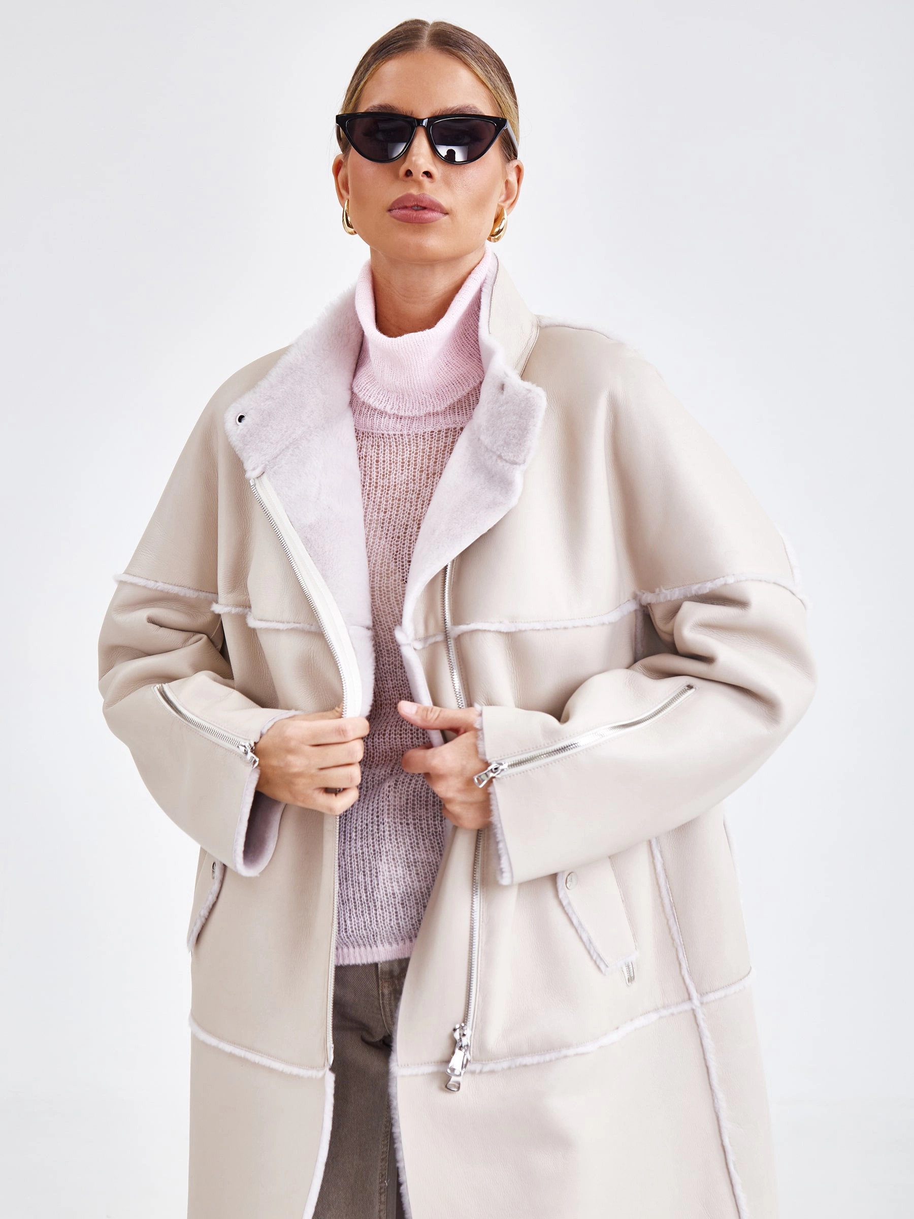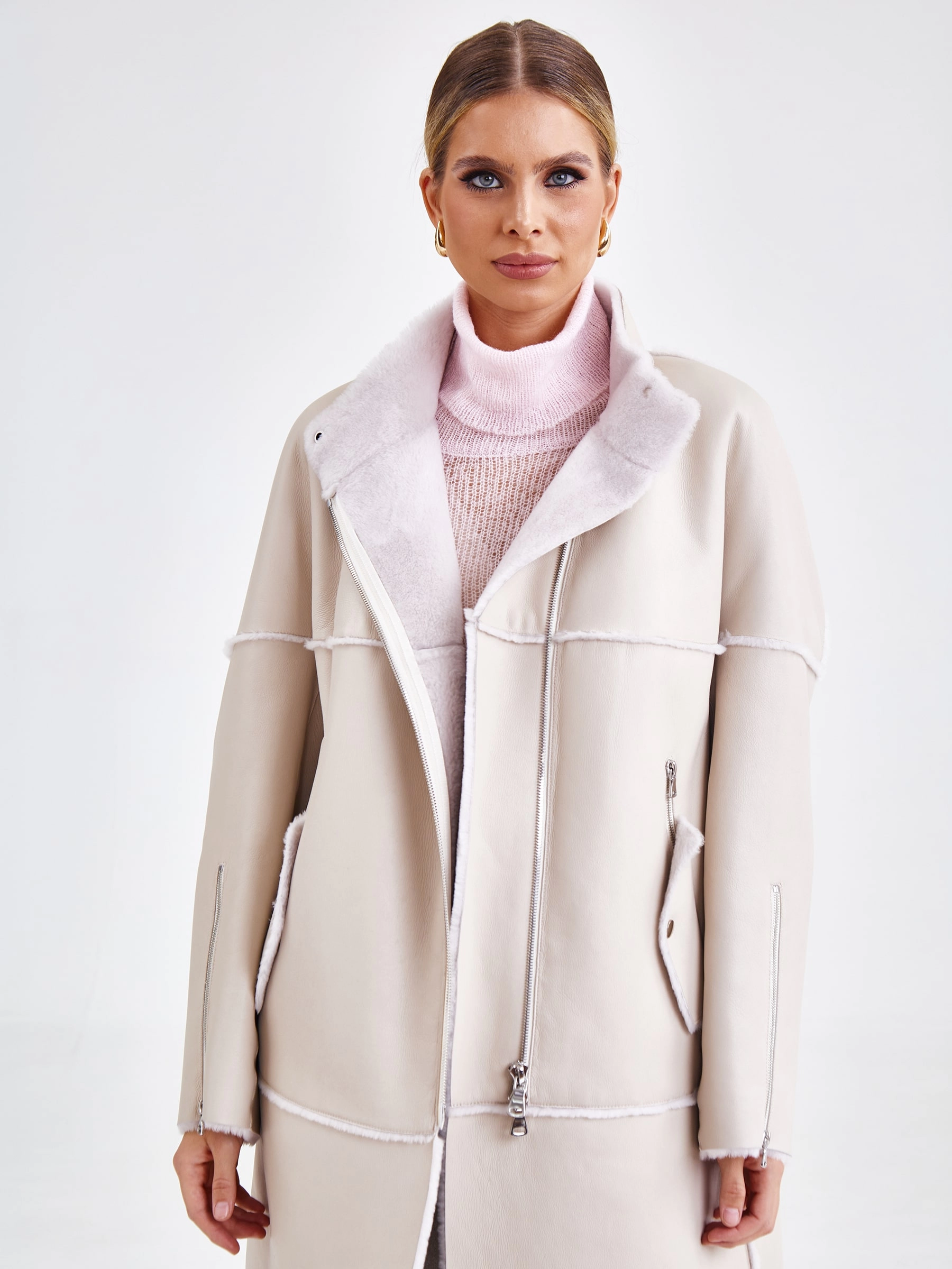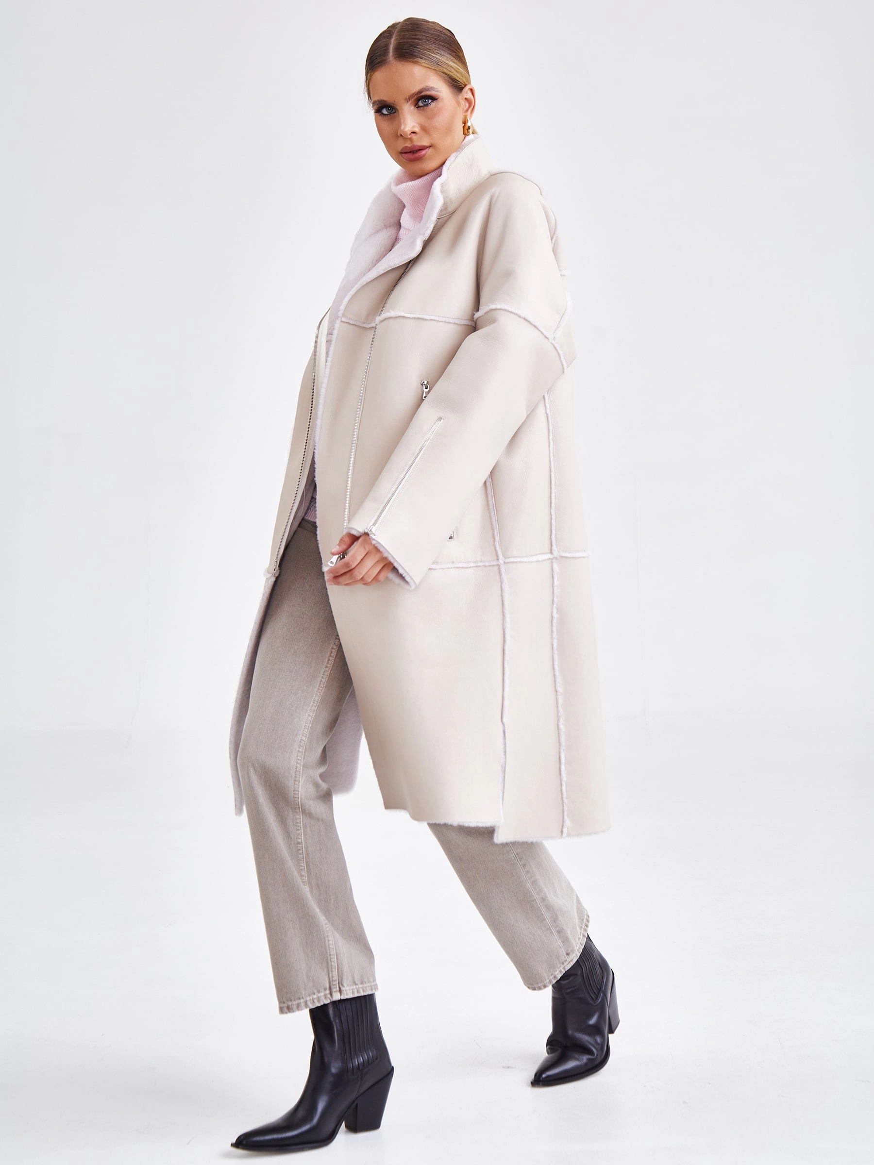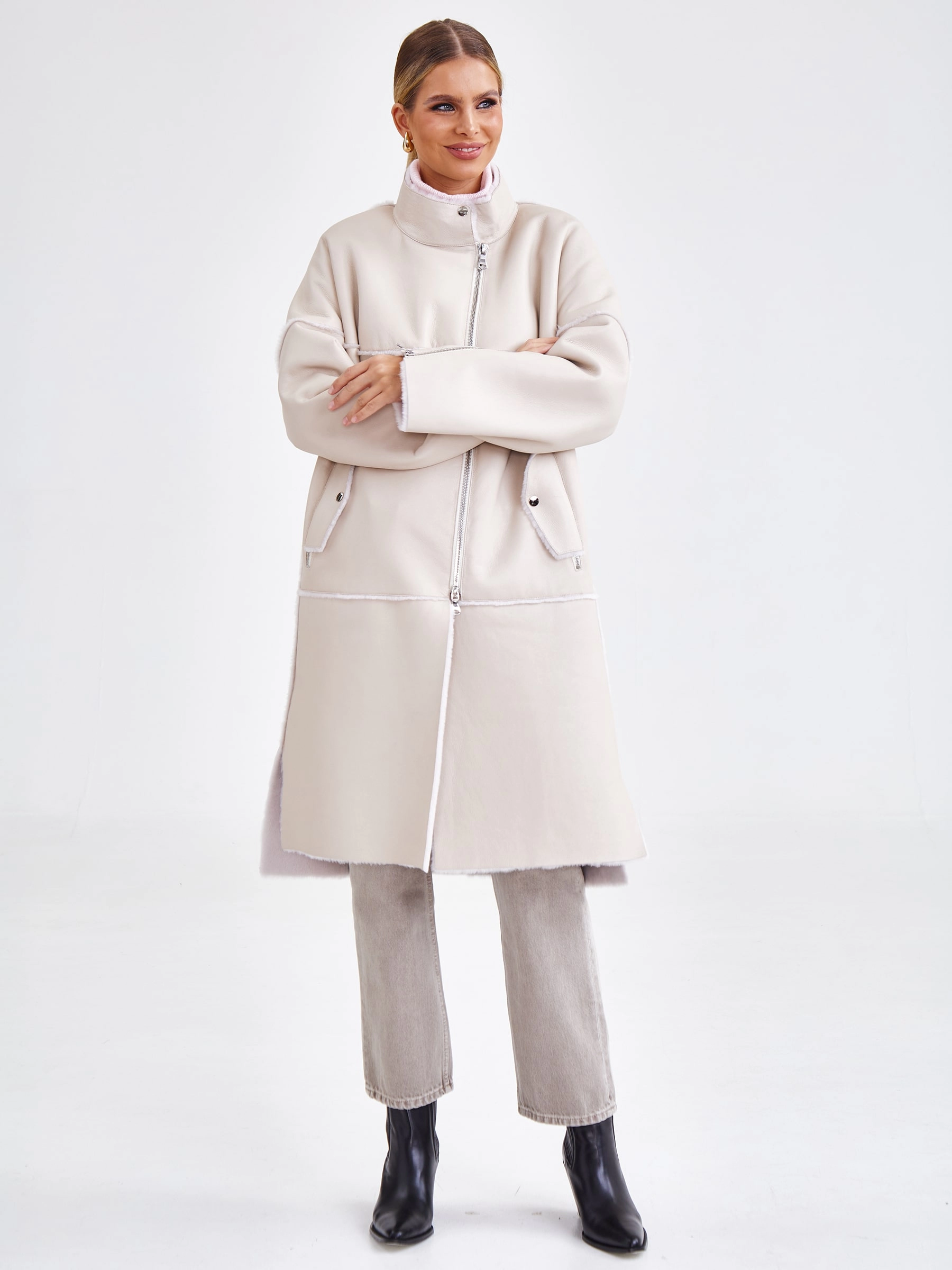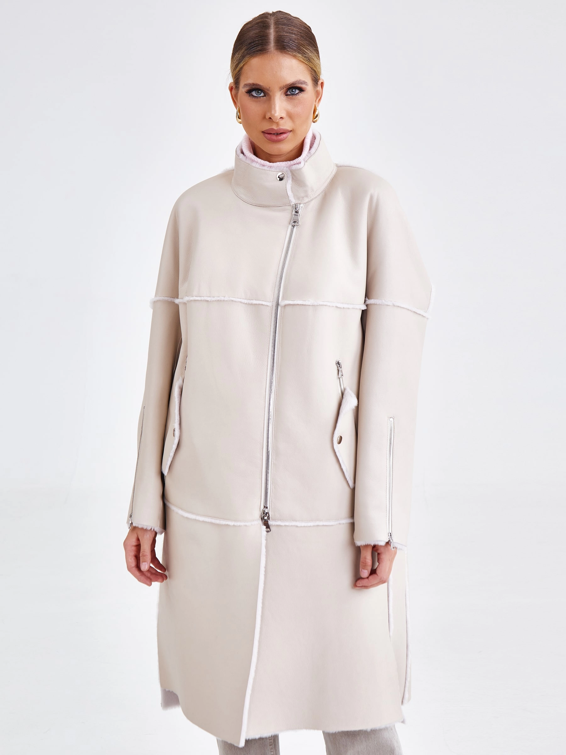 Товар молодежное женское пальто из натуральной овчины премиум класса 2029, бежевое, размер 54, артикул 63920 выполнен из овчина "мерино" с застежкой молния. Рассчитан на сезон: осень-зима. Длина изделия 105 см, силуэт прямой.