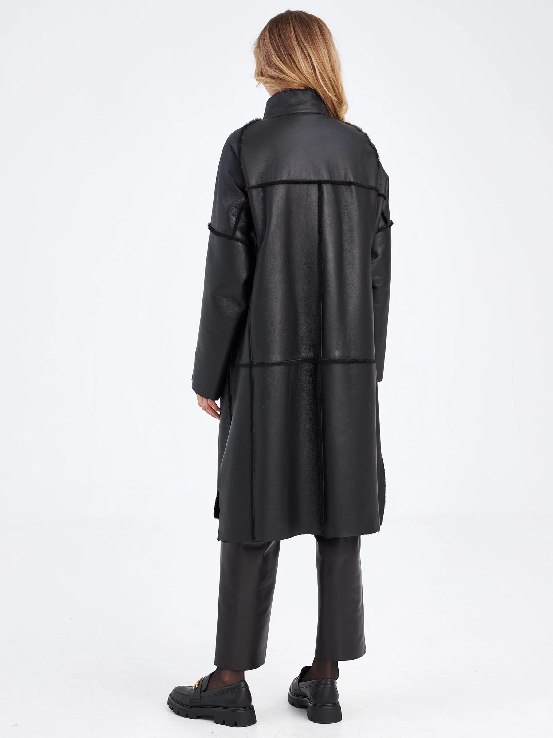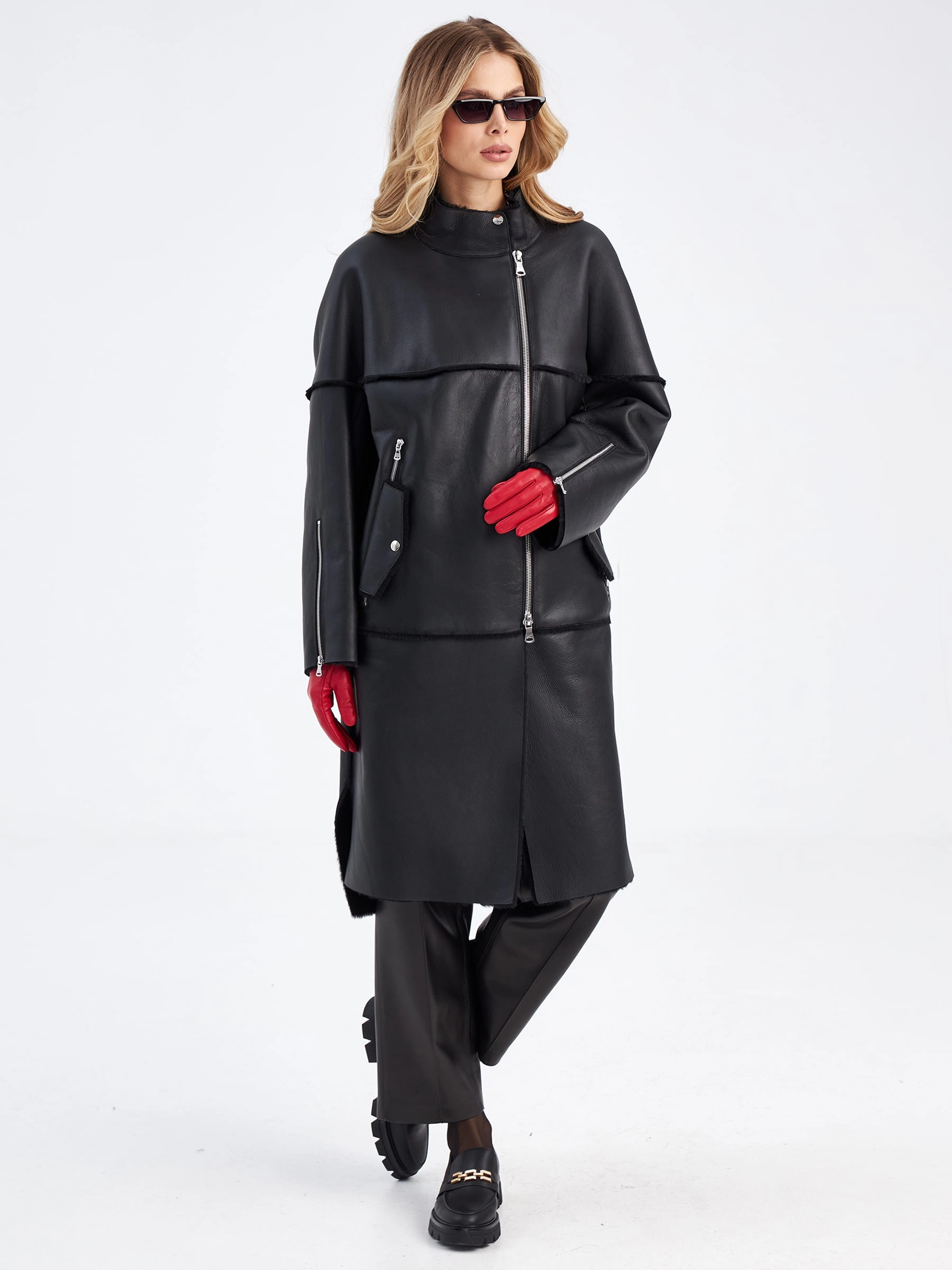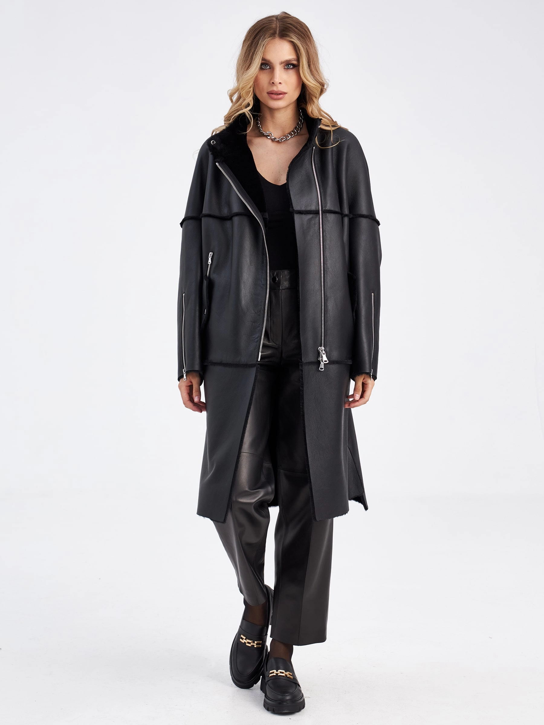 Товар молодежное женское пальто из натуральной овчины премиум класса 2029, черное, размер 52, артикул 63910 выполнен из овчина "мерино" с застежкой молния. Рассчитан на сезон: осень-зима. Длина изделия 105 см, силуэт прямой.
