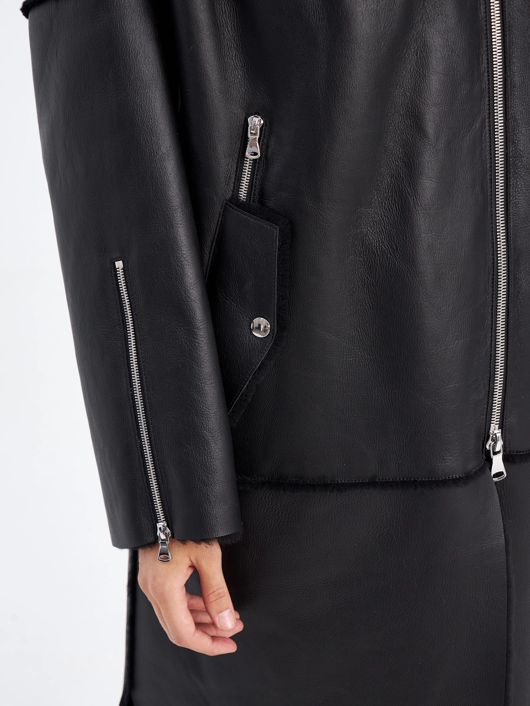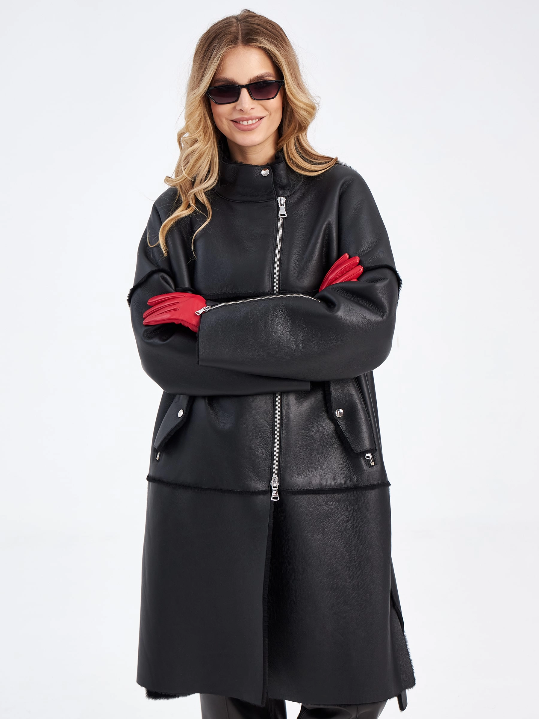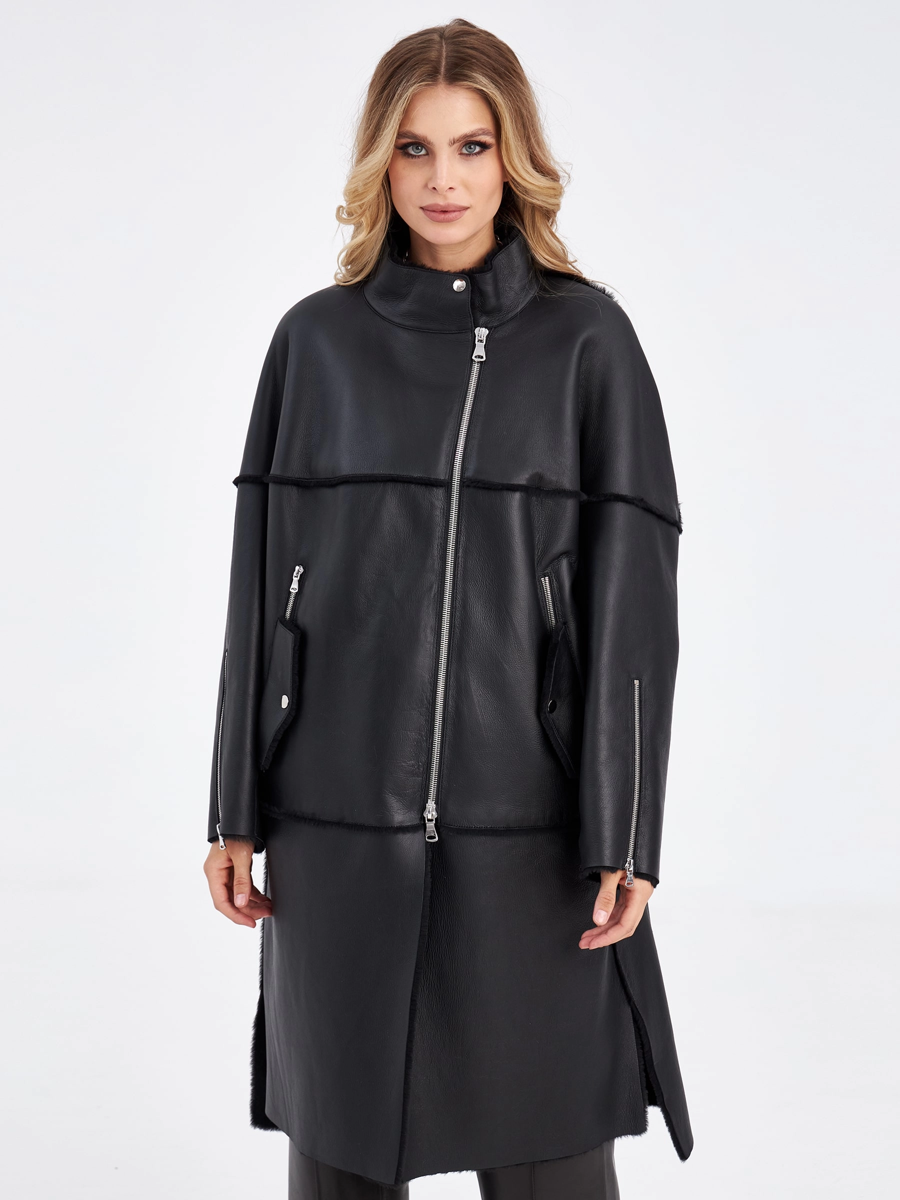 Молодежное пальто в черном цвете выполнена из мягкой меховой овчины и не оставит равнодушной ни одну модницу. Стиль и комфорт этой модели говорят сами за себя. Свободный крой. Воротник - стойка обеспечит защиту от ветра. Широкий рукав со спущеной линией плеч, глубокие разрезы по бокам. Дополнением к модели послужили молнии на рукавах и карманах в тандеме с клапанами на кнопках.
