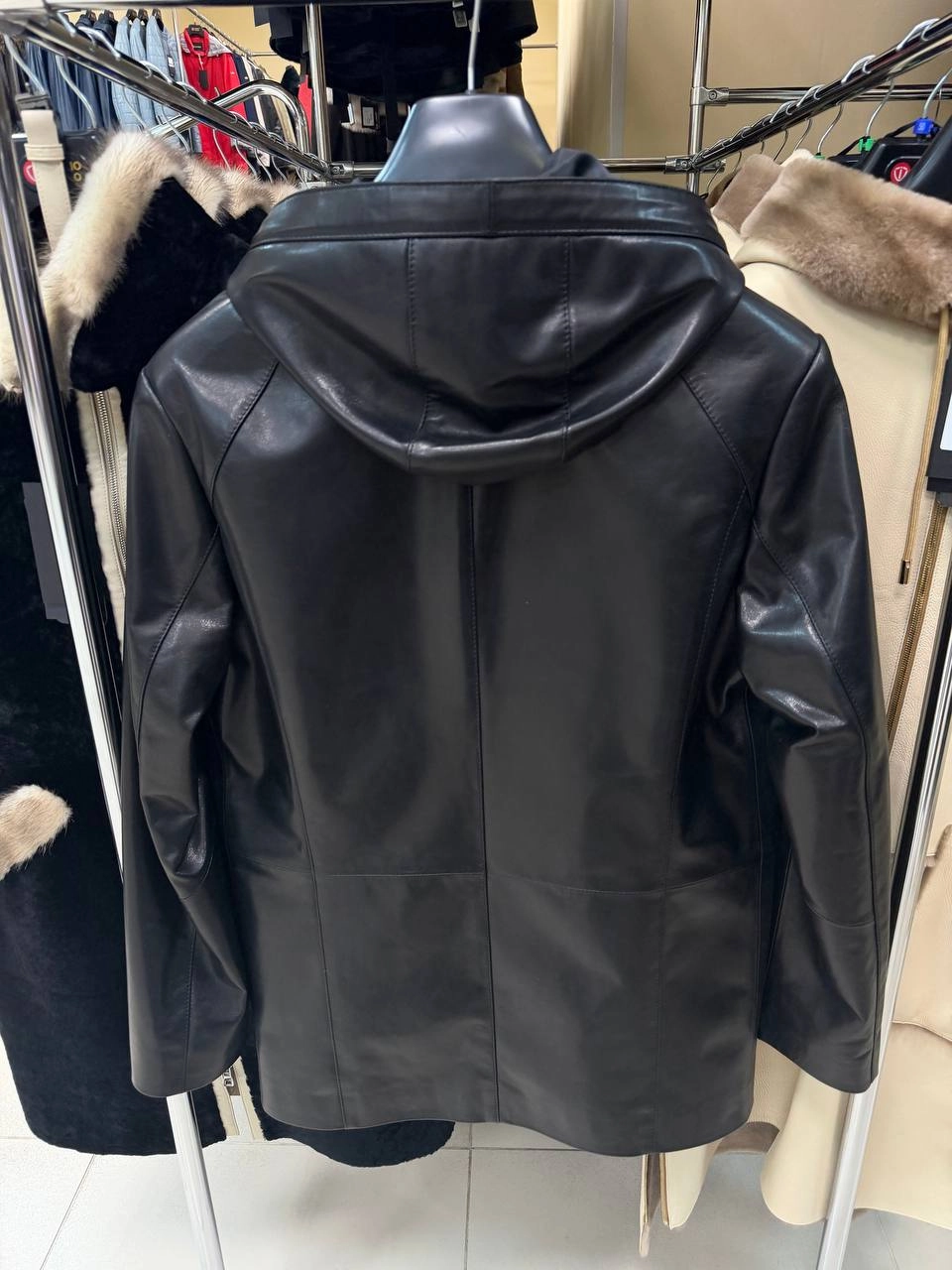 Мужская черная кожаная куртка с капюшоном премиум класса 552, размер 48, артикул 29840