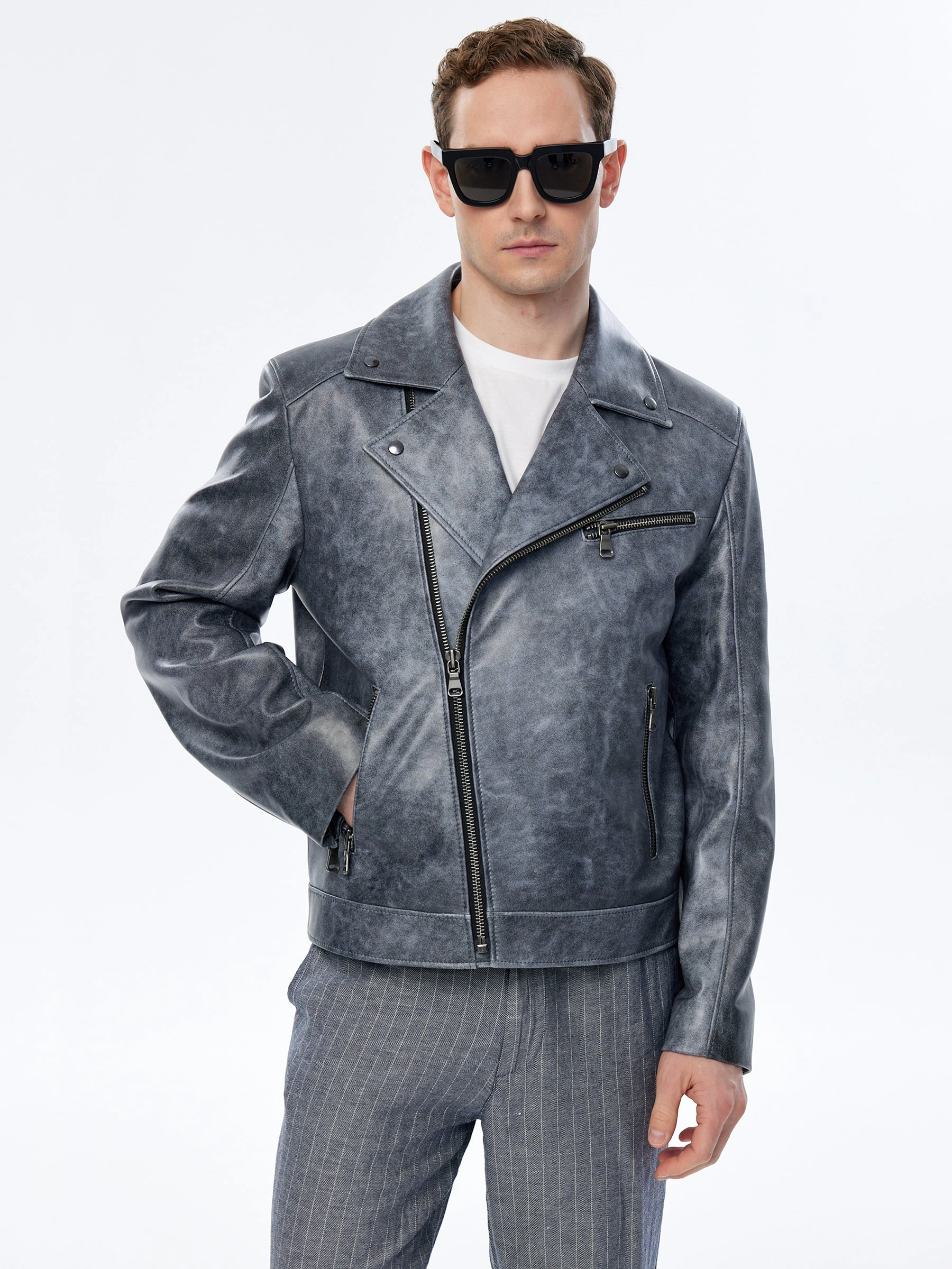 Мужская кожаная куртка косуха премиум класса 560, серая, размер 48, артикул 29670
