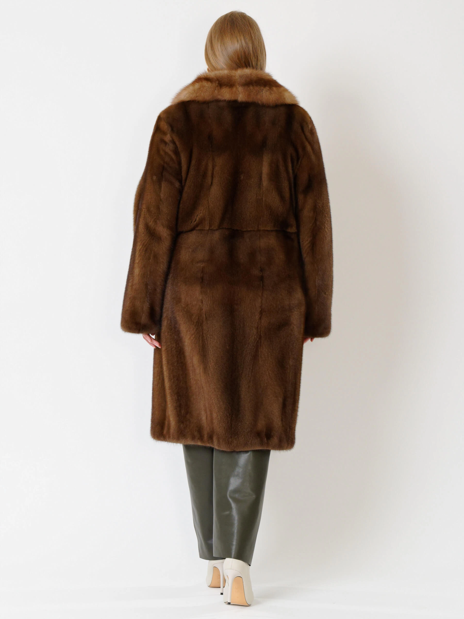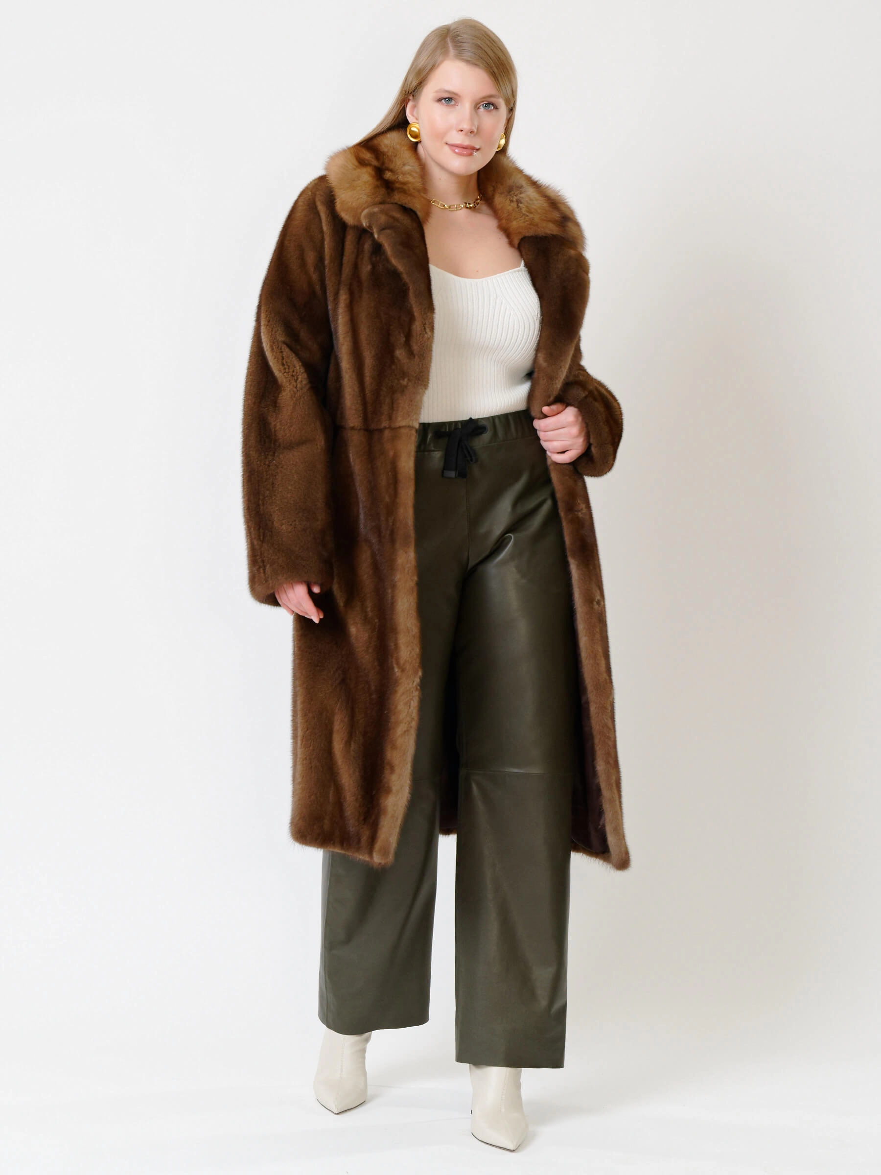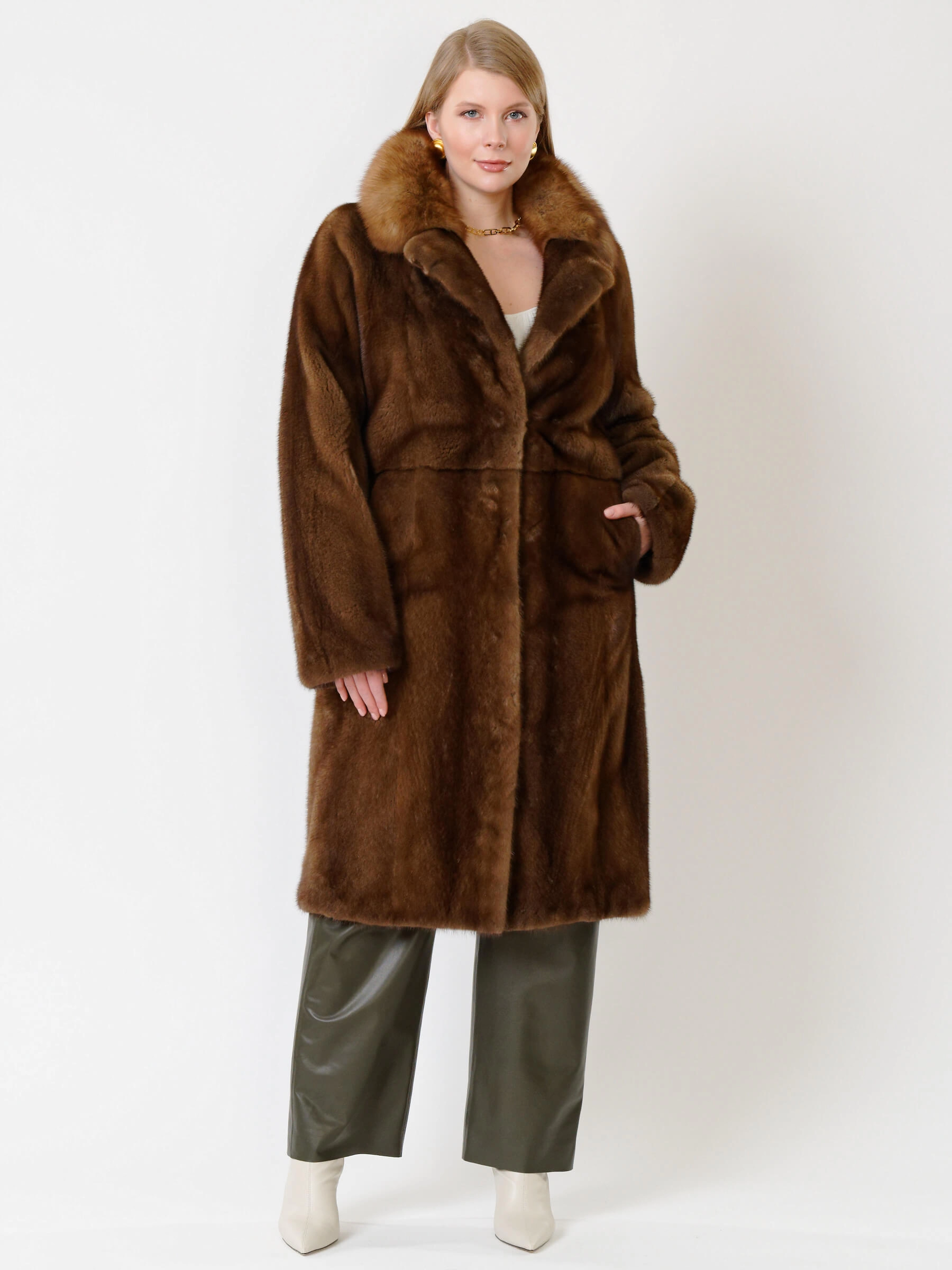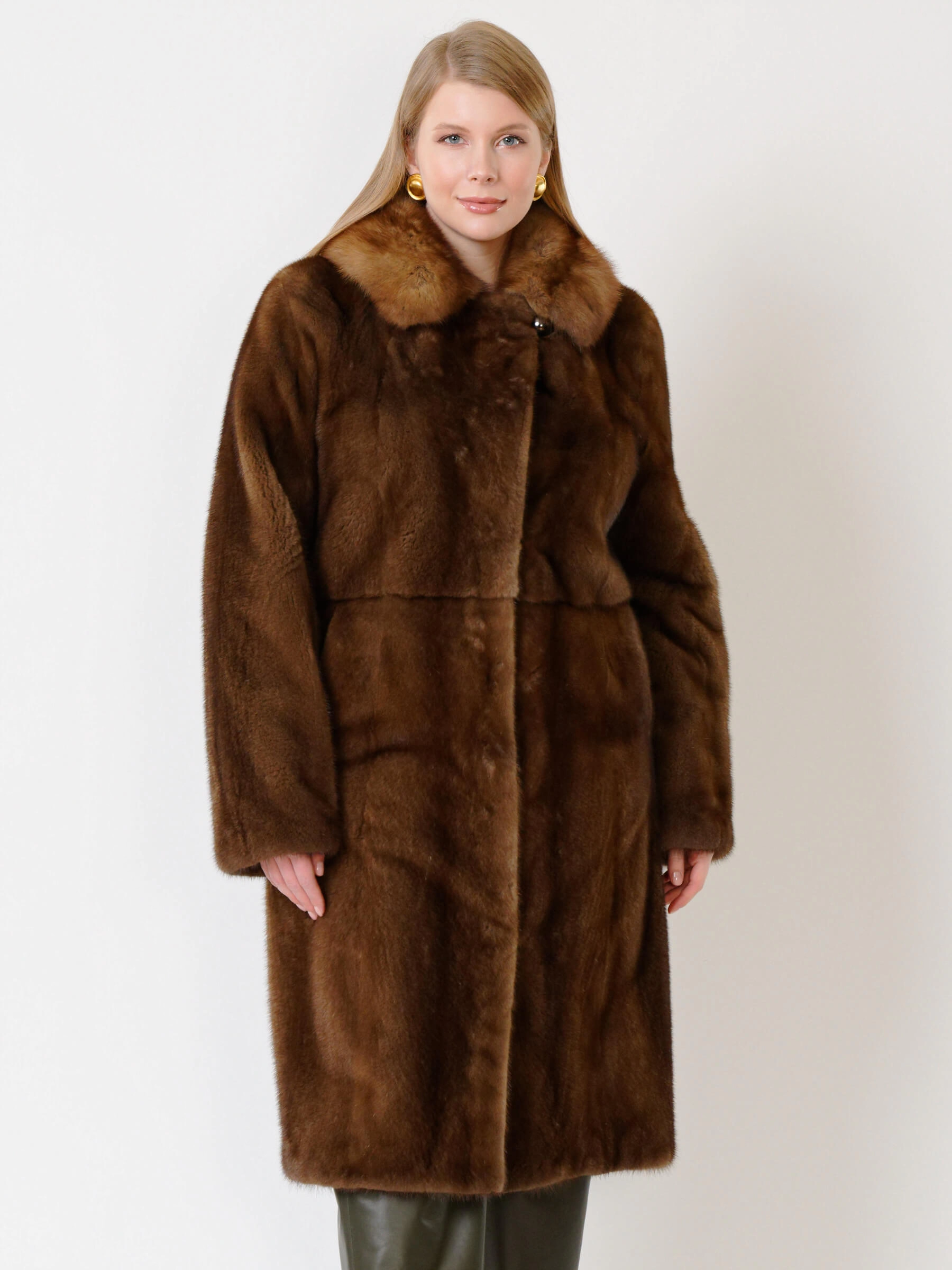 Пальто из меха норки женское 17417(ав), коричневое, размер 48, артикул 31370