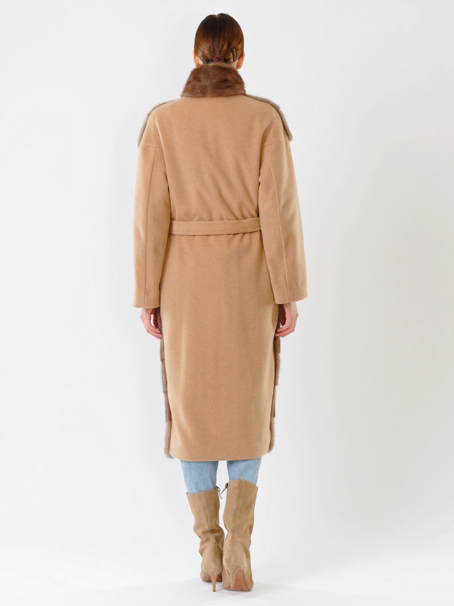 Это пальто — воплощение утончённой роскоши и безупречного силуэта. Модель прямого кроя, сшитая из натуральной некрашеной норки и мягчайшего кашемира, эффектно подчёркивается длинным поясом. Шалевый воротник и рукав реглан обеспечивают идеальную посадку, а лаконичная застёжка на крючках завершает целостный образ. Пальто легко трансформируется из дерзкого вечернего аутфита в элегантный выходной лук, демонстрируя ювелирную работу мастеров и статус авторского дизайна.