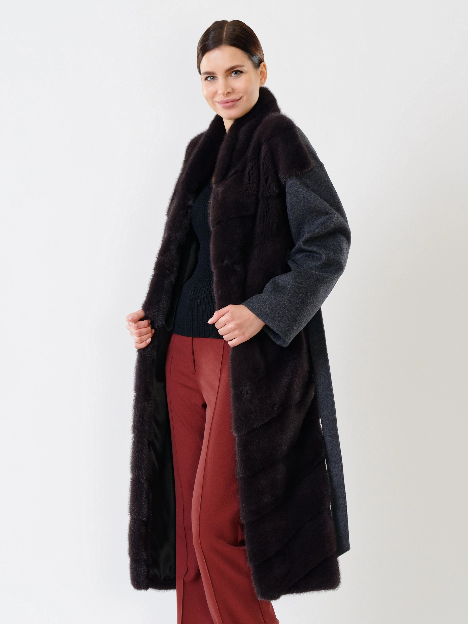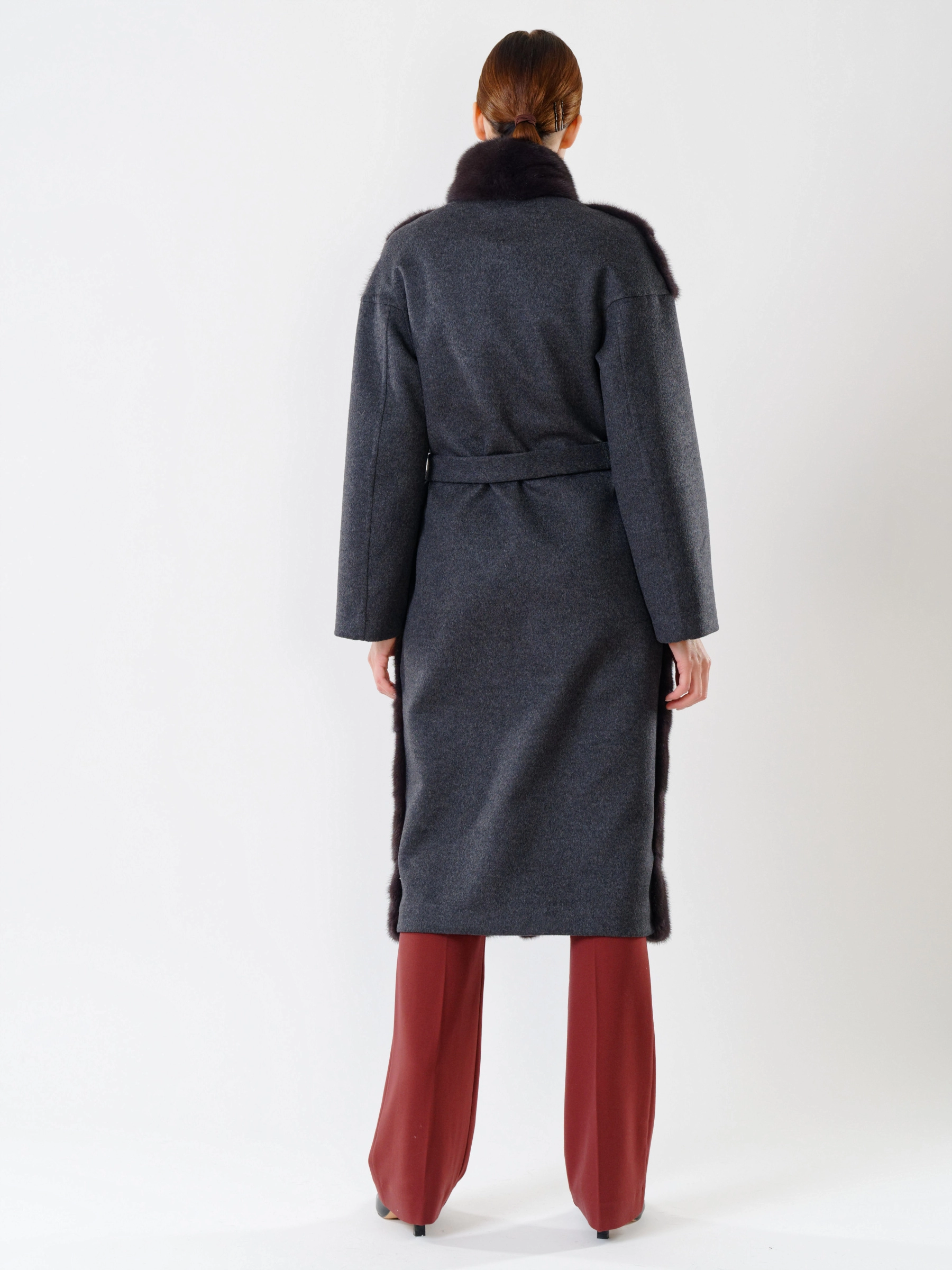 Пальто из меха норки и кашемира женское 19000, серое, размер 44, артикул 32660