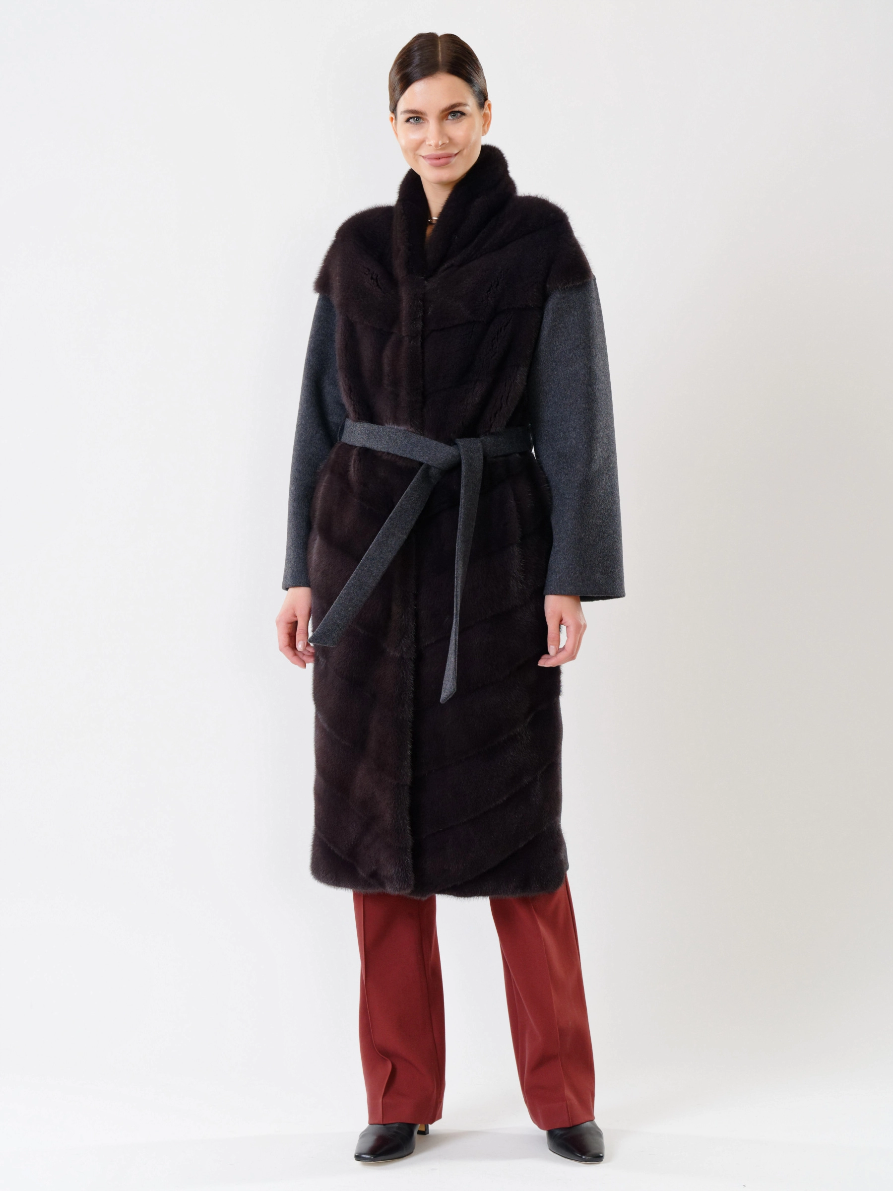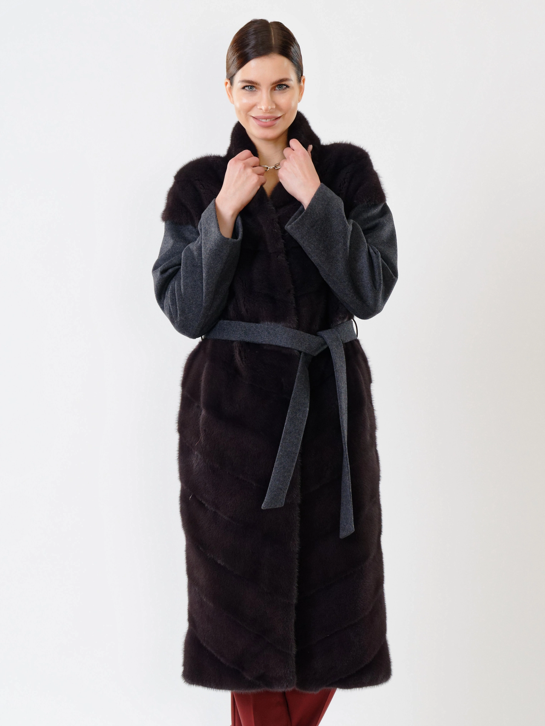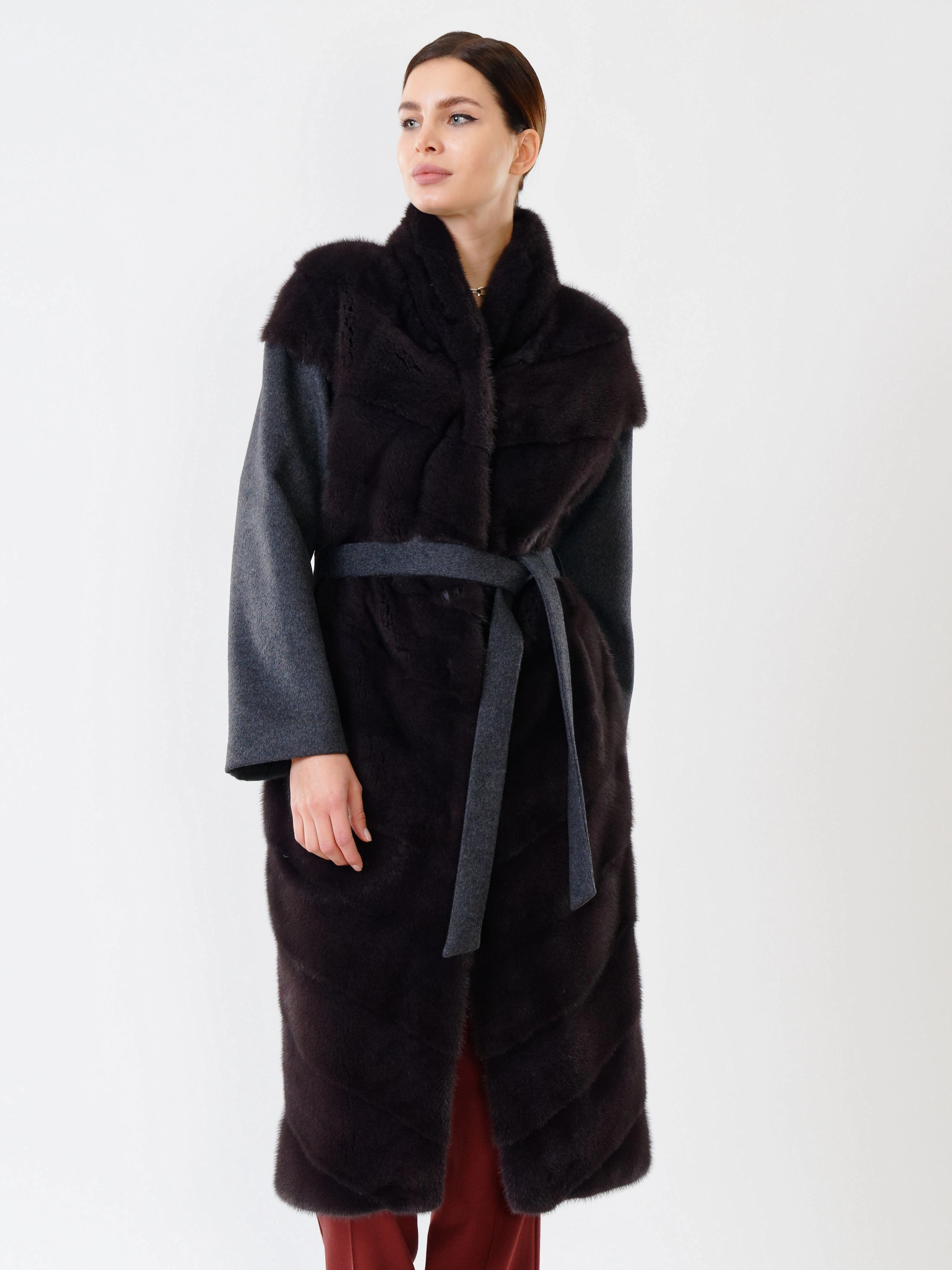 Товар пальто из меха норки и кашемира женское 19000, серое, размер 44, артикул 32660 выполнен из норка некрашенной с застежкой крючки. Рассчитан на сезон: осень-зима. Длина изделия свыше 90 см, силуэт прямой.