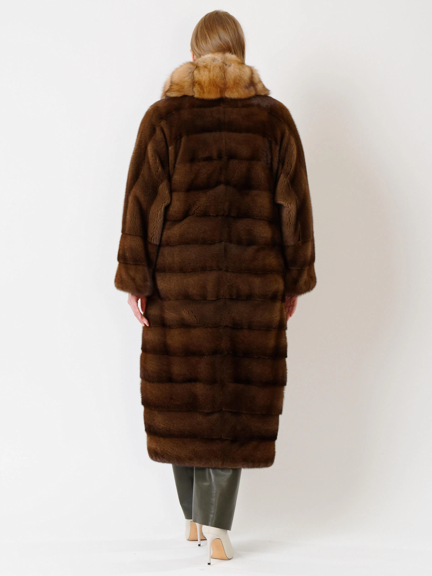Женская норковая шуба с воротником меха соболя 1150(вс), пастельная, размер 44, артикул 33400