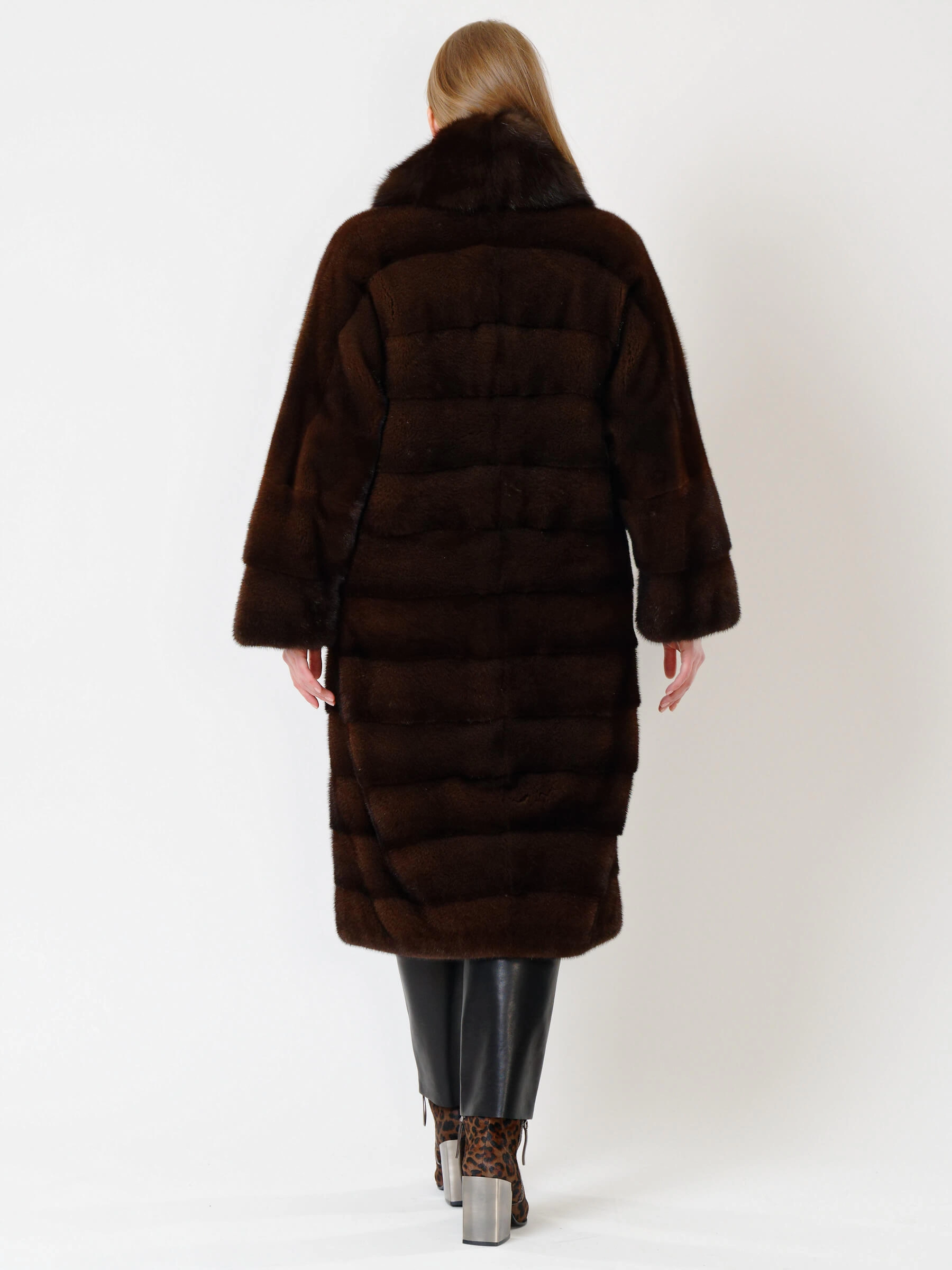 Длинная поперечная женская шуба с воротником из меха соболя 1150(вс), темно-коричневая, размер 48, артикул 32790