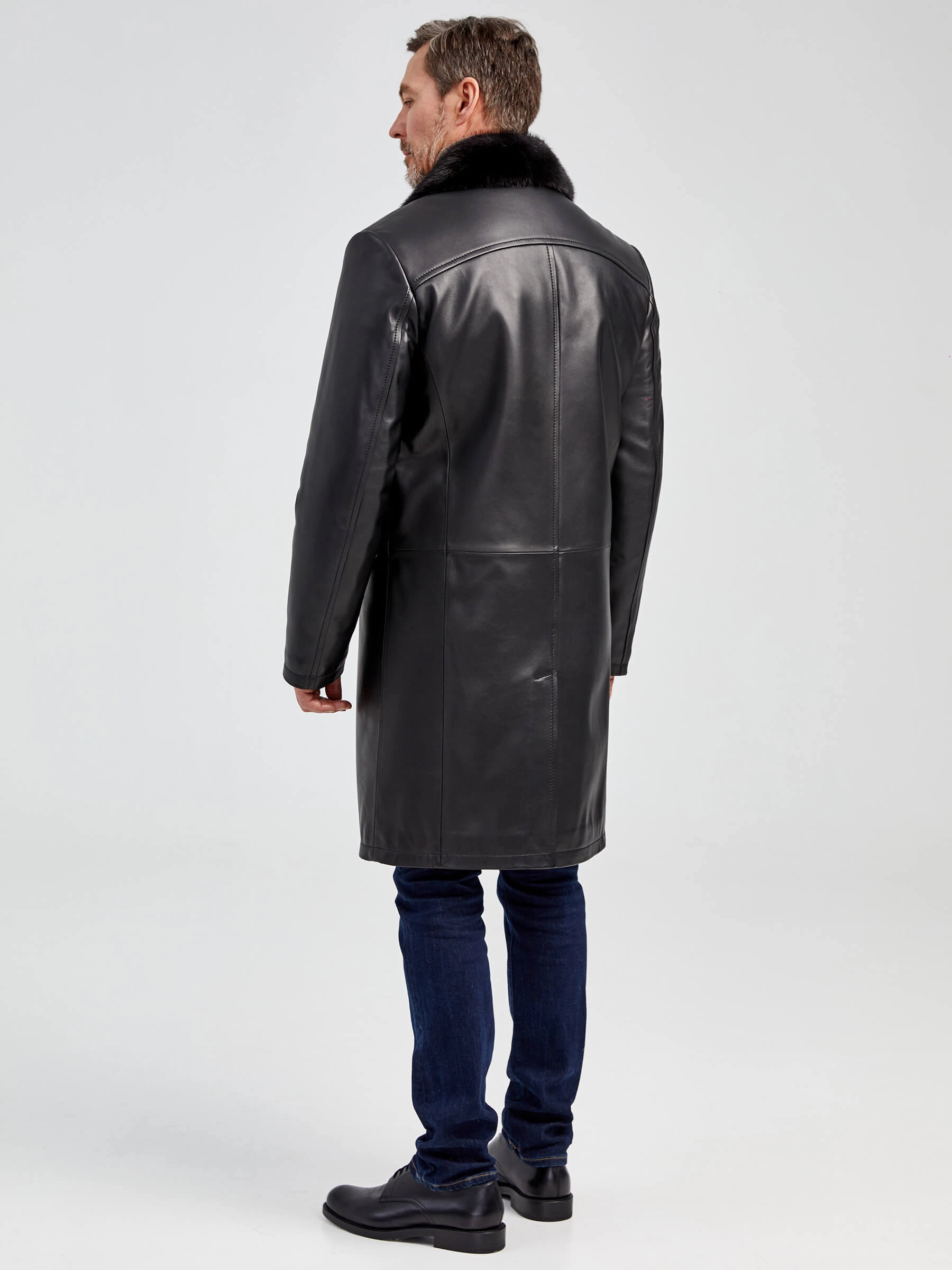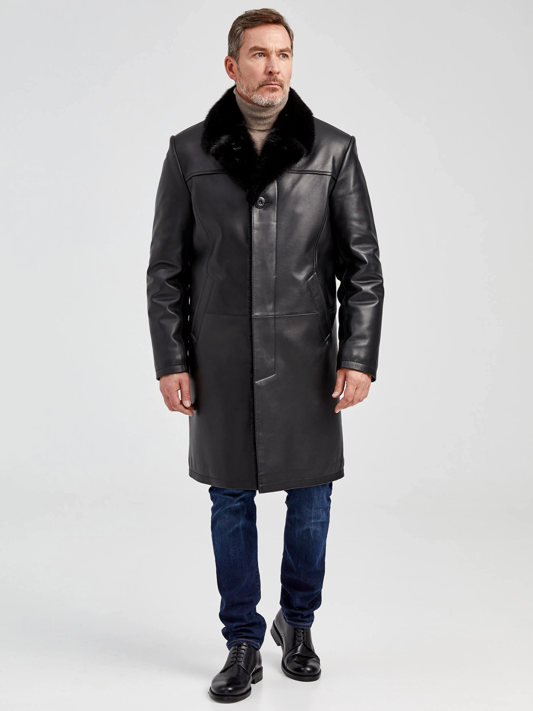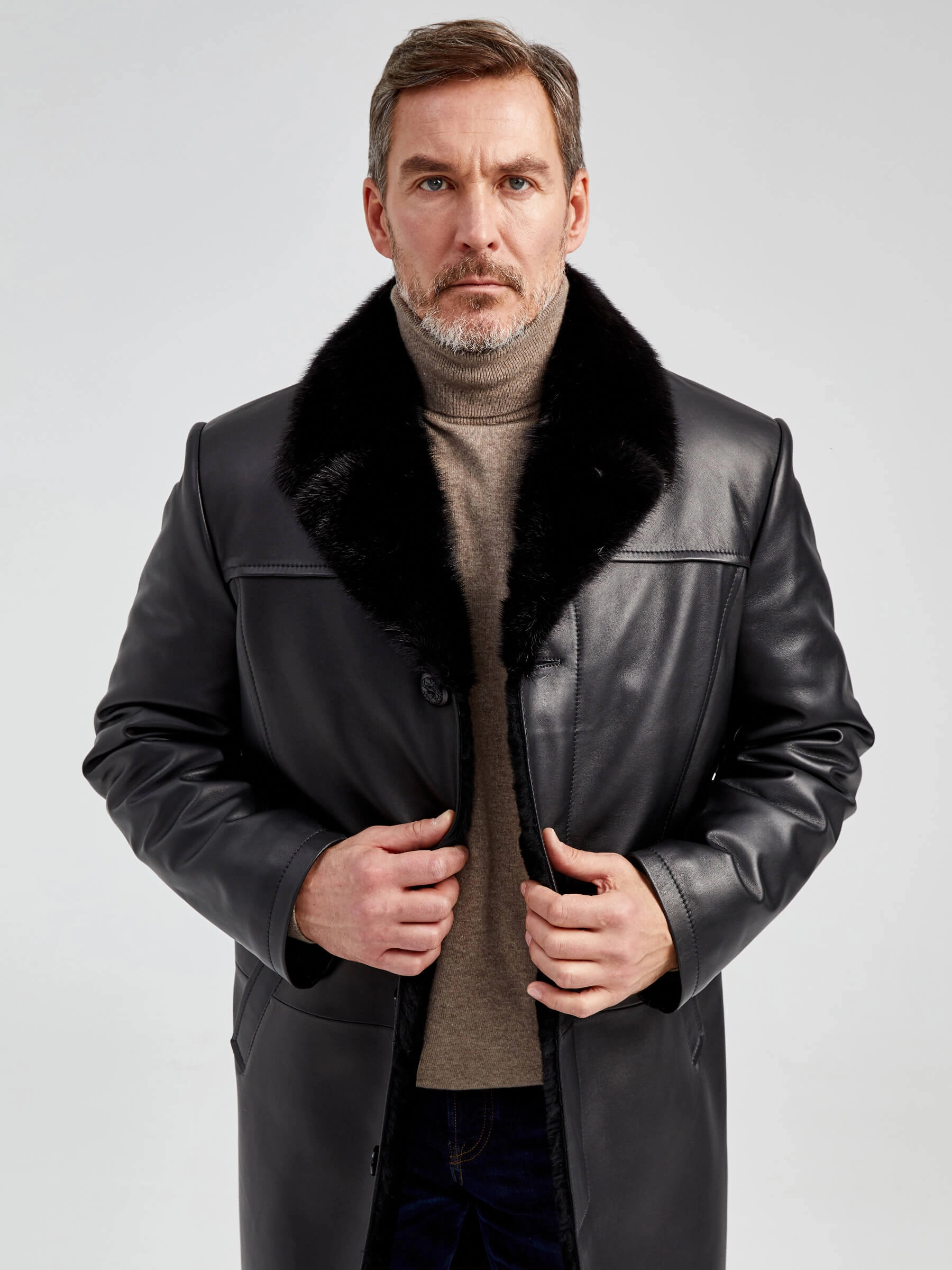 Товар кожаная мужская дубленка с воротником меха норки премиум класса 533мех, черная, размер 50, артикул 40562 выполнен из натуральной кожи с застежкой пуговицы. Рассчитан на сезон: осень-зима. Длина изделия 104 см, силуэт прямой.