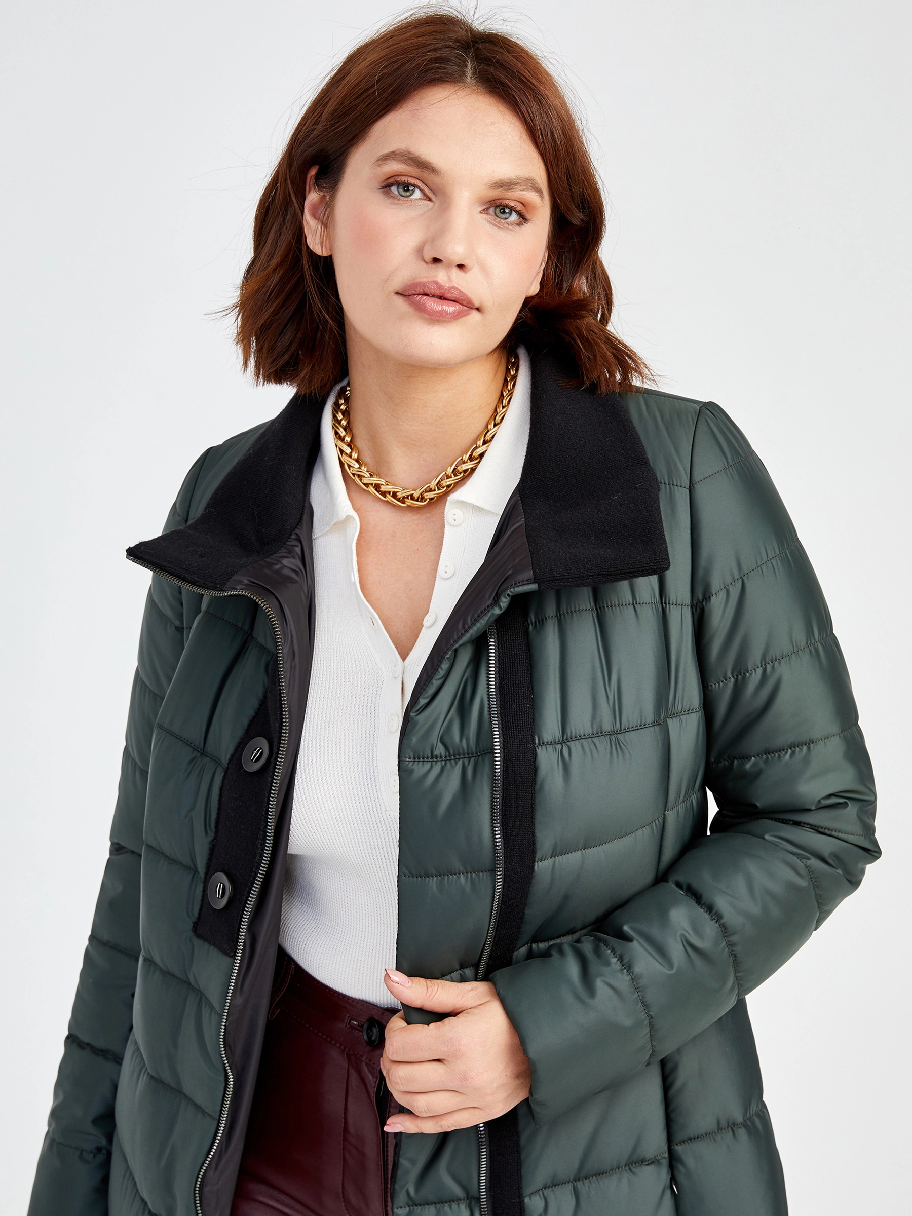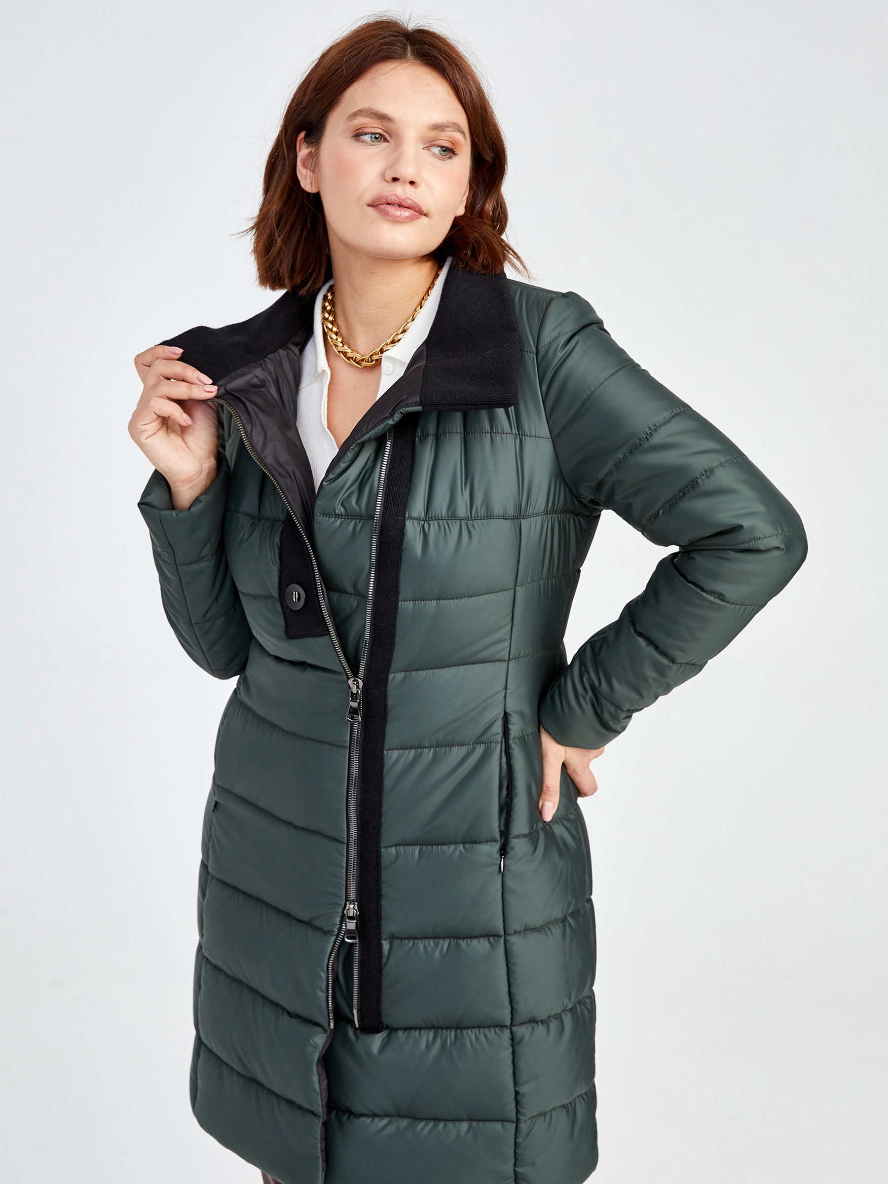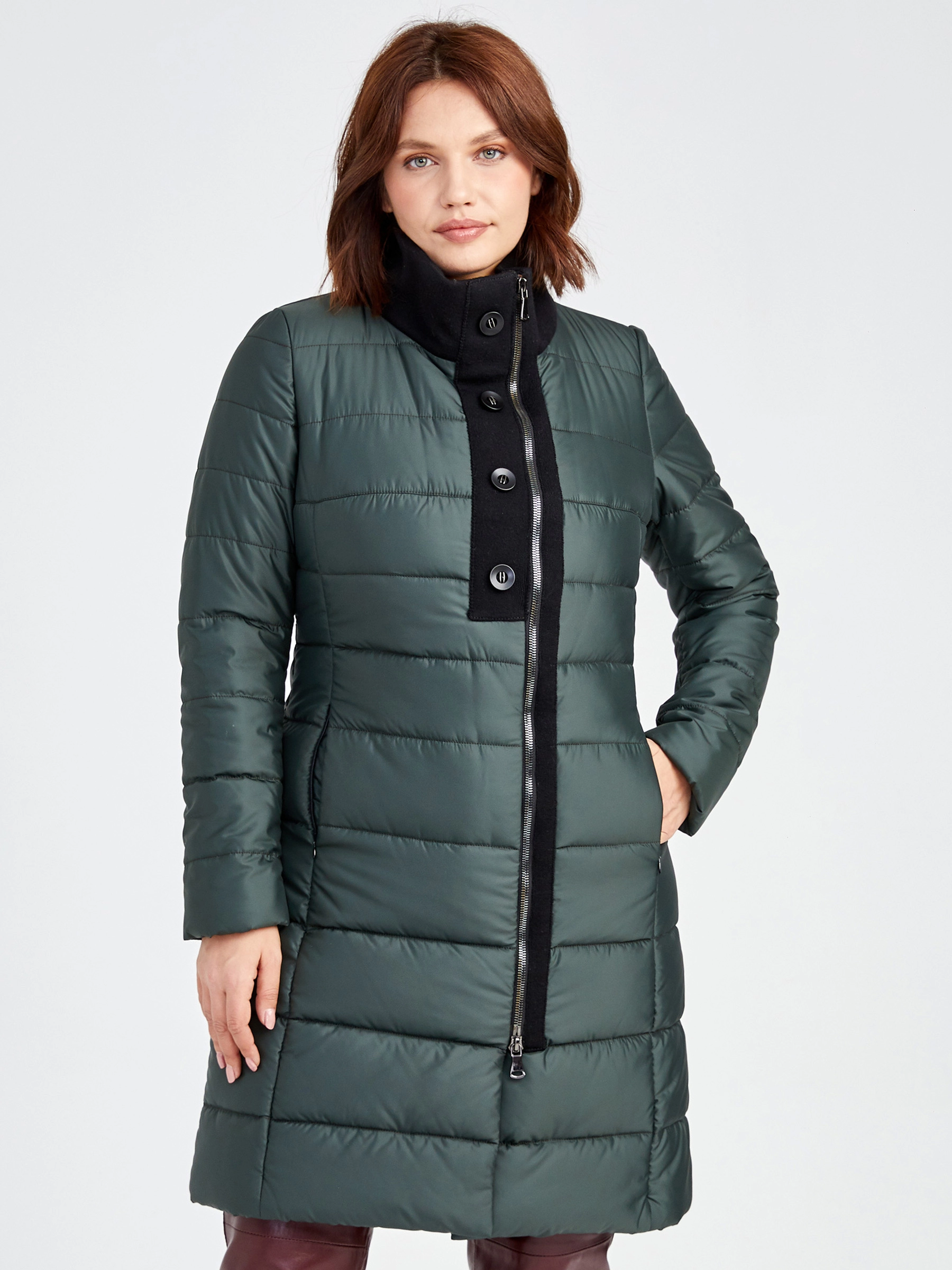 Товар текстильный женский пуховик 701, зеленый, размер 42, артикул 25240 выполнен из текстиль с застежкой молния. Рассчитан на сезон: демисезон. Длина изделия свыше 90 см, силуэт полуприлегающий.