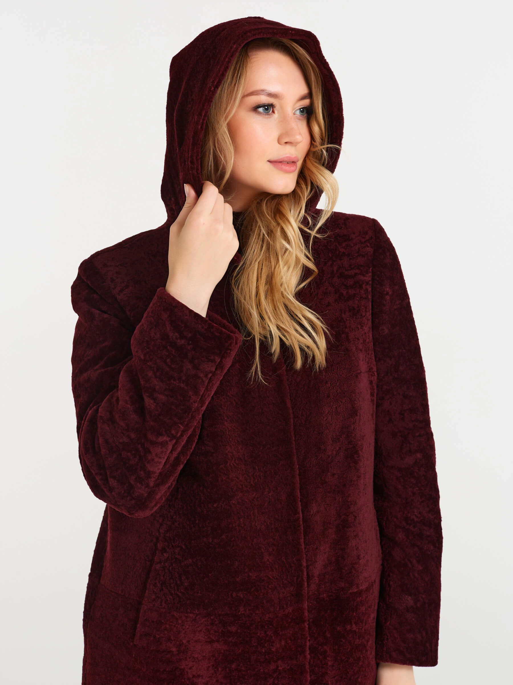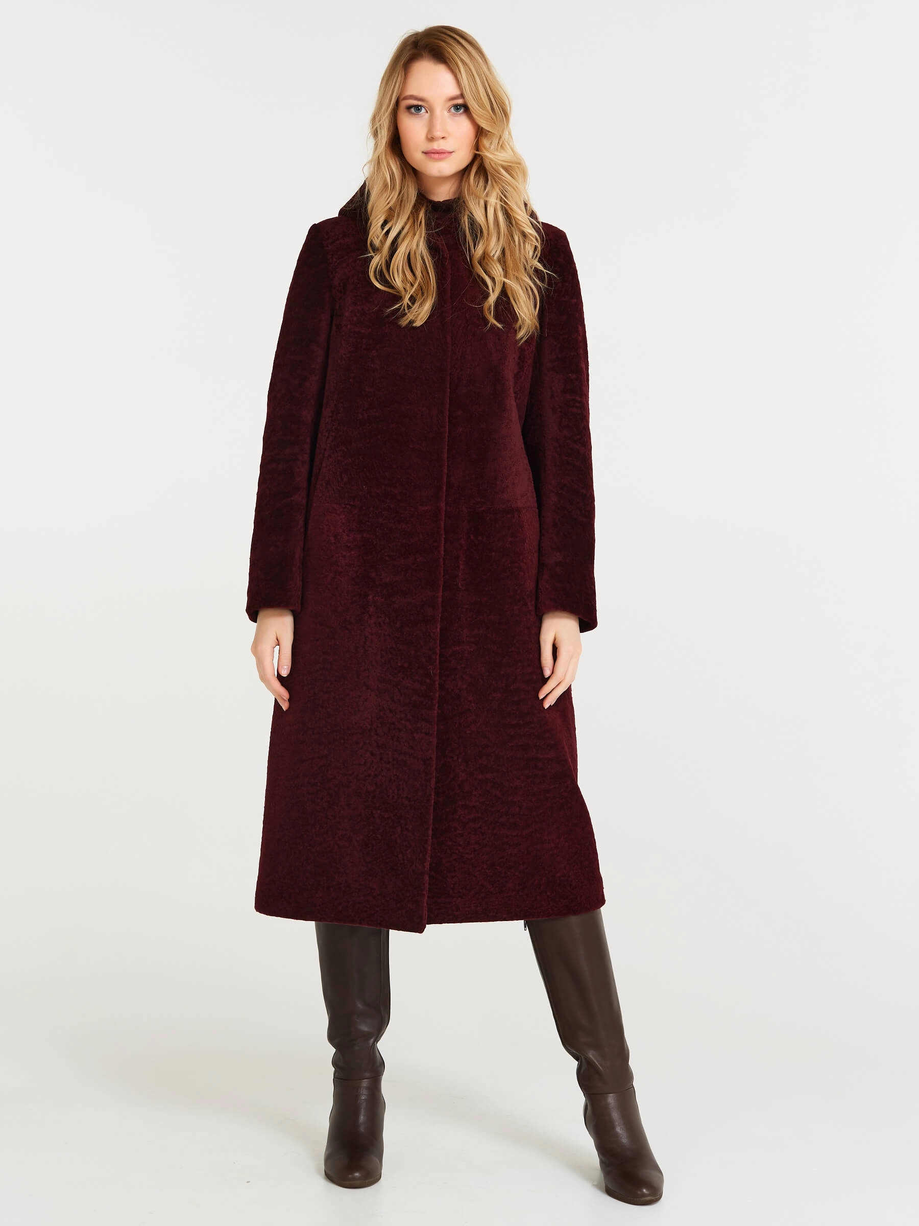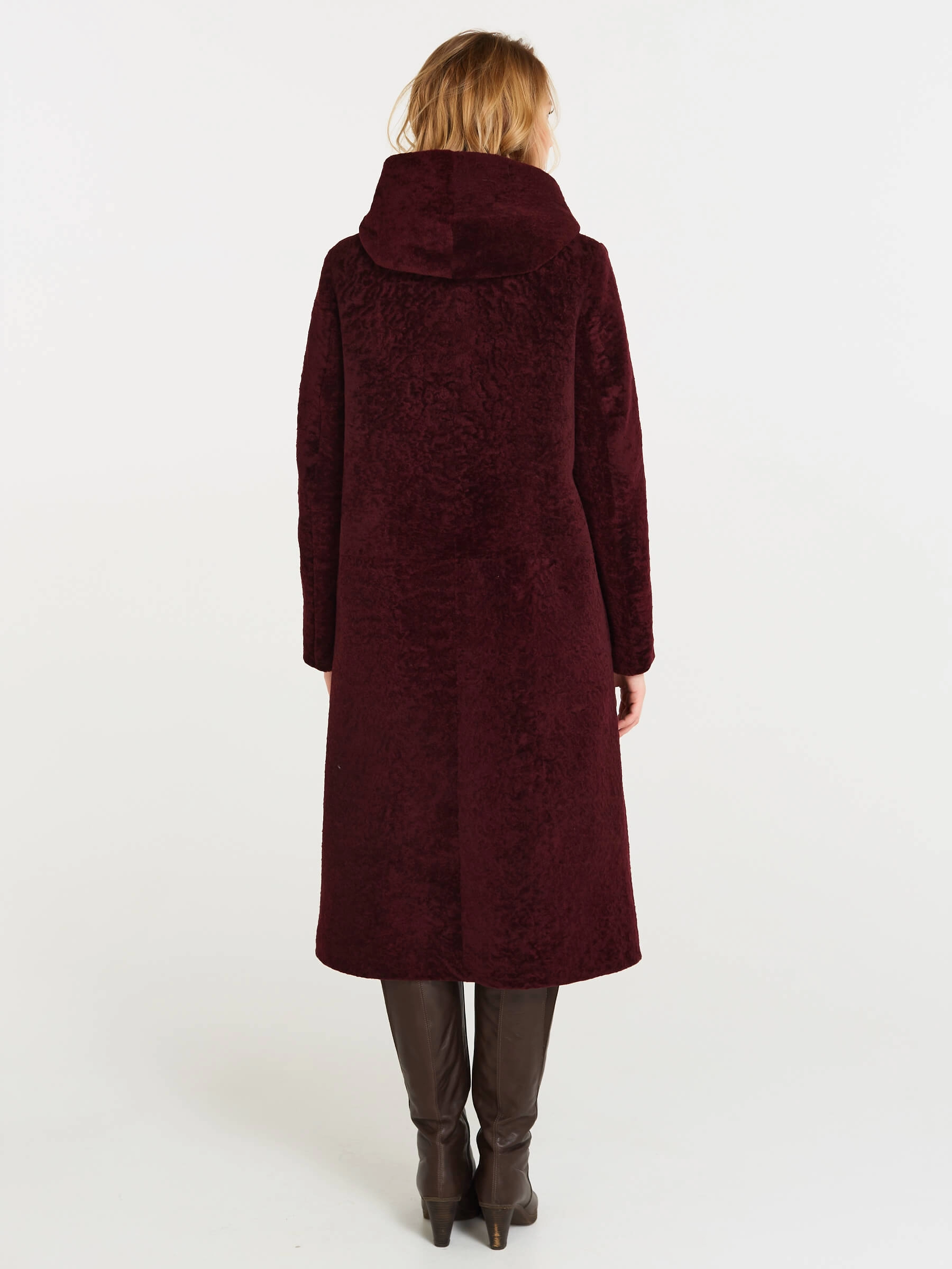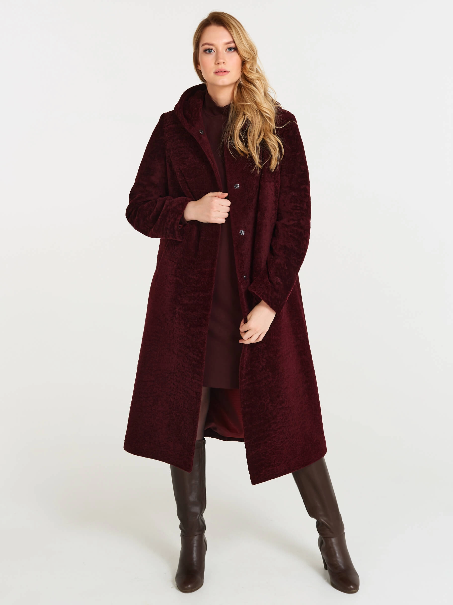 Товар дубленка женская из астрагана с капюшоном 49мех, бордовая, размер 50, артикул 17481 выполнен из астраган с застежкой кнопки. Рассчитан на сезон: осень-зима. Длина изделия 117 см, силуэт прямой.