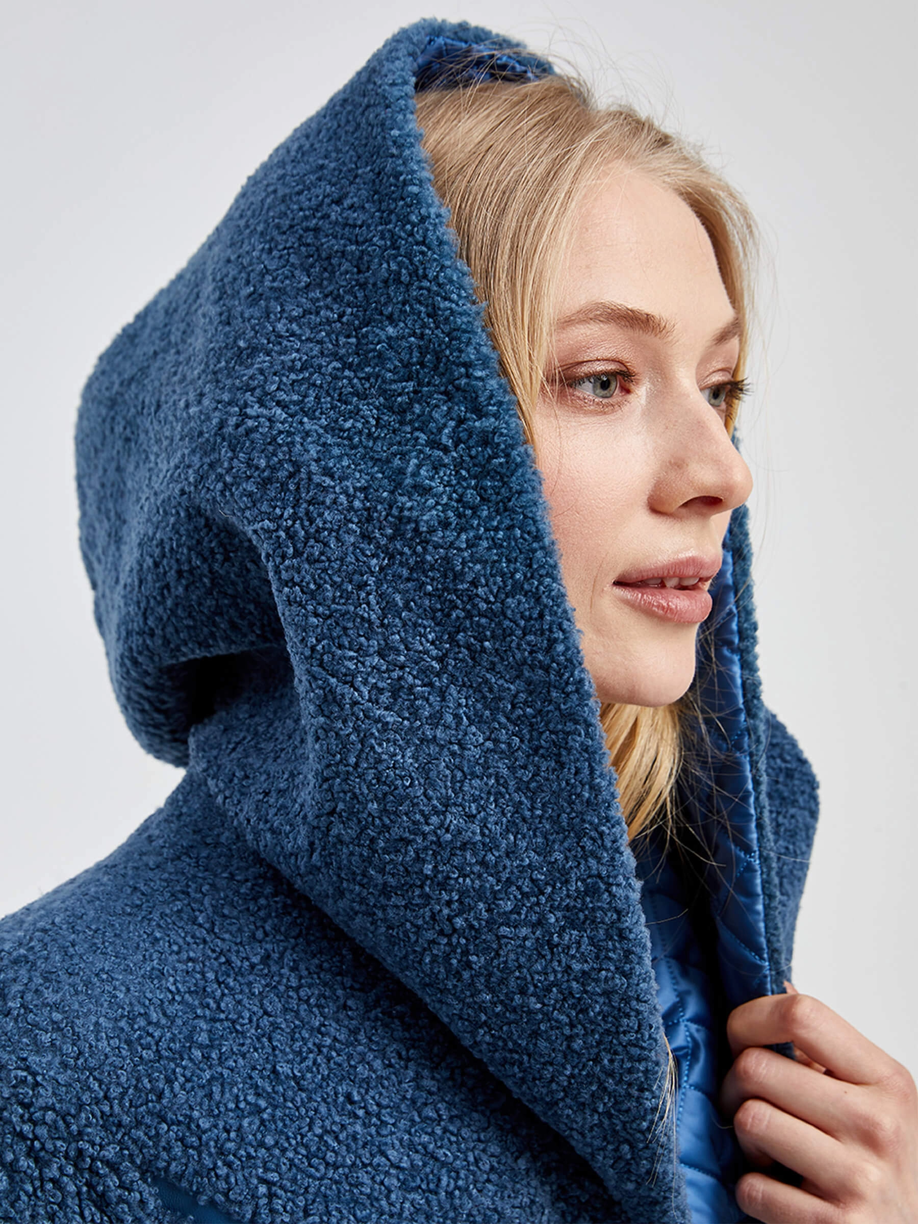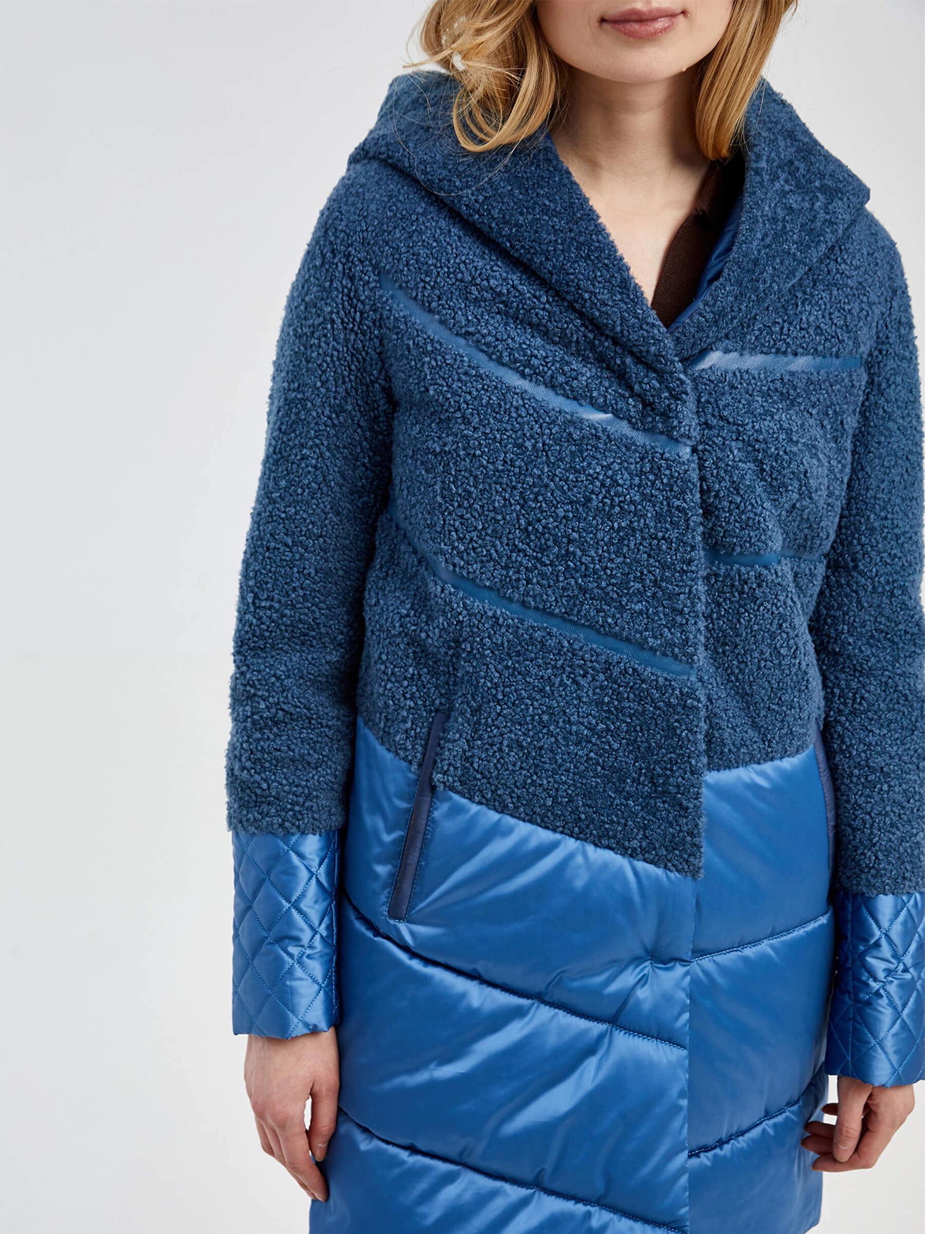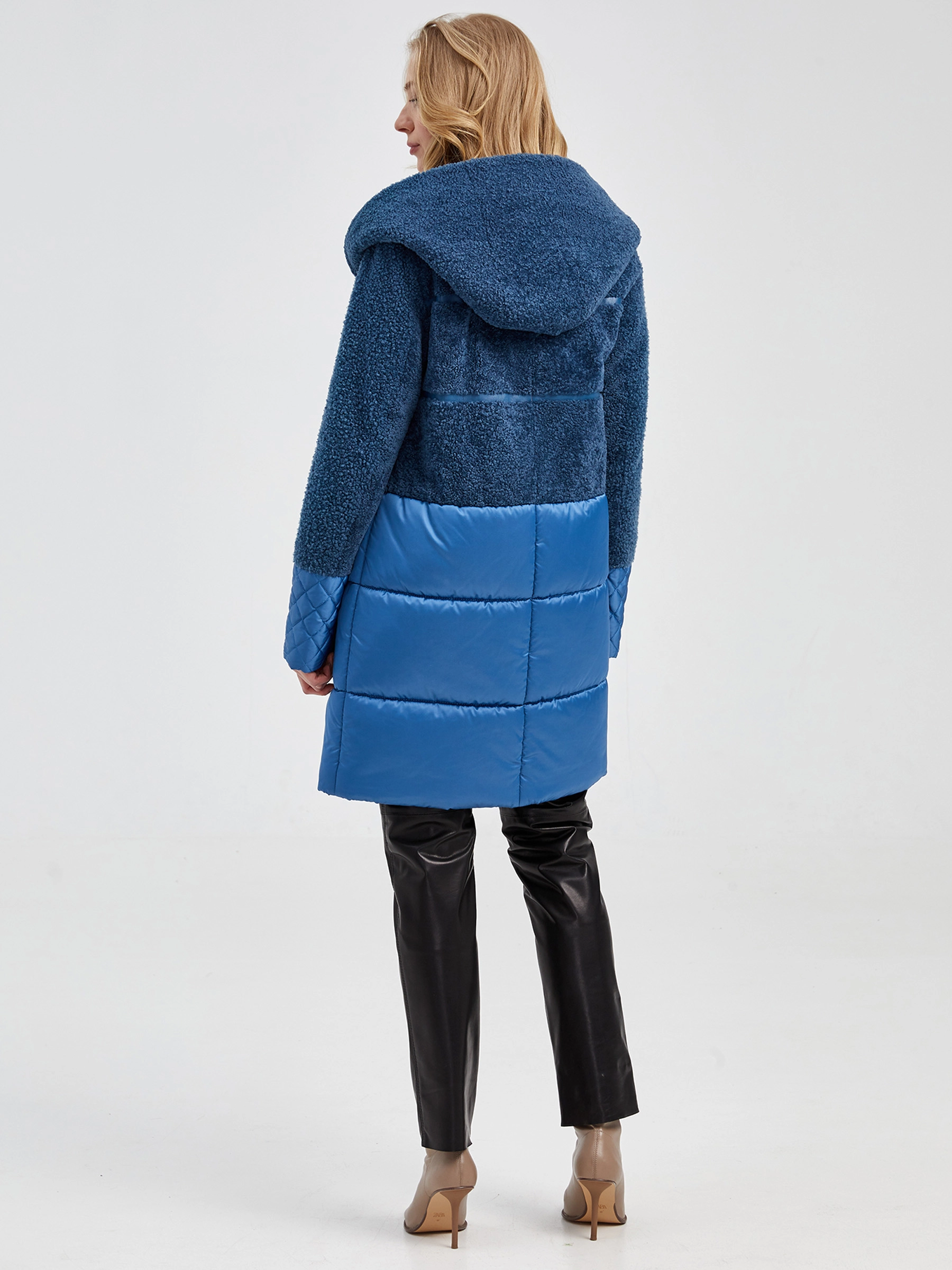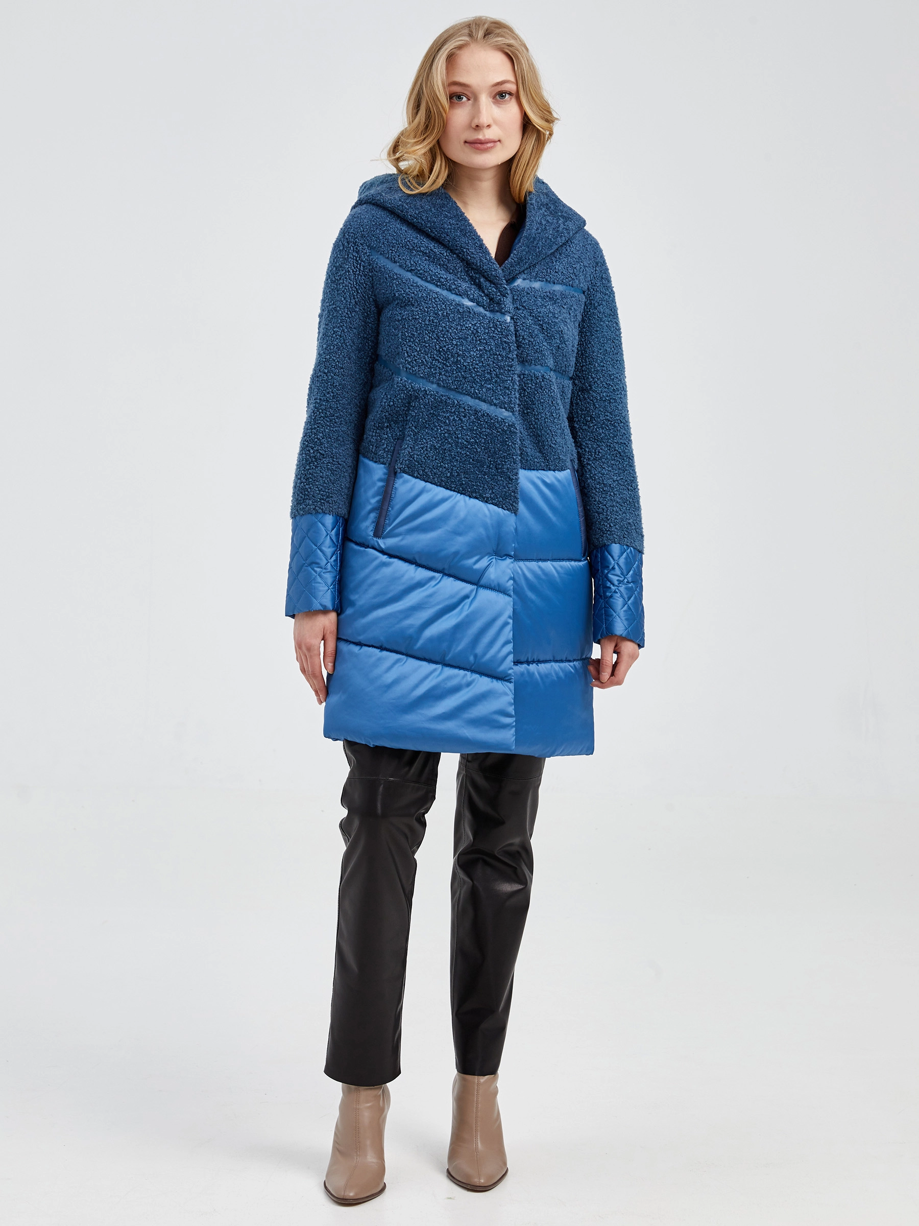 Товар текстильный женский пуховик с капюшоном и астраганом 807, голубой, размер 46, артикул 13420 выполнен из овчина "астраган" с застежкой кнопки. Рассчитан на сезон: осень-зима. Длина изделия 75-90 см, силуэт полуприлегающий.