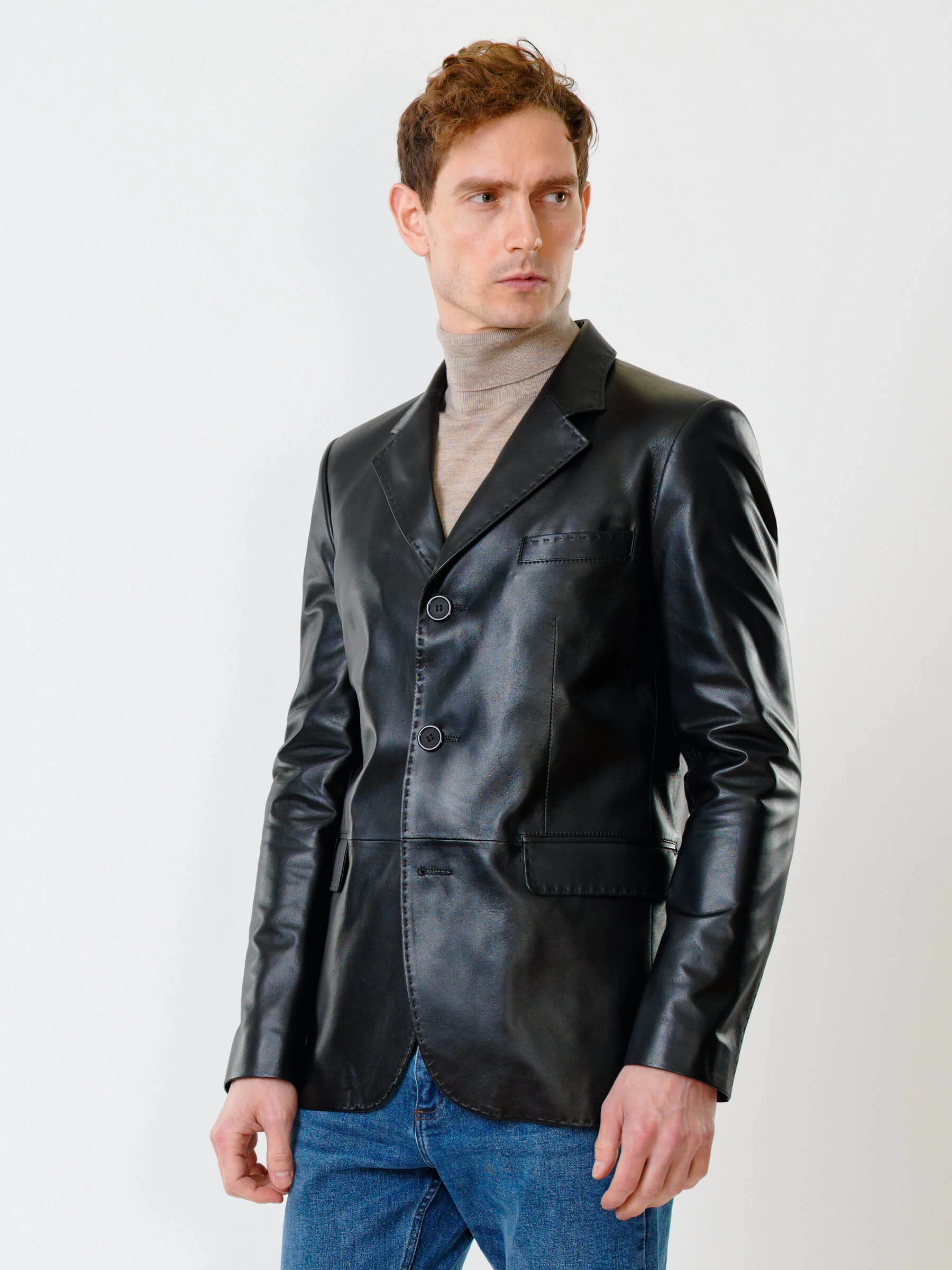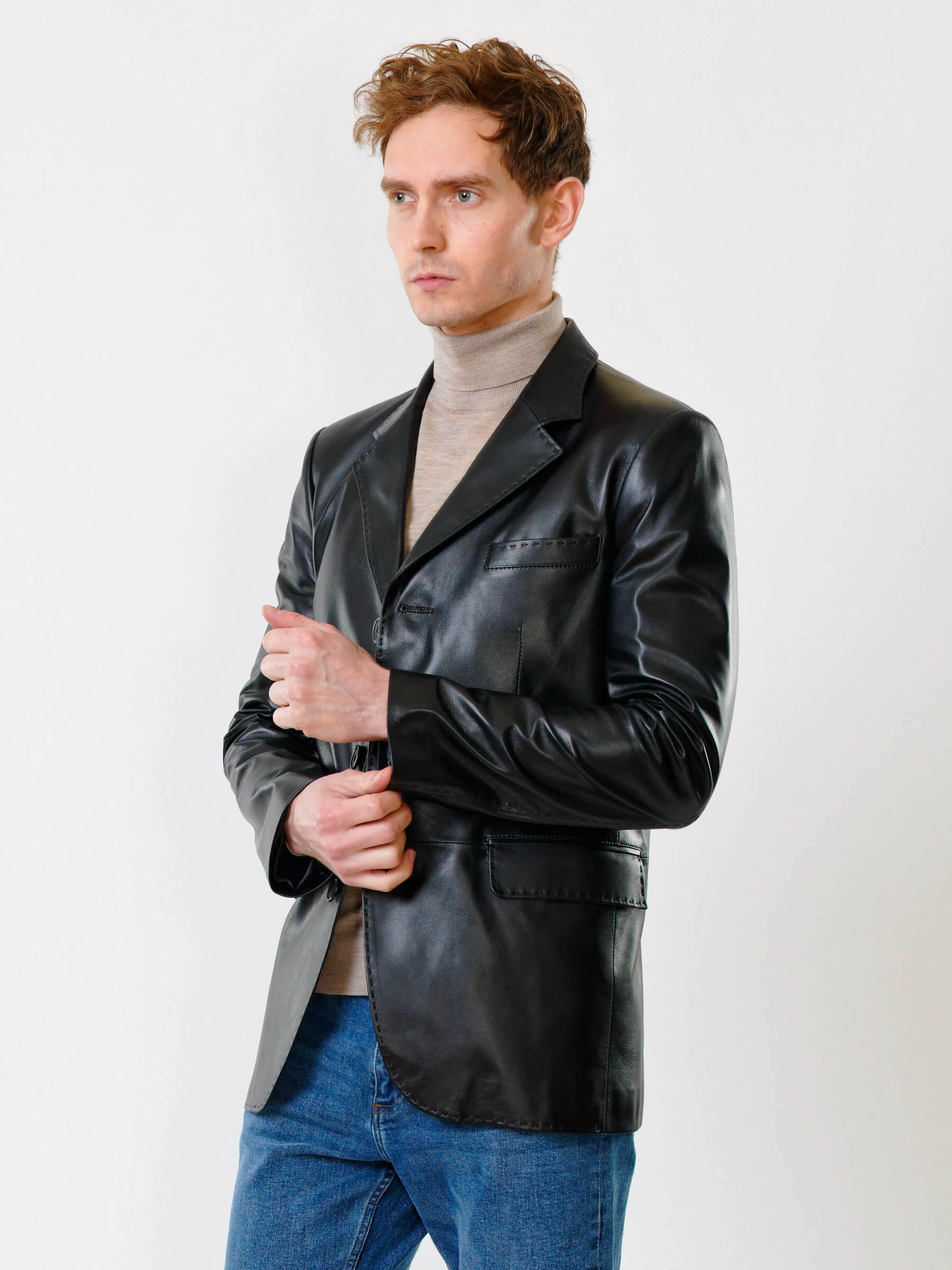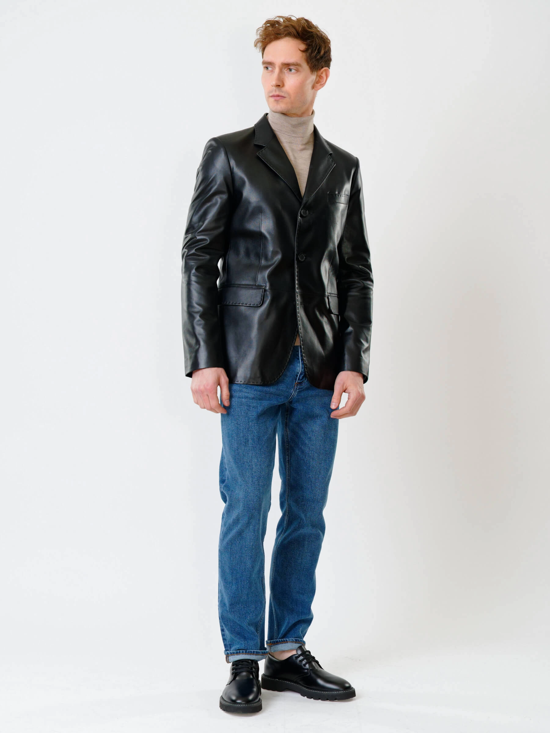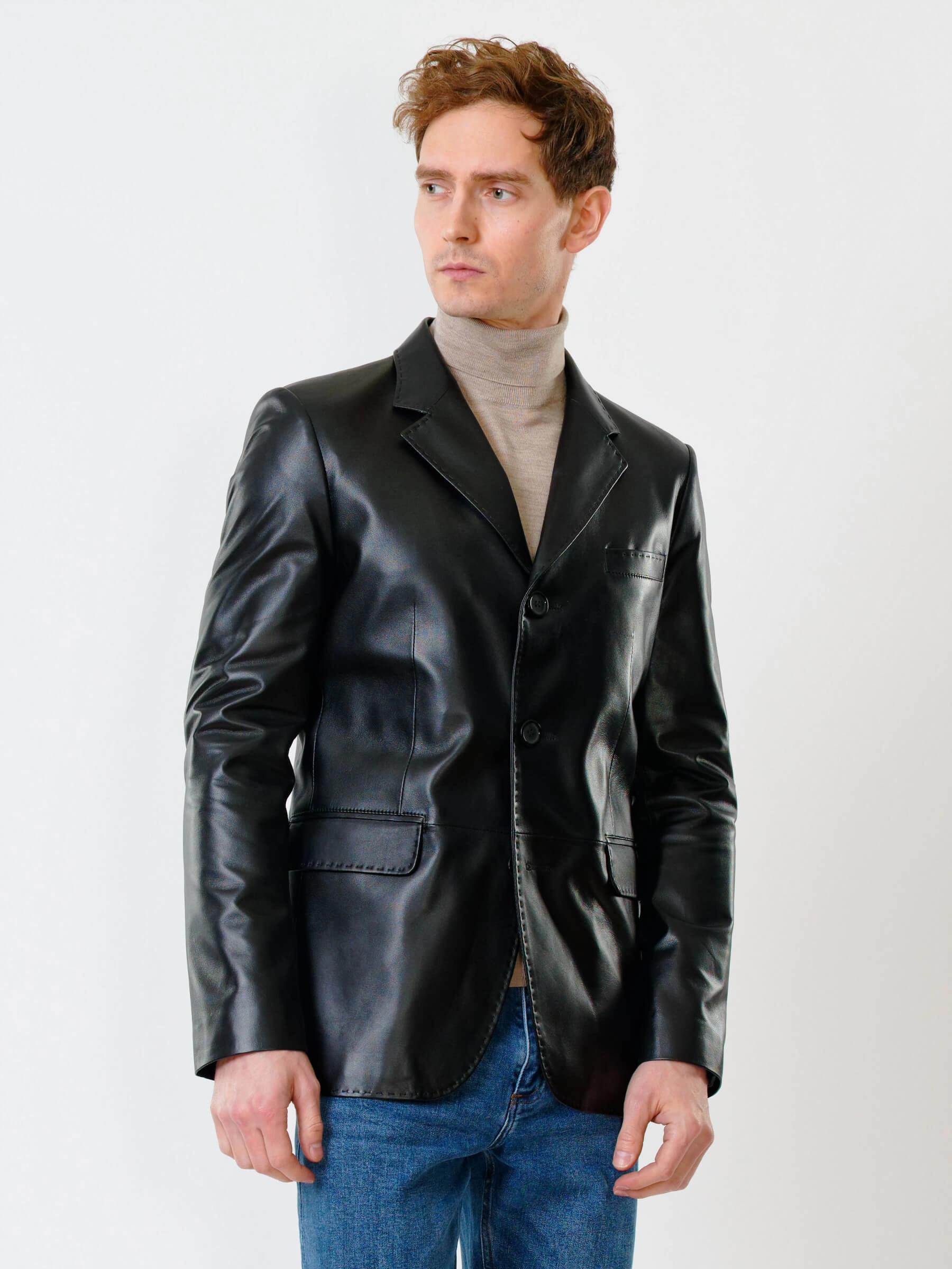 Товар мужской кожаный пиджак на ручном стежке премиум класса 543, черный, размер 48, артикул 28451 выполнен из натуральной кожи с застежкой пуговицы. Рассчитан на сезон: весна-лето. Длина изделия 78 см, силуэт полуприлегающий.