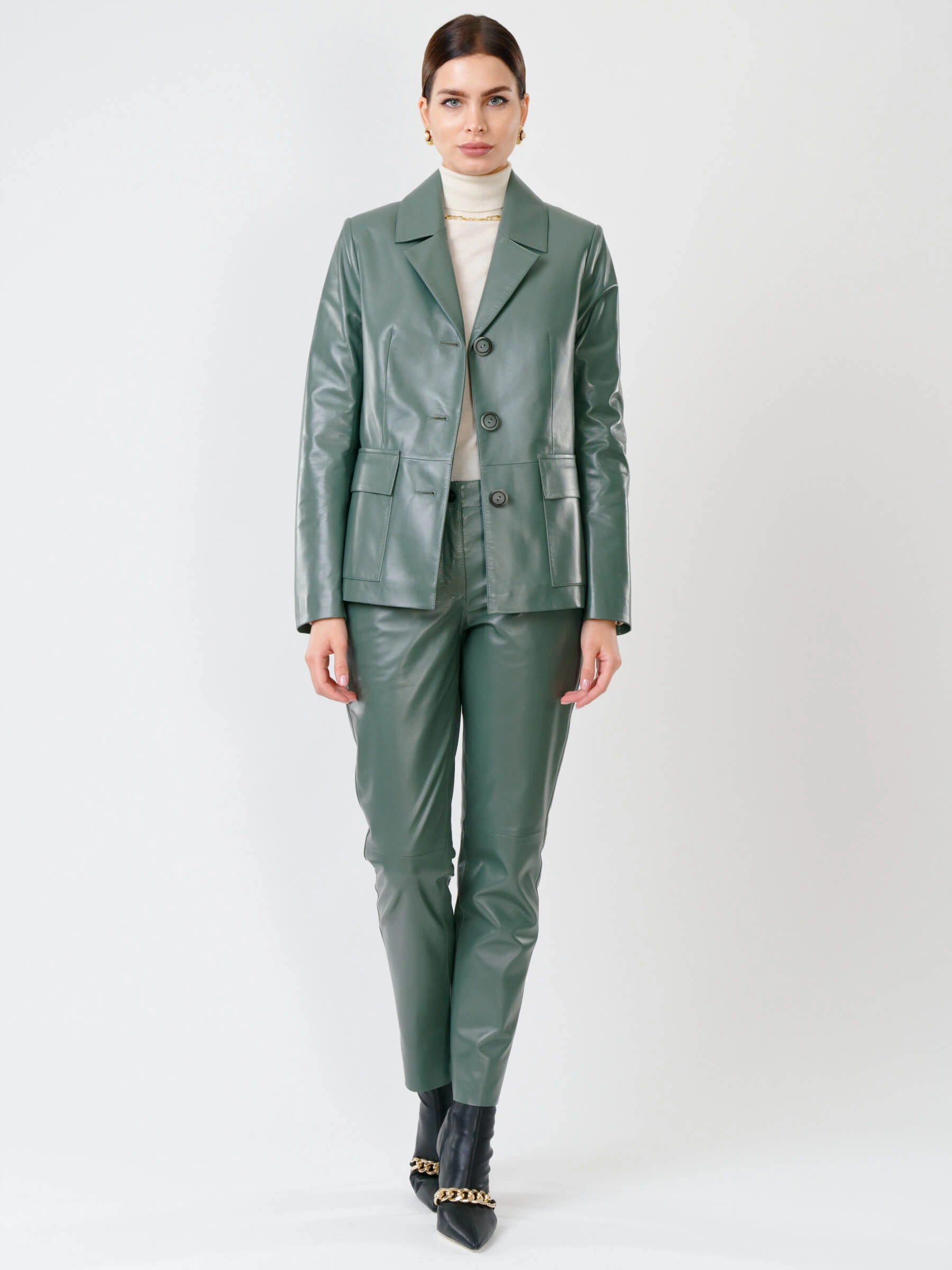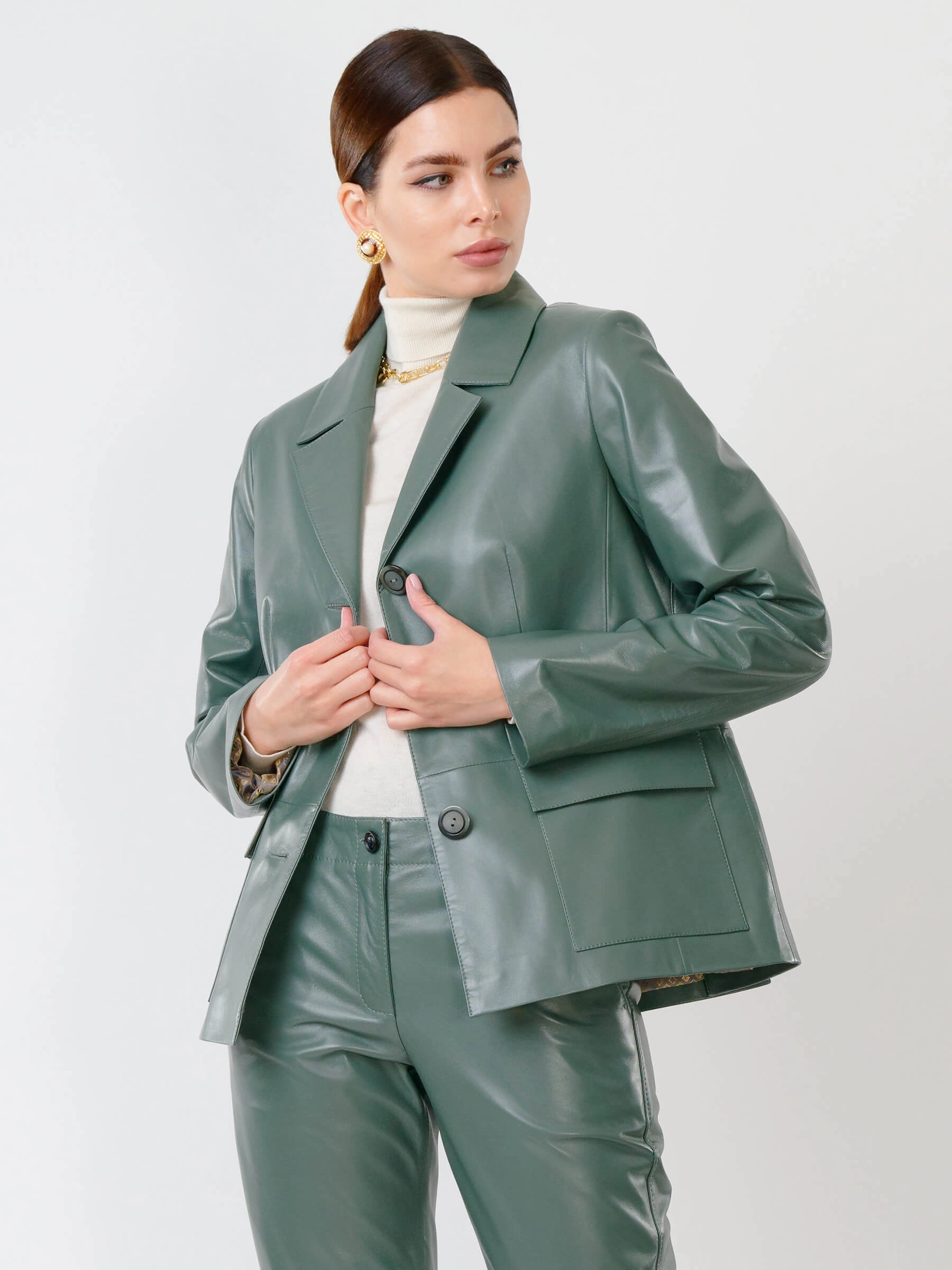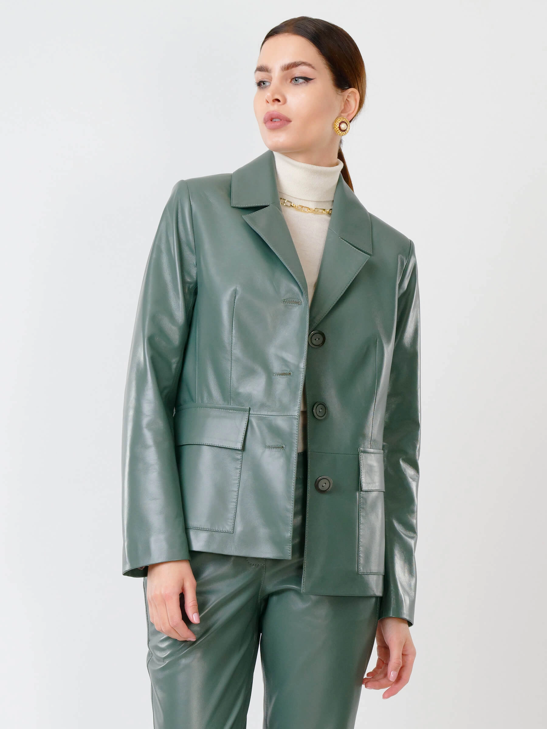 Женский кожаный пиджак 3007, оливковый, размер 48, артикул 90711