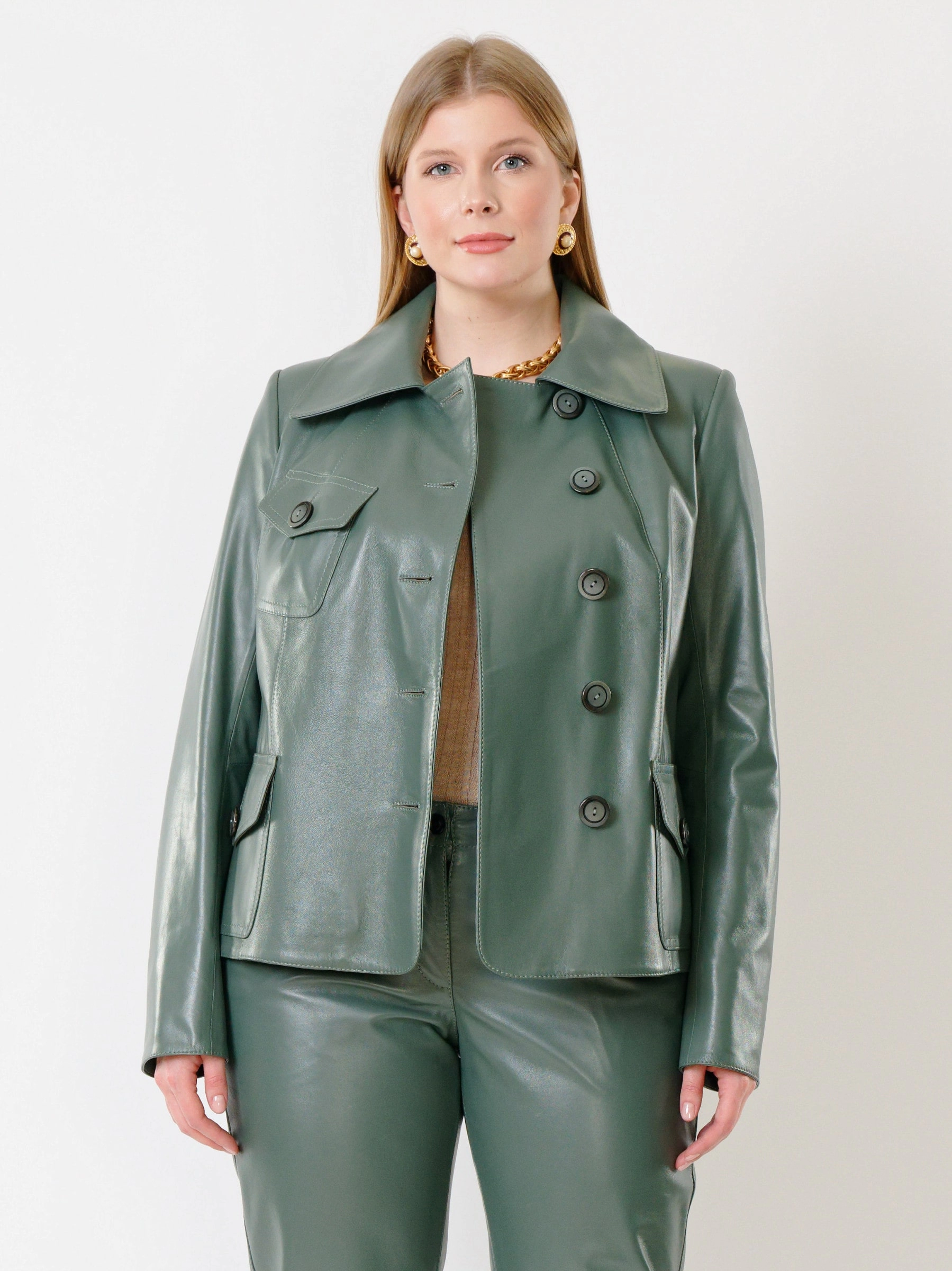 Кожаная куртка пиджак женская 302, оливковый, размер 46, артикул 91181