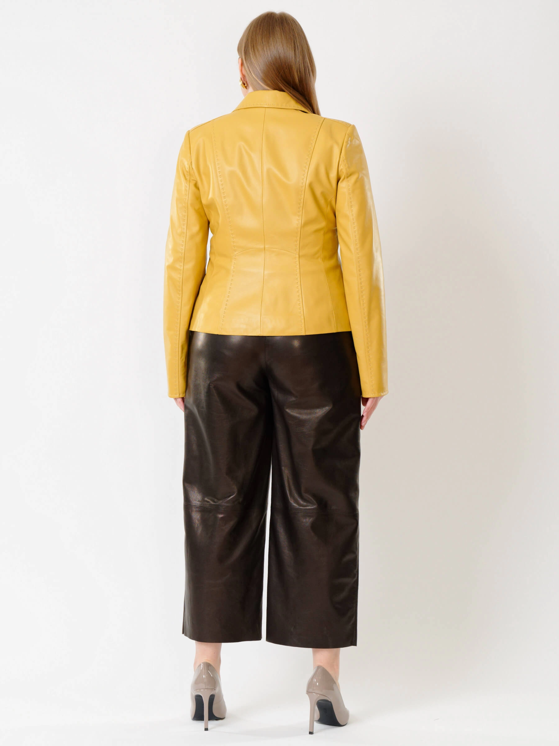 Кожаный женский пиджак 316рс, желтый, размер 44, артикул 91232