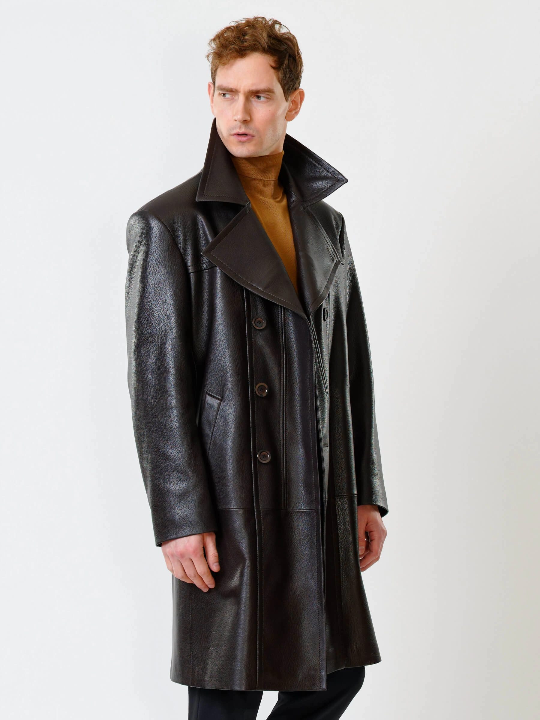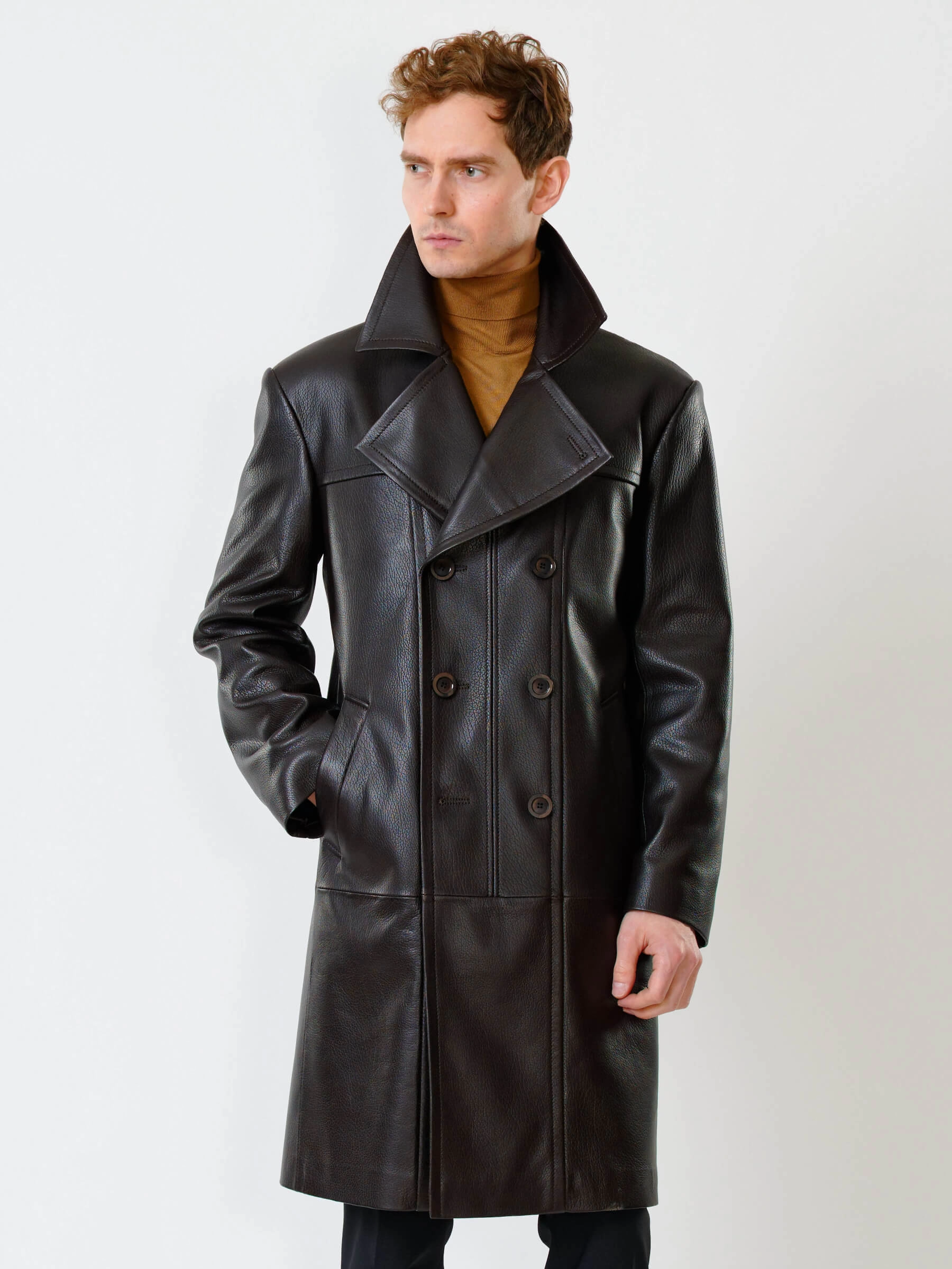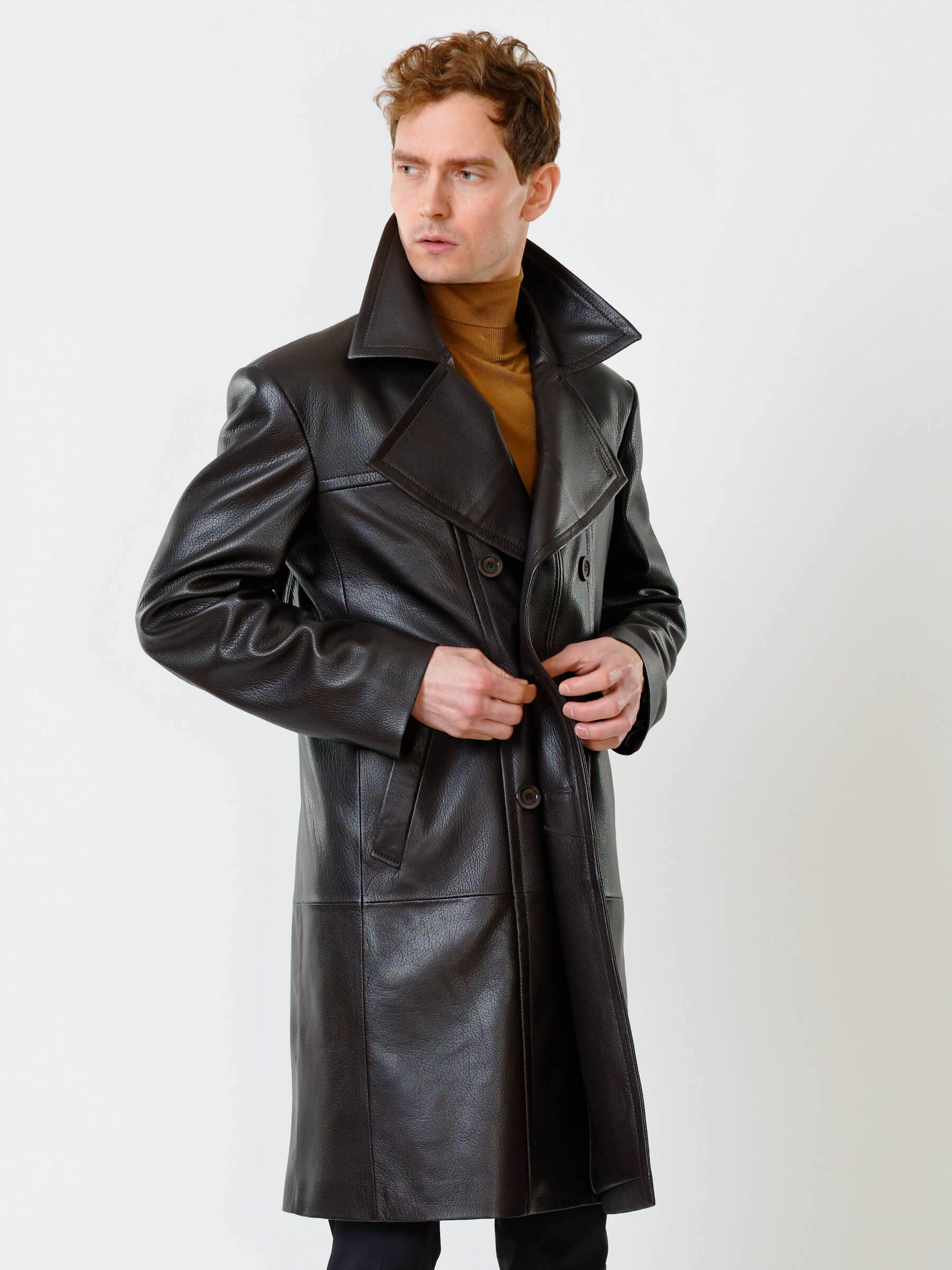 Двубортный мужской кожаный плащ премиум класса Чикаго, коричневый, размер 46, артикул 28500