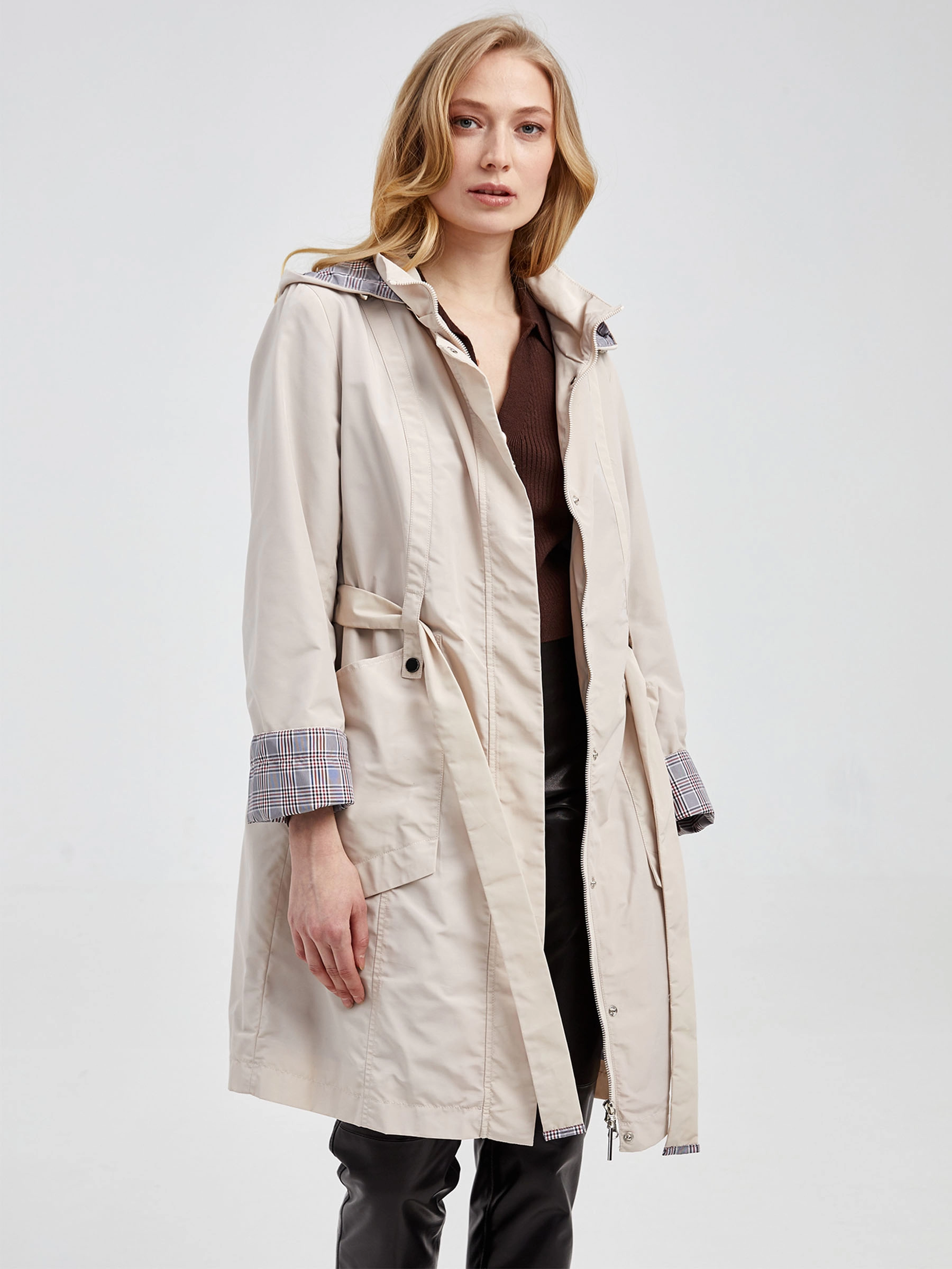 Товар текстильный плащ женский 20035, бежевый, размер 44, артикул 25090 выполнен из текстиль с застежкой молния. Рассчитан на сезон: демисезон. Длина изделия 90 см, силуэт приталенный .