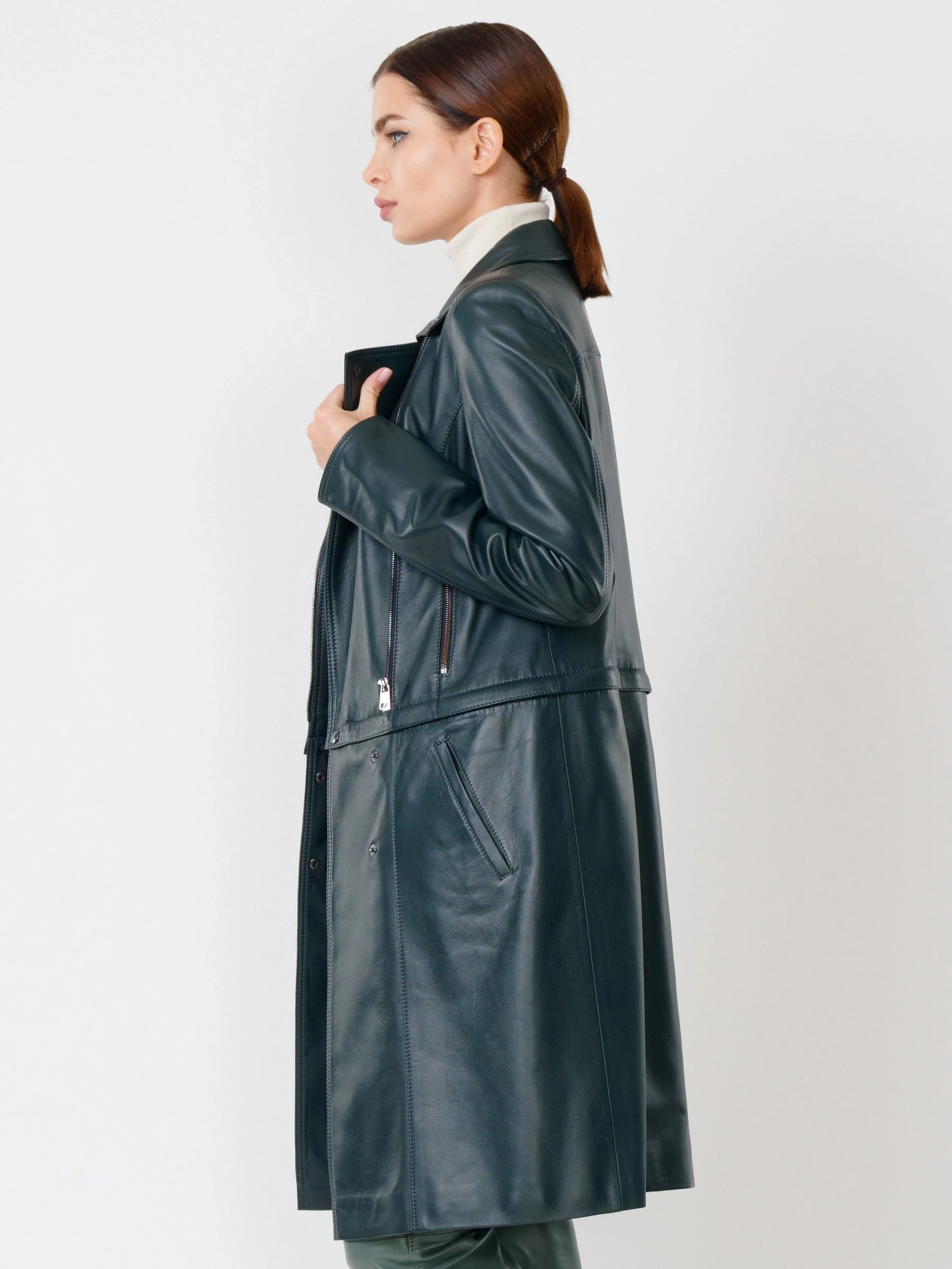 Товар кожаный женский плащ трансформер на молнии 381, синий, размер 44, артикул 90980 выполнен из натуральной кожи с застежкой молния. Рассчитан на сезон: демисезон. Длина изделия свыше 90 см, силуэт полуприлегающий.