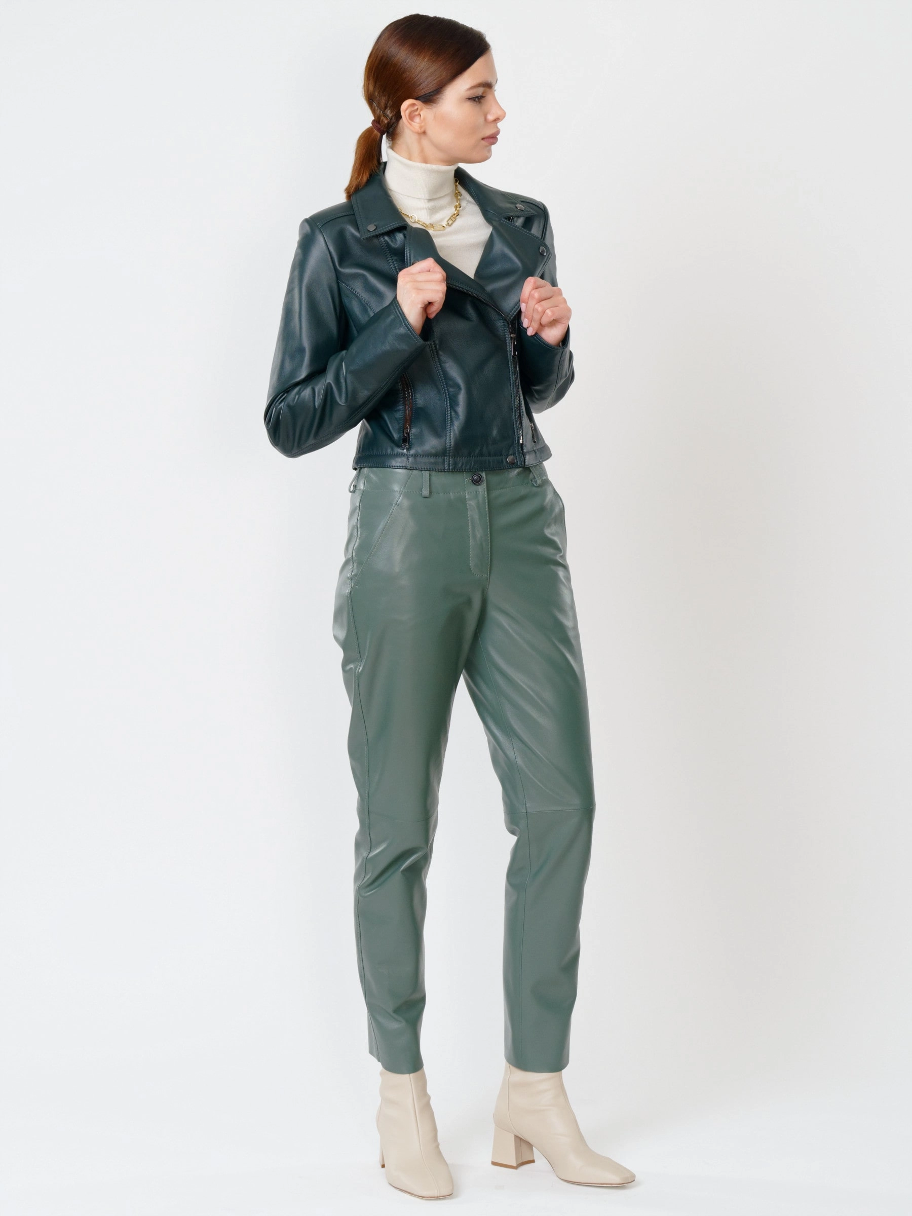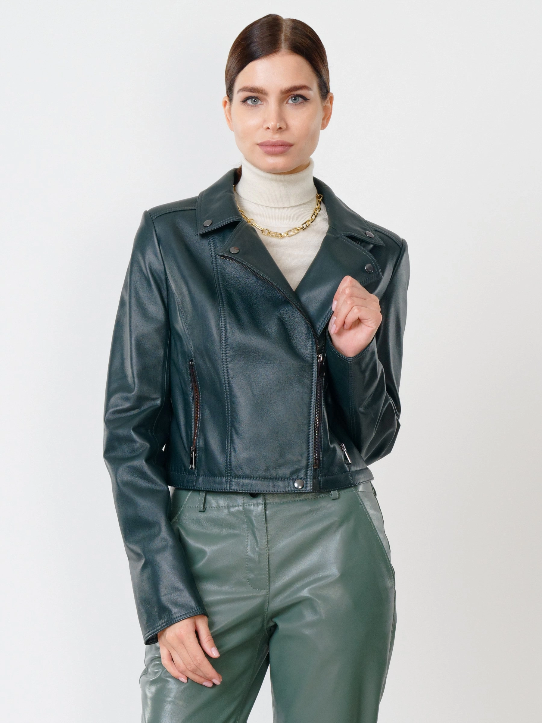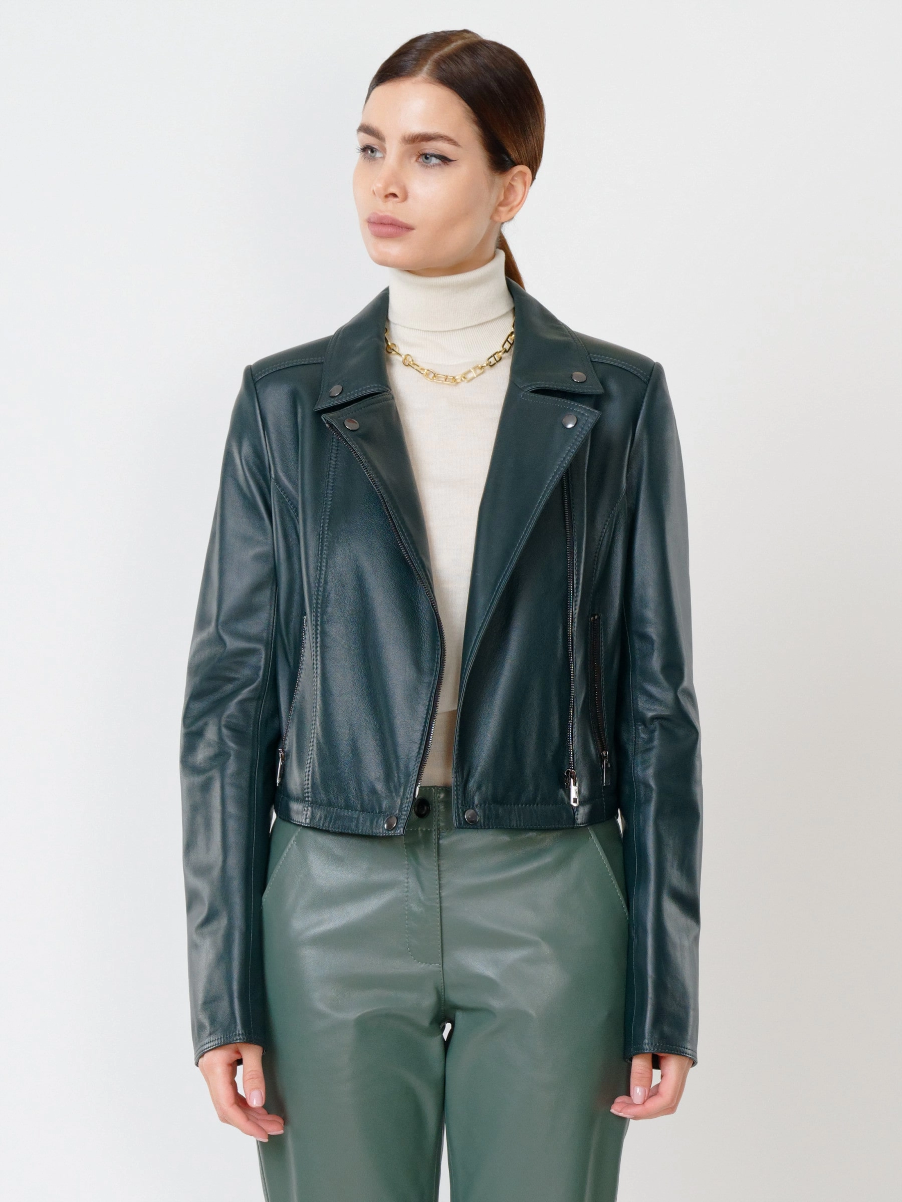 Кожаный женский плащ трансформер на молнии 381, синий, размер 44, артикул 90980
