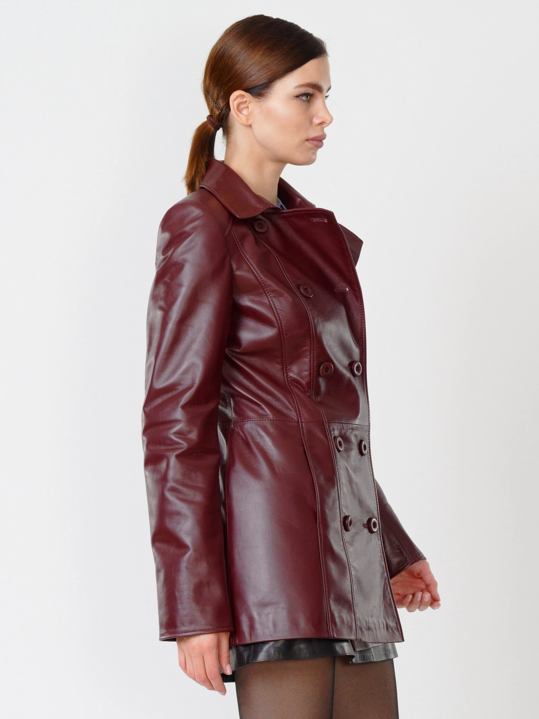 Женский утепленный кожаный двубортный френч 309ш, бордовый, размер 48, артикул 90841