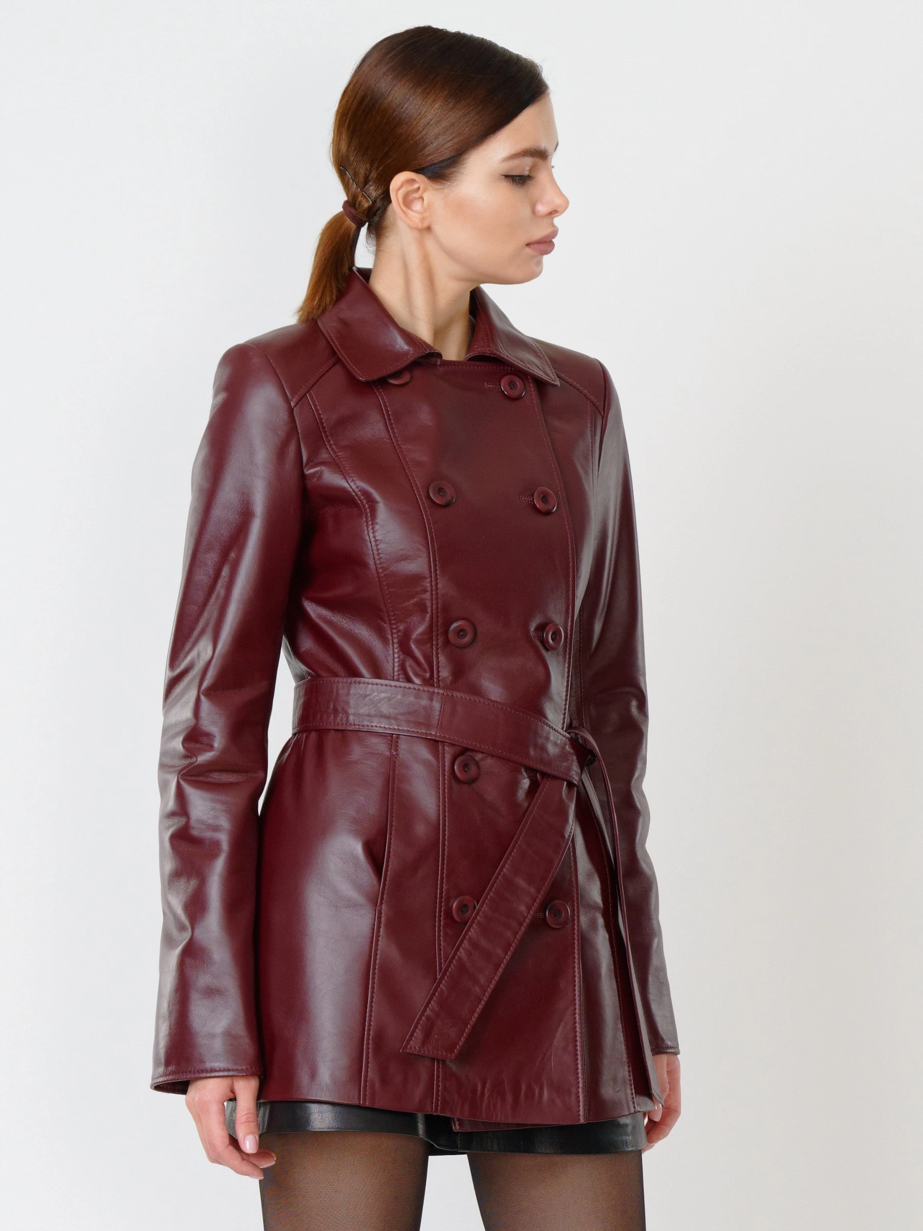 Товар женский утепленный кожаный двубортный френч 309ш, бордовый, размер 48, артикул 90841 выполнен из натуральной кожи с застежкой пуговицы. Рассчитан на сезон: демисезон. Длина изделия 77 см, силуэт полуприлегающий.