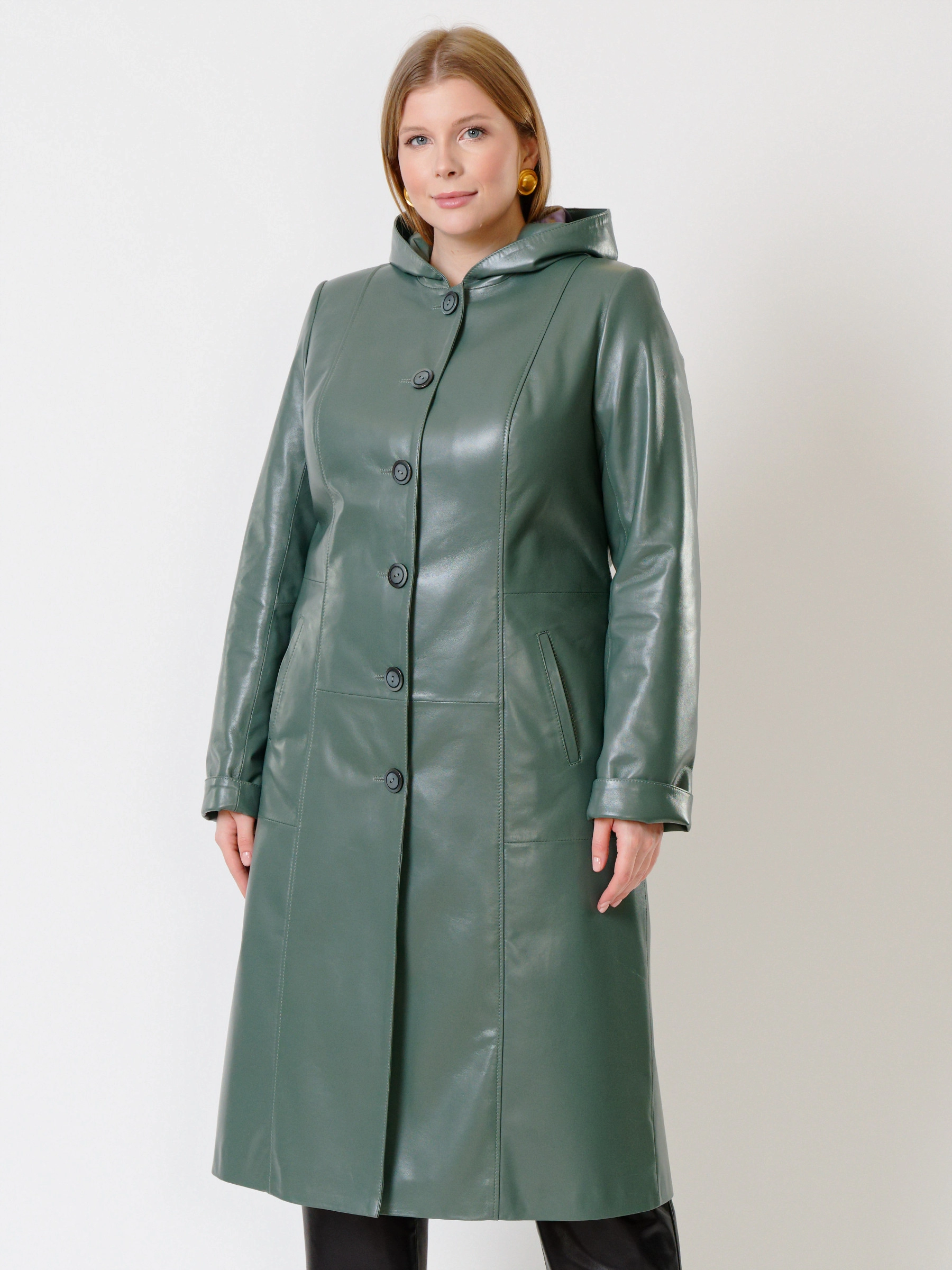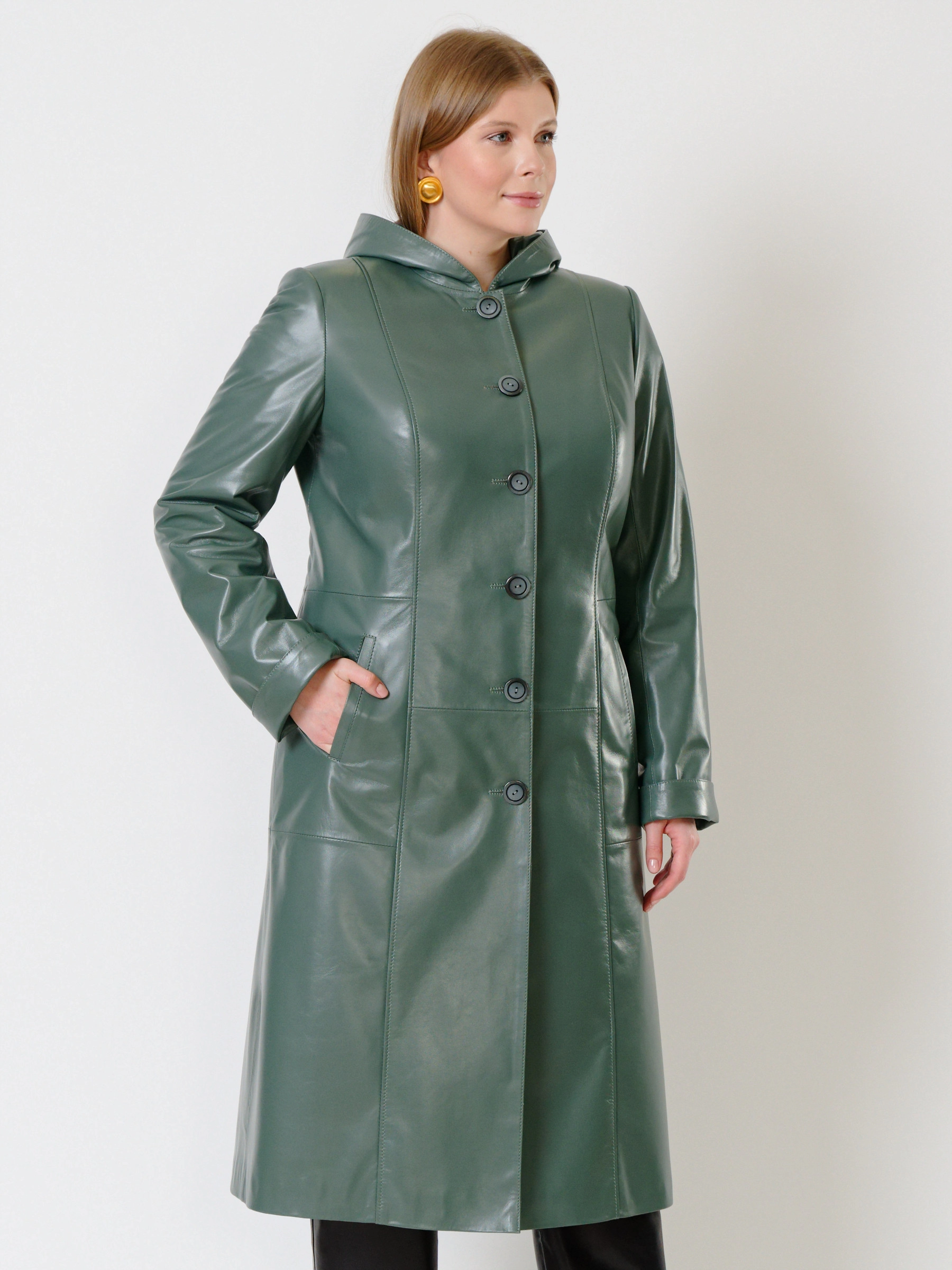 Очень интересный образ: классический кожаный плащ с капюшоном в дуэте с брюками прямого кроя. Всегда удобно и практично. Всегда в тренде. Великолепное качество кожи, супер удобная посадка.