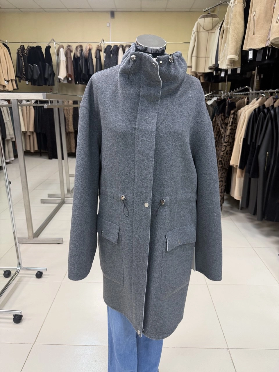 Товар полупальто кашемировое женское 1133-95, темно-серое, размер 46, артикул 92570.