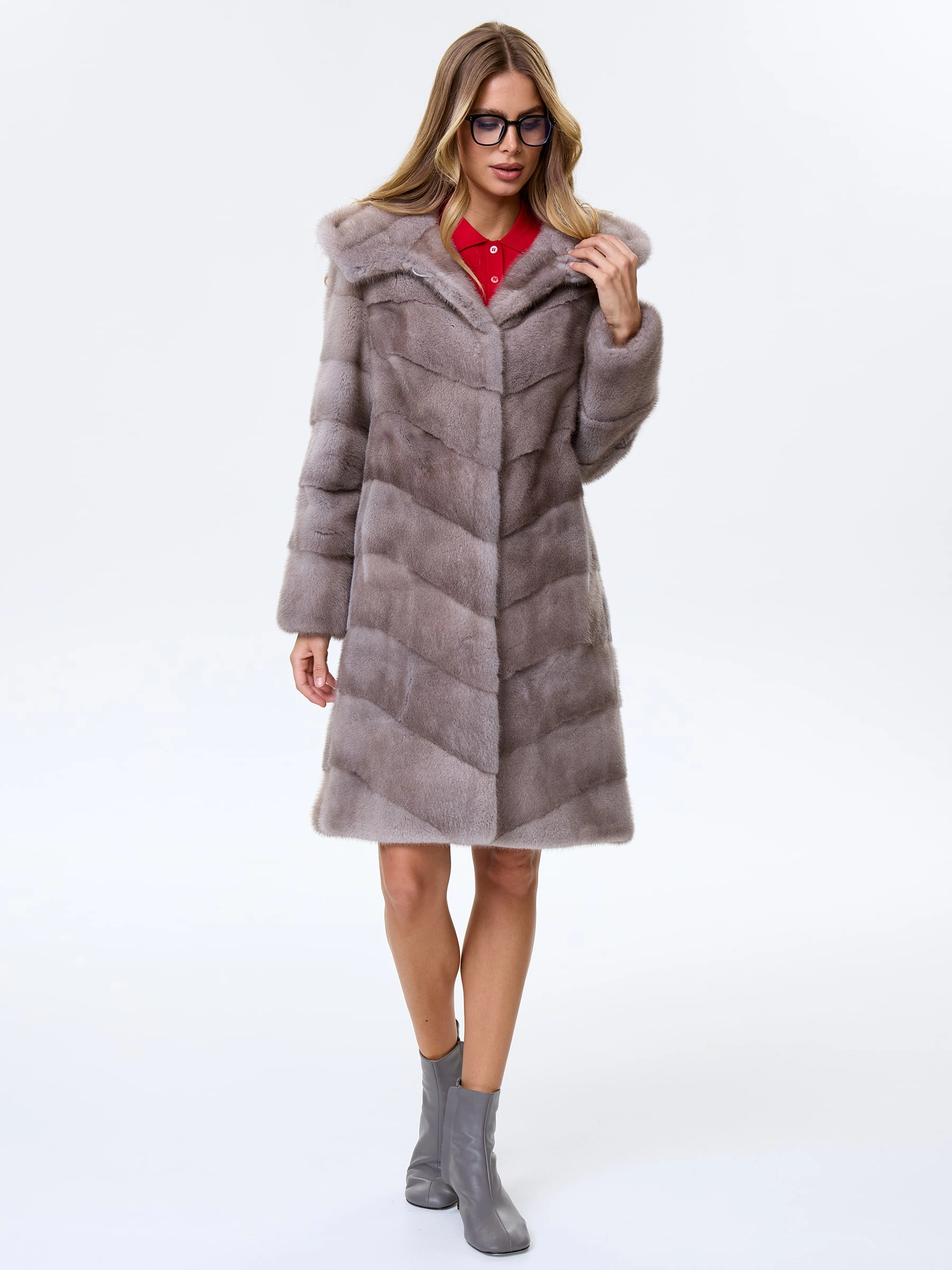 Товар полупальто с капюшоном из меха норки для женщин галя(к), серо-голубое, размер 44, артикул 34100 выполнен из норка с застежкой клипсы. Рассчитан на сезон: зима. Длина изделия 100 см, силуэт прямой.