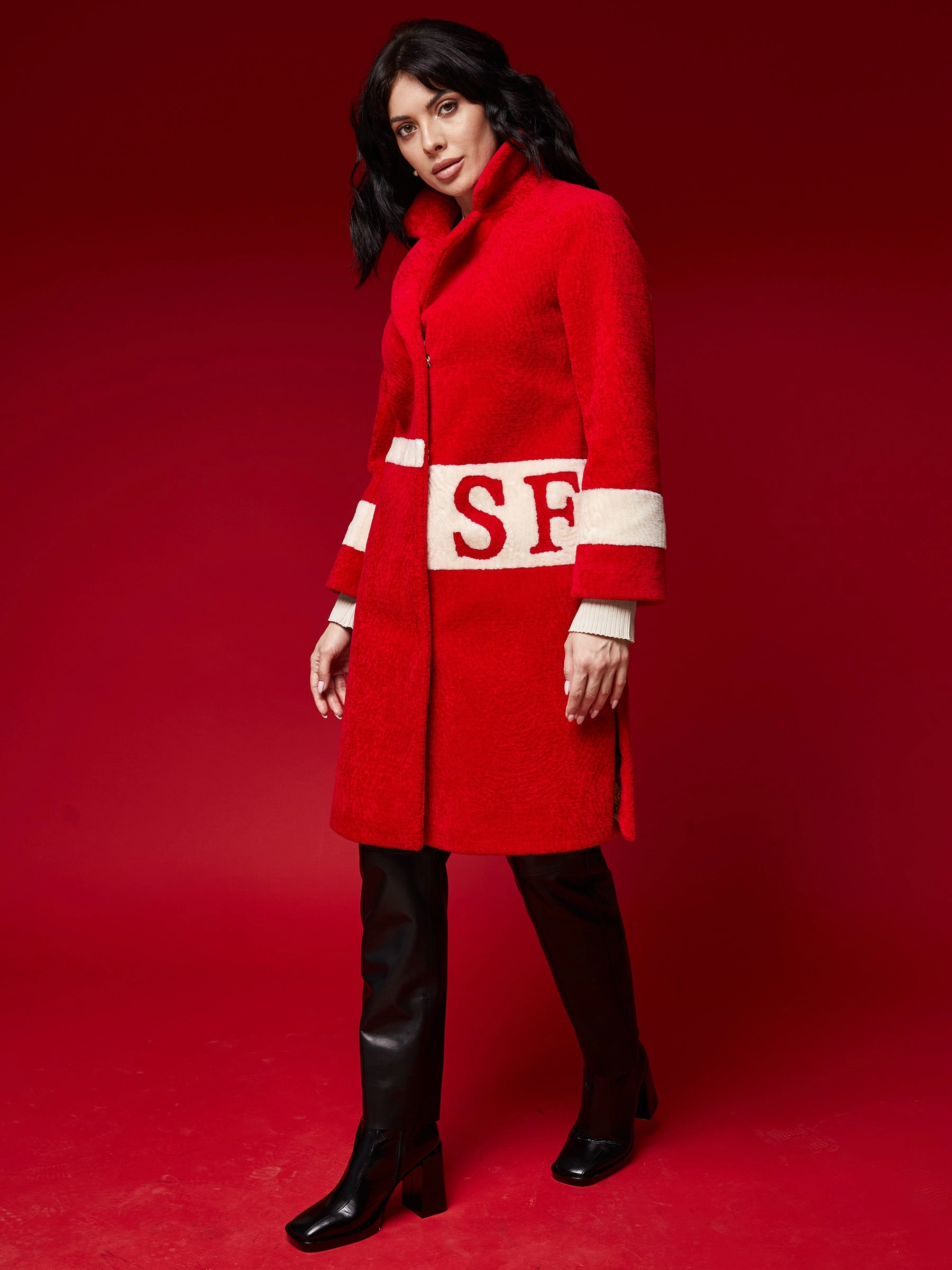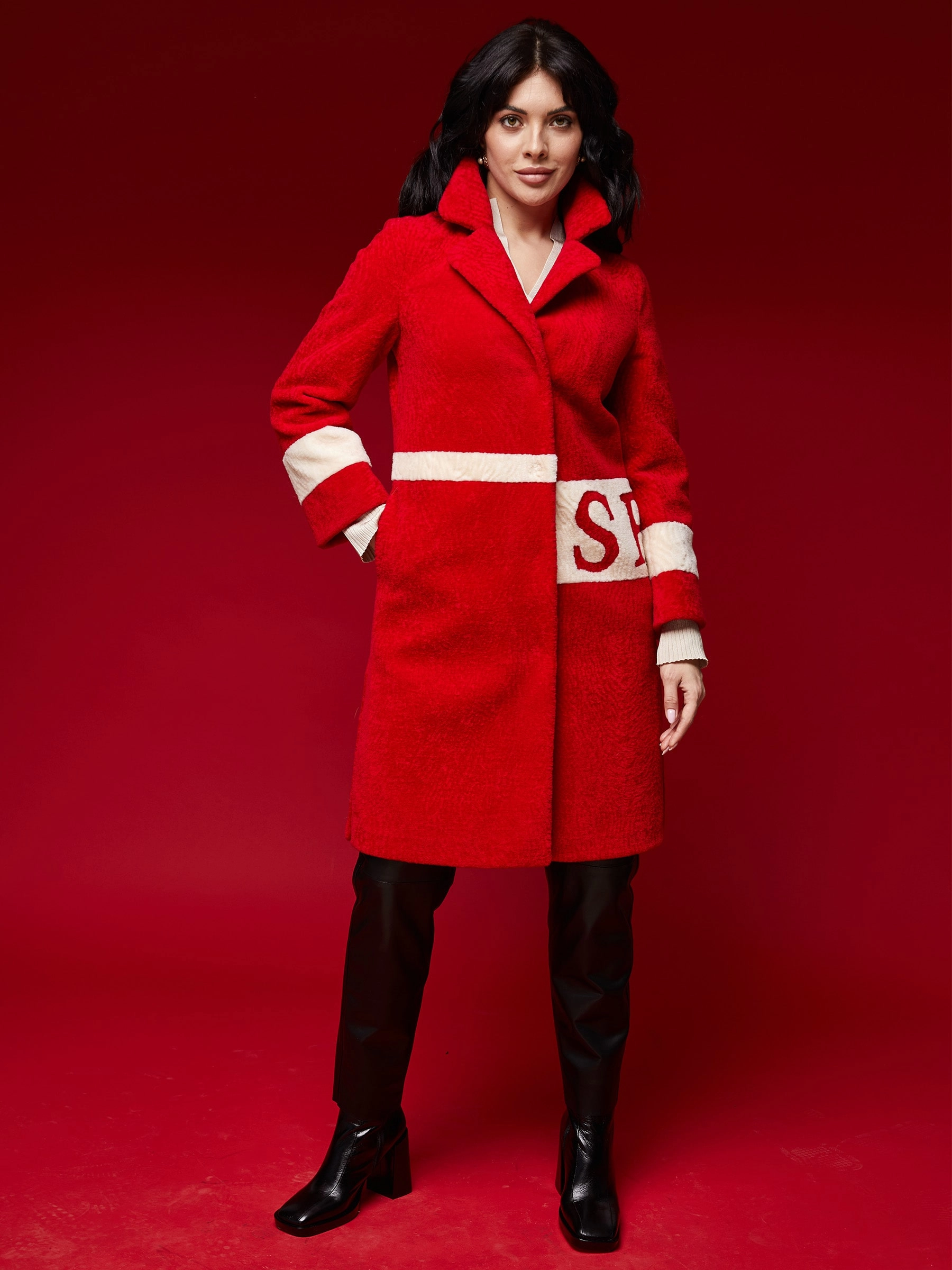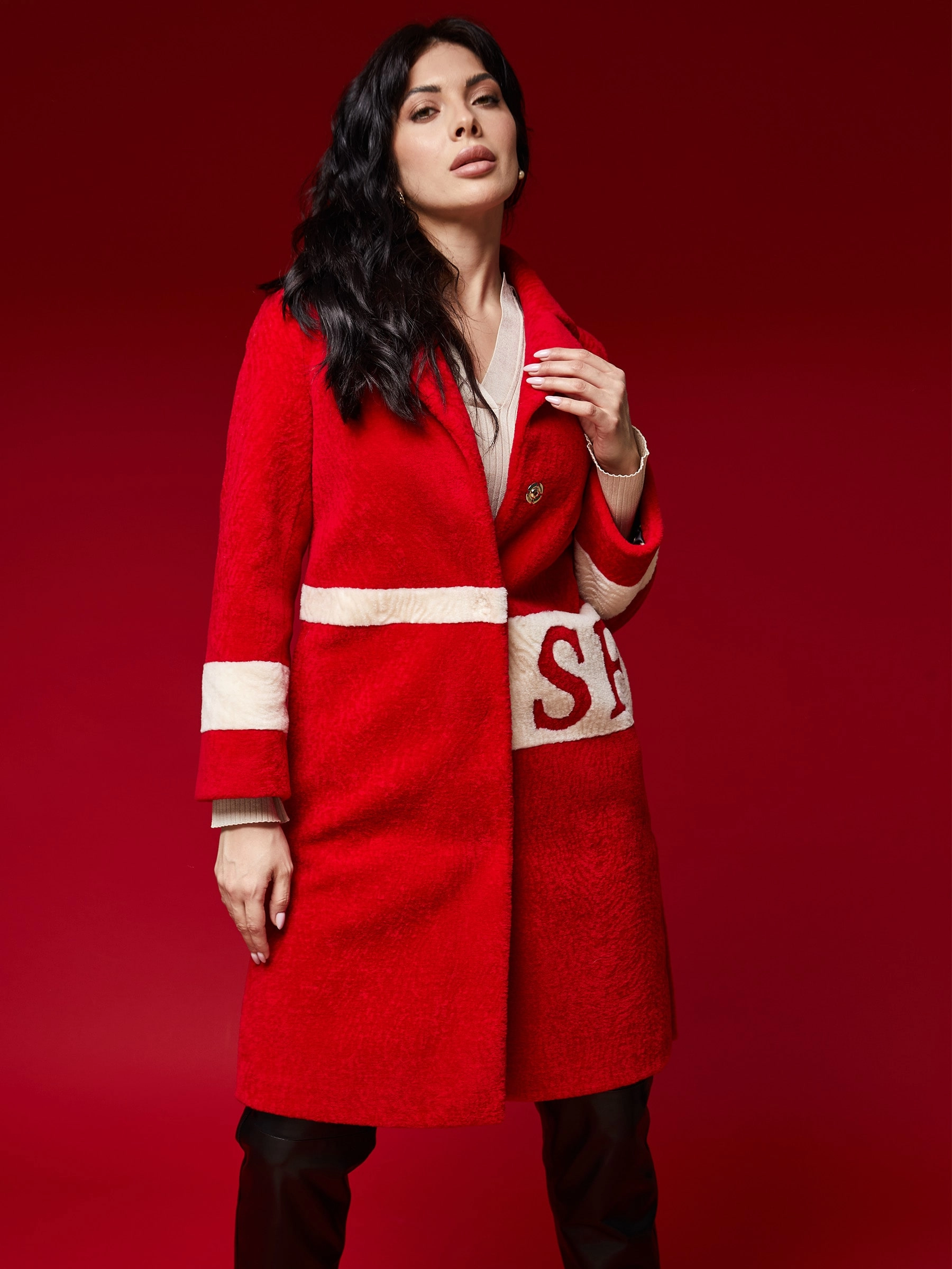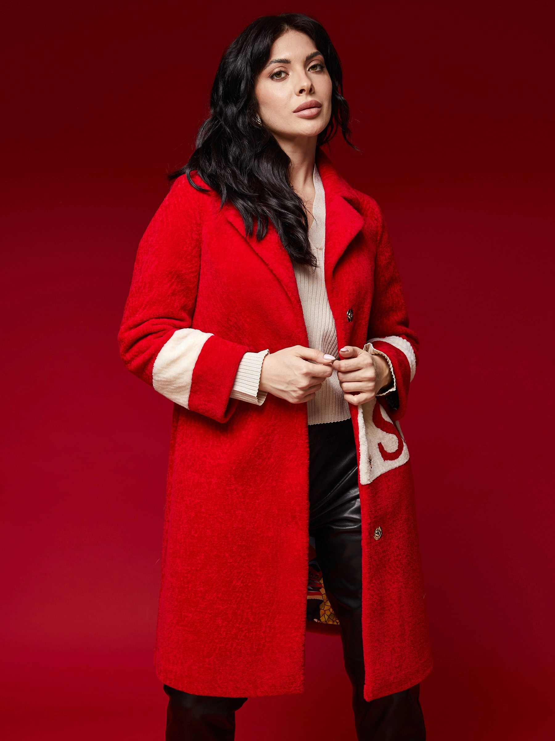 Стильное полупальто из шерсти длиной свыше 90 см в комбинации красного и белого цветов. Прямой силуэт с английским воротником и застёжкой на кнопках создаёт универсальный образ, который остаётся в тренде этой весной. Сочетайте его с кожаными брюками и грубыми ботинками для дерзкого образа или с джинсами-скинни и кроссовками для повседневного стиля — это пальто подарит комфорт и завершит ваш образ.