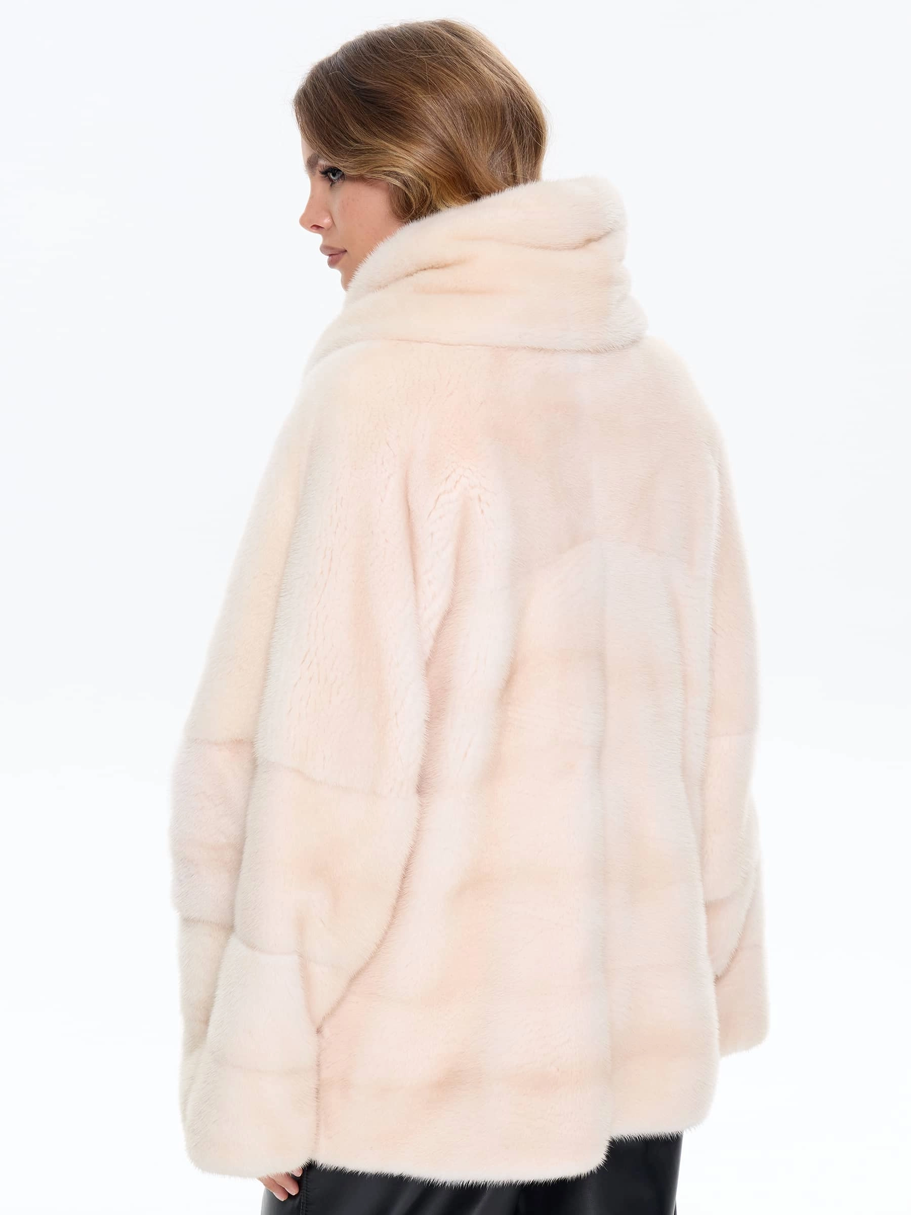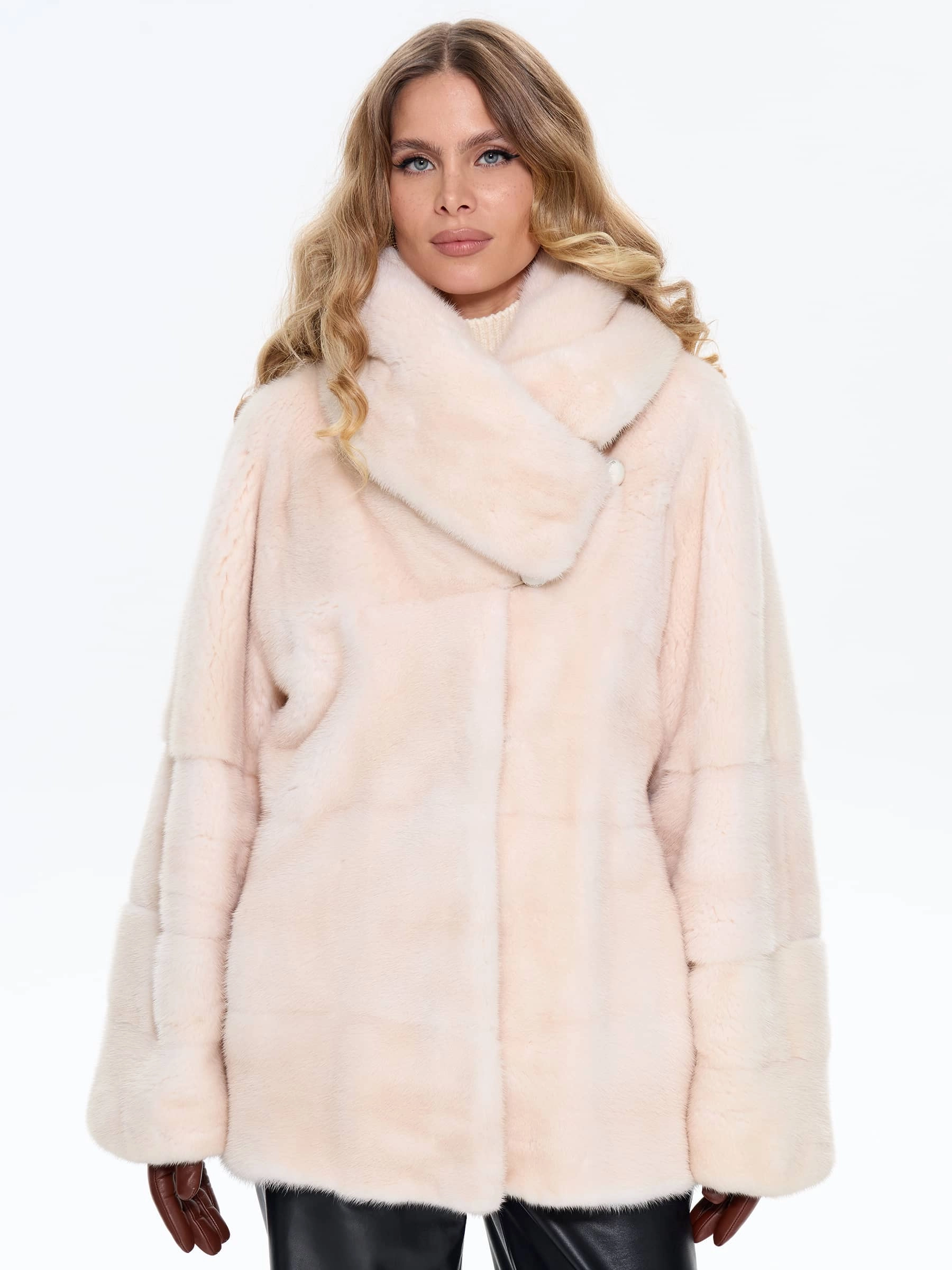 Поперечная женская норковая шуба BRASCHI LS 005, бежевая, размер 40, артикул 34350
