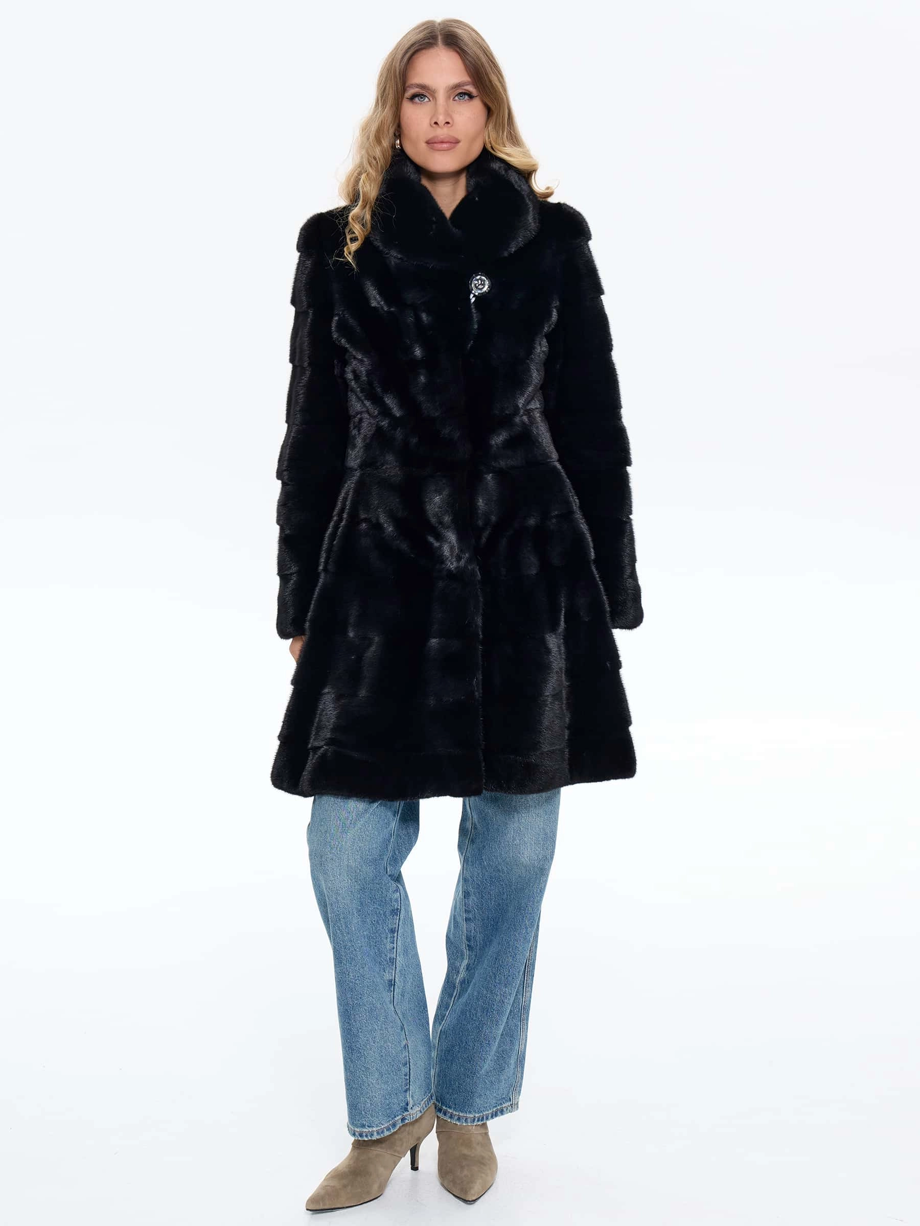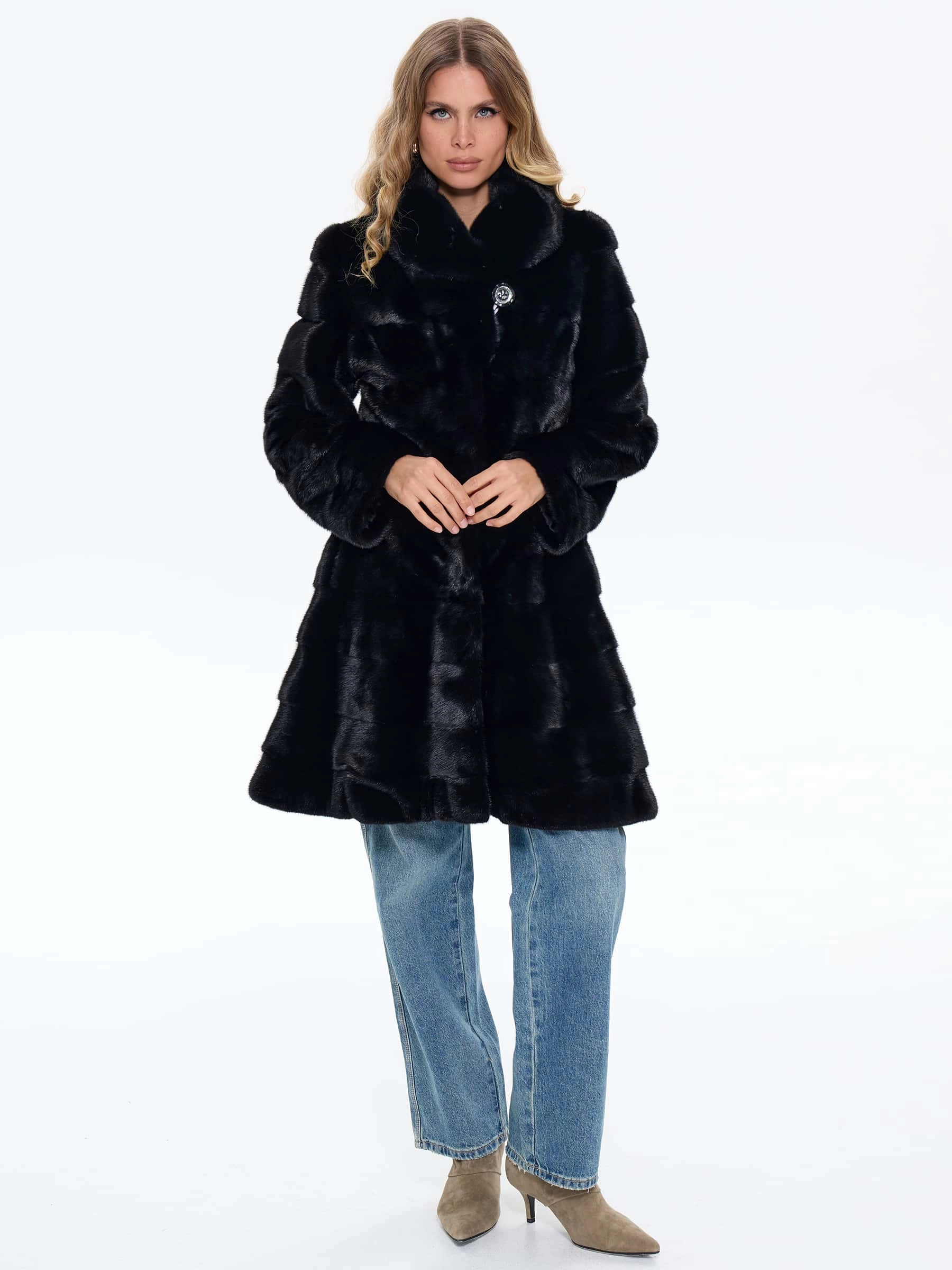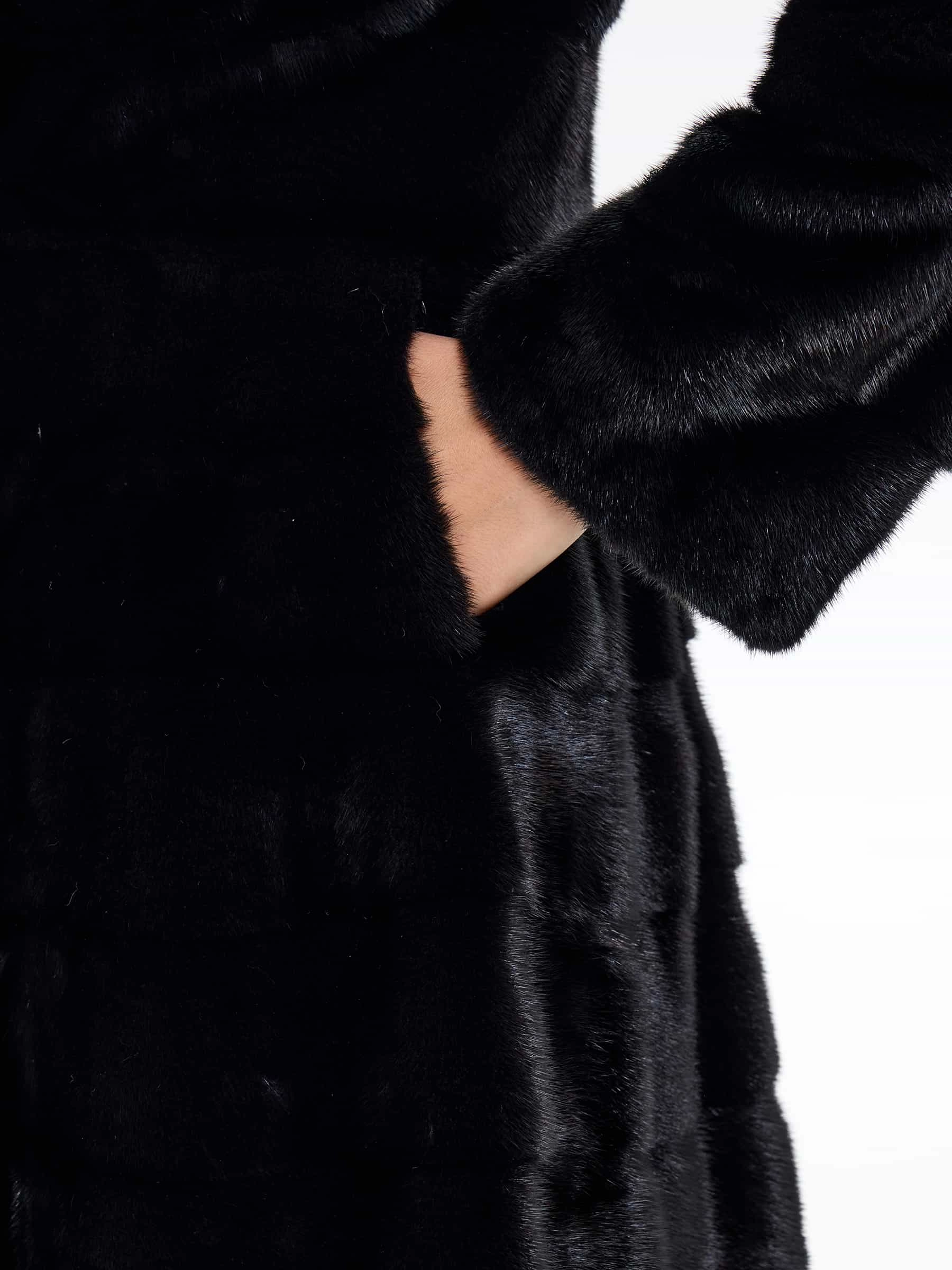 Поперечная женская шуба из меха норки MANAKAS WMF 10026, черная, размер 42, артикул 34300