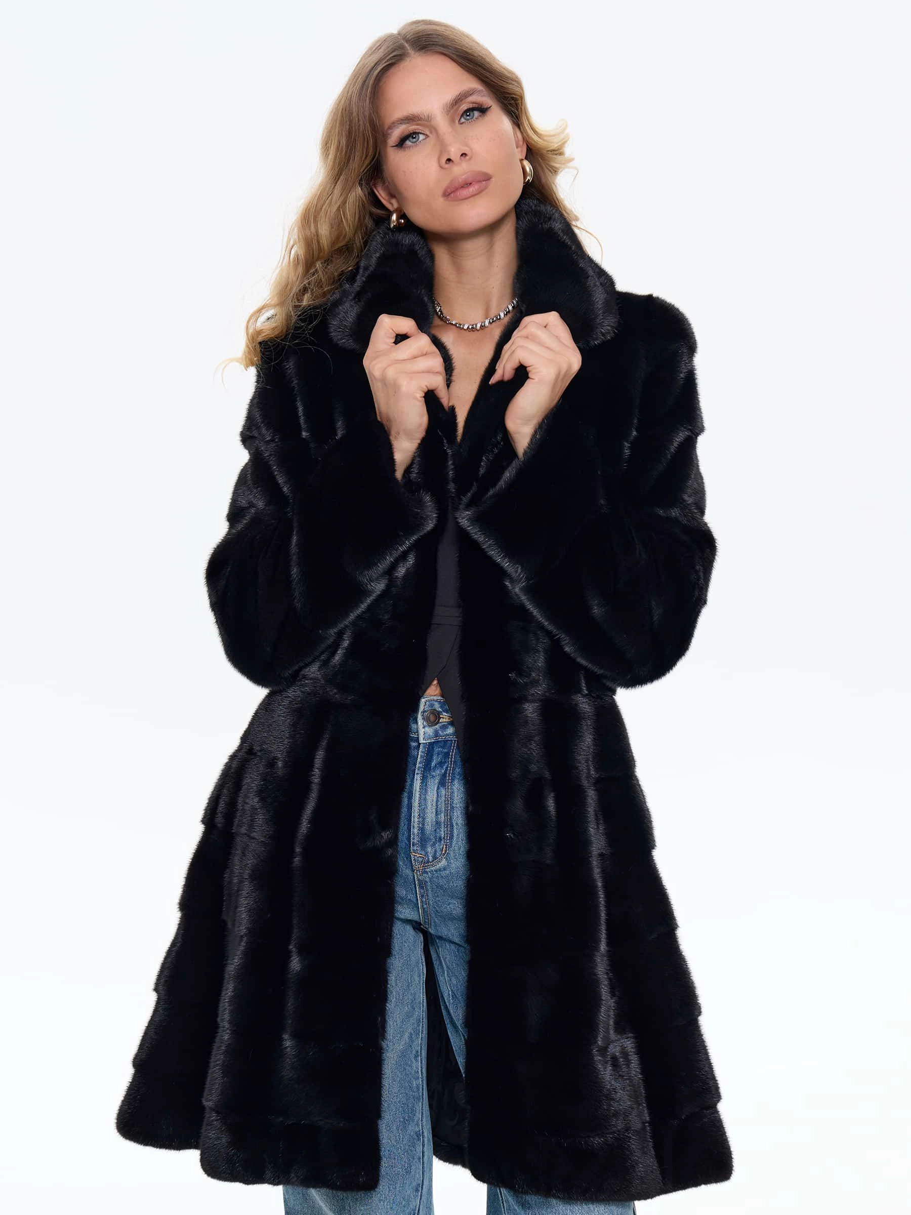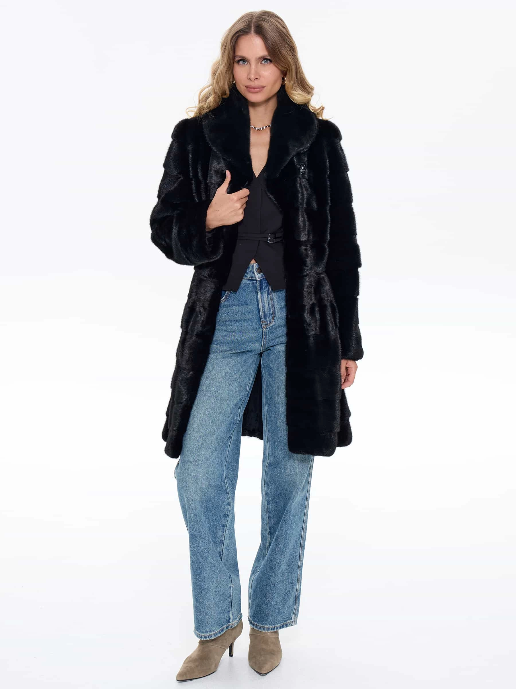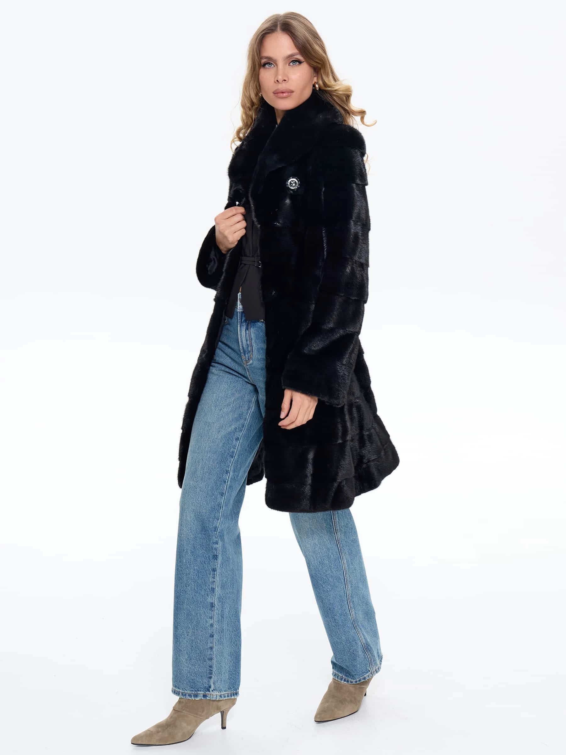 Поперечная женская шуба из меха норки MANAKAS WMF 10026, черная, размер 42, артикул 34300