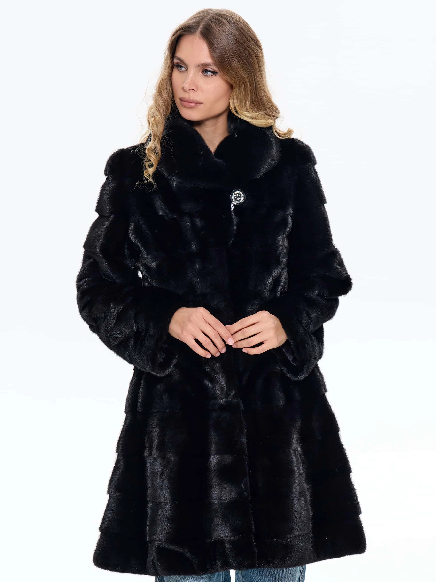 Товар поперечная женская шуба из меха норки manakas wmf 10026, черная, размер 42, артикул 34300 выполнен из норка с застежкой клипсы. Рассчитан на сезон: зима. Длина изделия 93 см, силуэт приталенный .