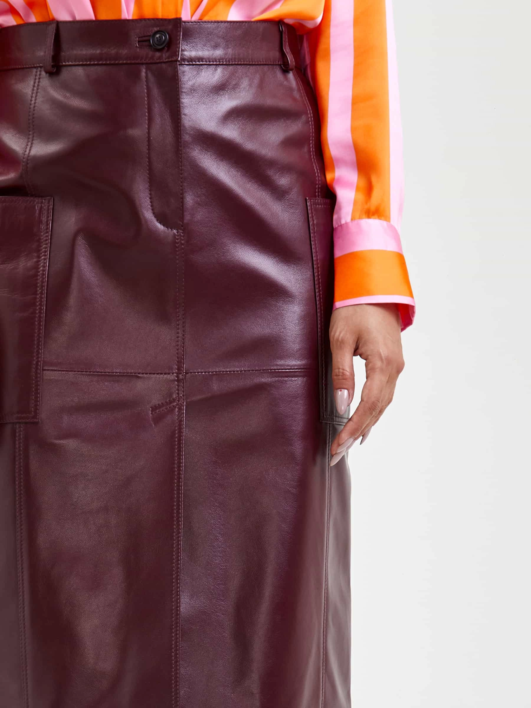 Кожаная юбка с разрезом 10, бордовая, размер 44, артикул 85590