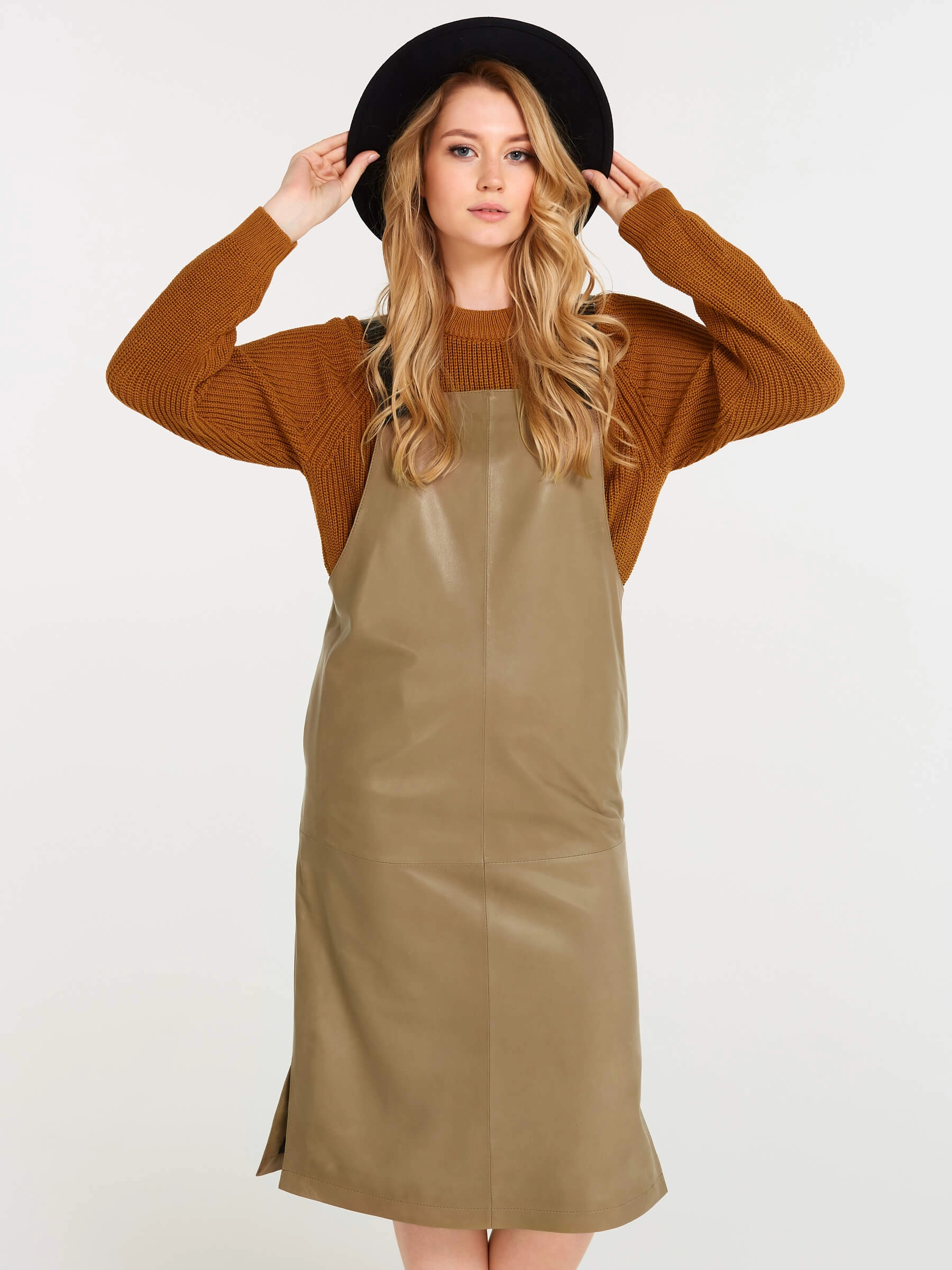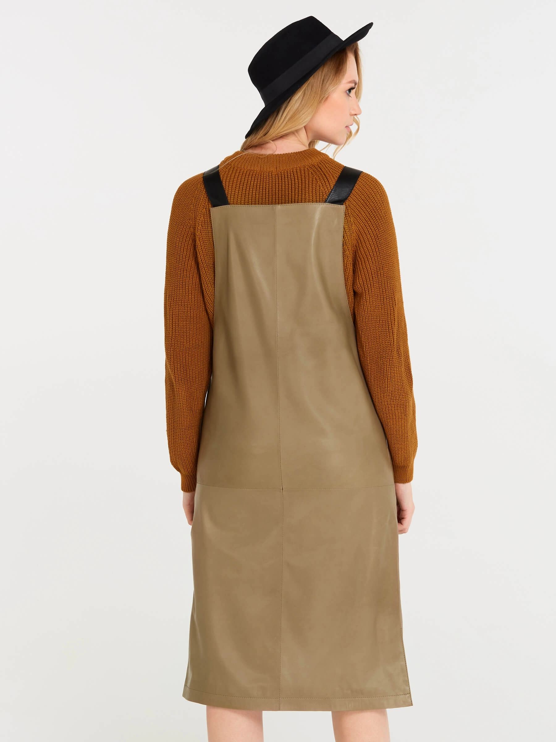 Товар кожаный сарафан 01, серо-коричневый, размер 44, артикул 85160 выполнен из натуральной кожи с застежкой бретели. Рассчитан на сезон: демисезон. Длина изделия 98 см, силуэт прямой.